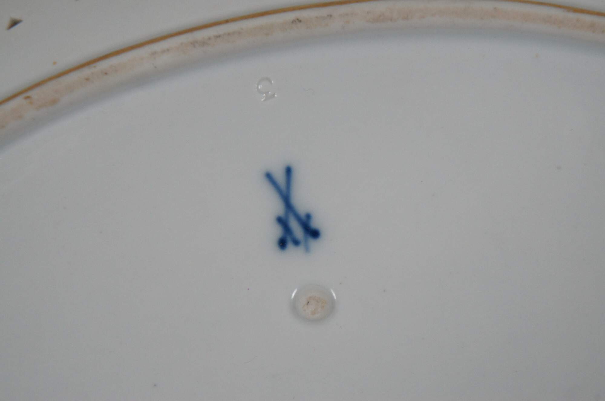 "Meissen porcelain or Meissen china was the first European hard-paste porcelain. Early experiments were done in 1708 by Ehrenfried Walther von Tschirnhaus. After his death that October, Johann Friedrich Böttger continued von Tschirnhaus's work and brought this type of porcelain to the market, financed by Augustus the Strong, King of Poland and Elector of Saxony. The production of porcelain in the royal factory at Meissen, near Dresden, started in 1710 and attracted artists and artisans to establish, arguably, the most famous porcelain manufacturer known throughout the world. Its signature logo, the crossed swords, was introduced in 1720 to protect its production; the mark of the swords is reportedly one of the oldest trademarks in existence. Meissen remained the dominant European porcelain factory, and the leader of stylistic innovation, until somewhat overtaken by the new styles introduced by the French Sèvres factory in the 1760s, but has remained a leading factory to the present day. Since 1991, the manufactory has been operating as the Staatliche Porzellan-Manufaktur Meissen GmbH, whose owner is the Free State of Saxony. The company is one of the world's leading porcelain manufacturers and one of the oldest and most internationally known German luxury brands." (Source: Wikipedia)