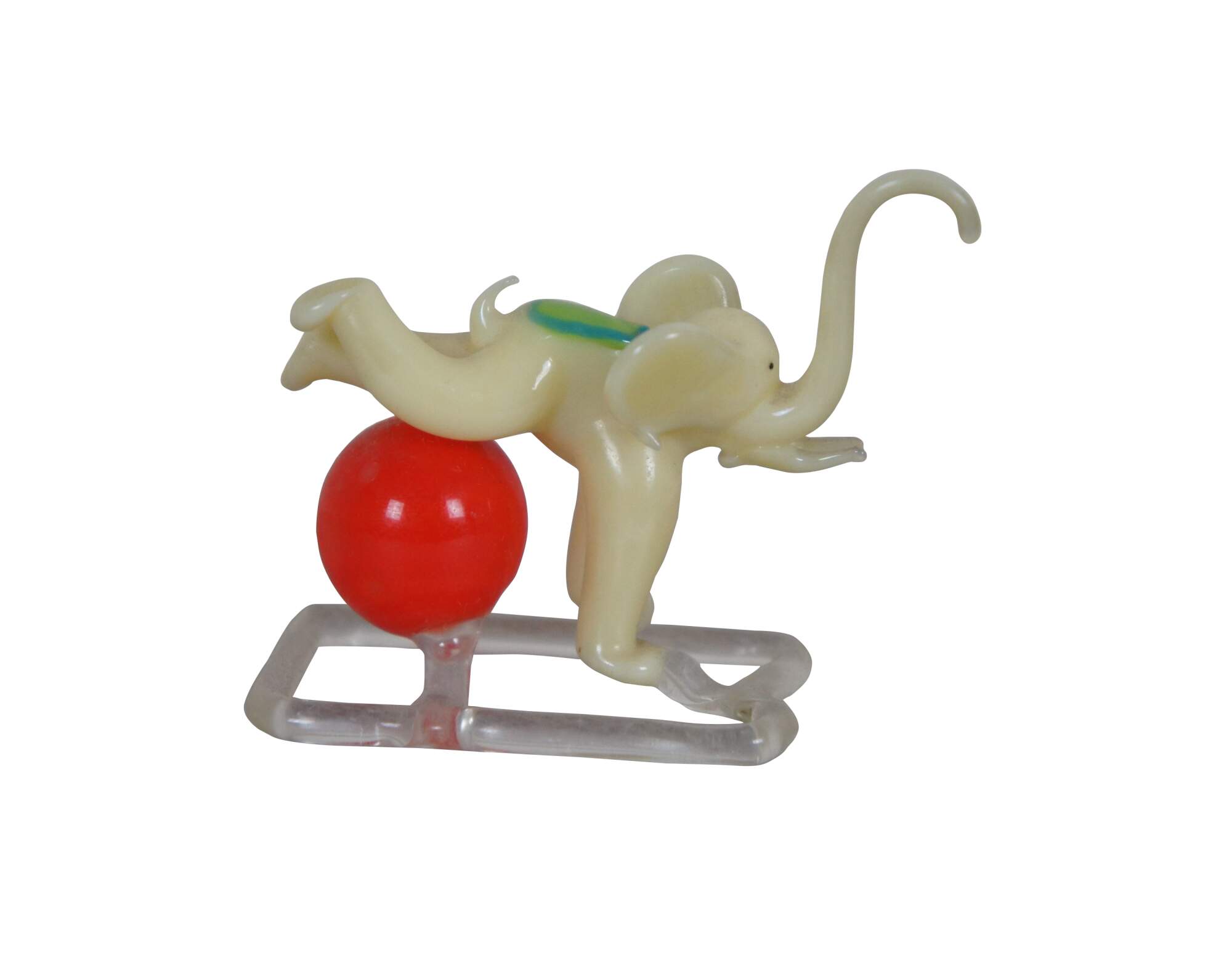 Pair of rare mid to early century Jaroslav Brychta Bohemian Czech hand blown art glass circus elephants with saddles and red balance balls.