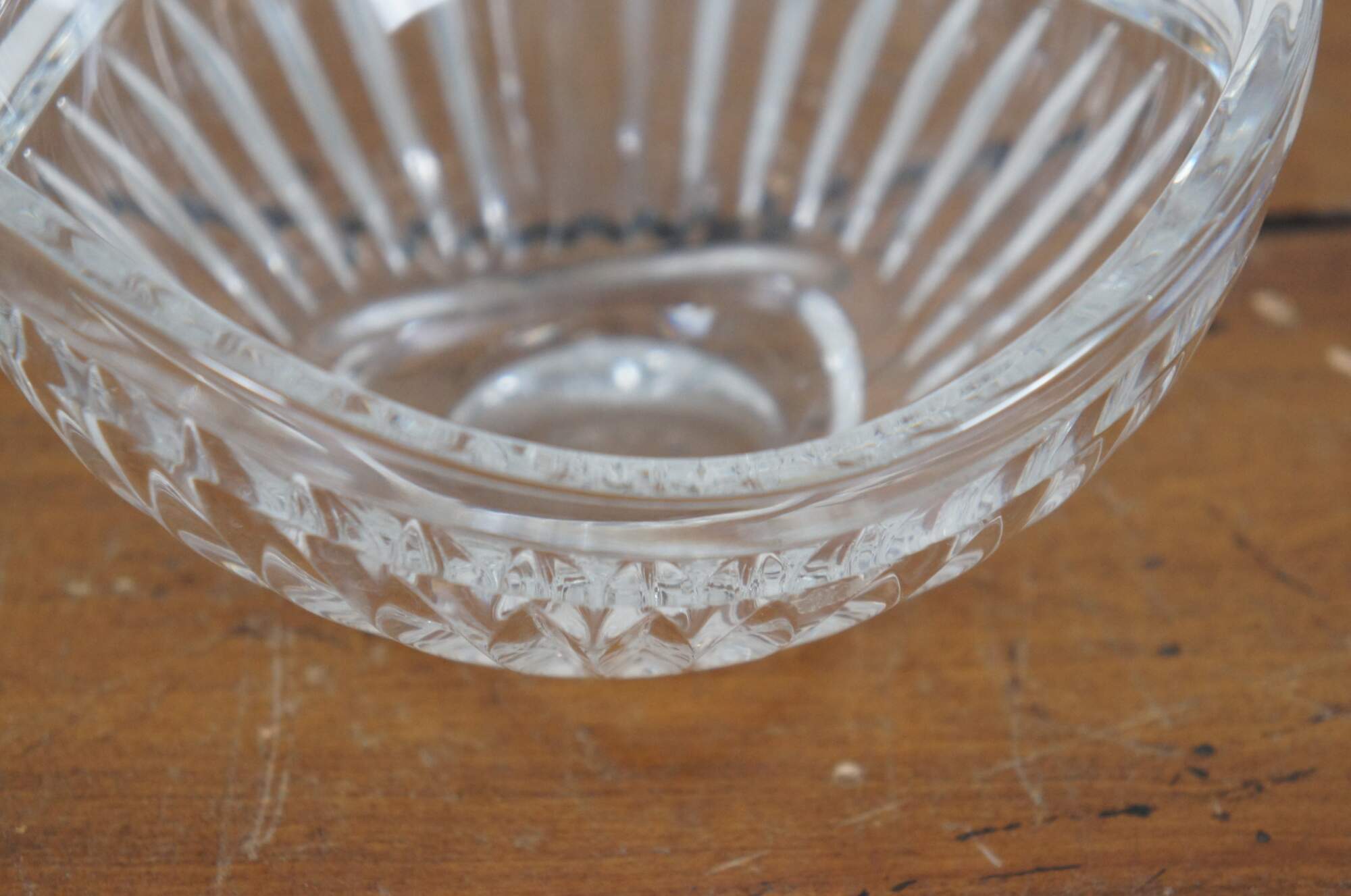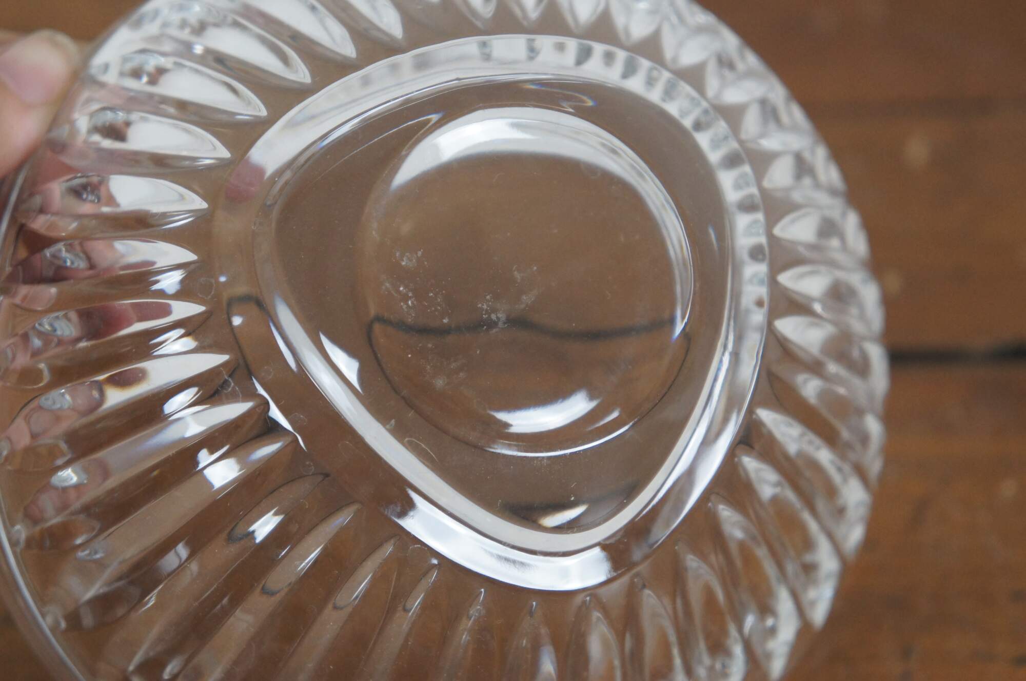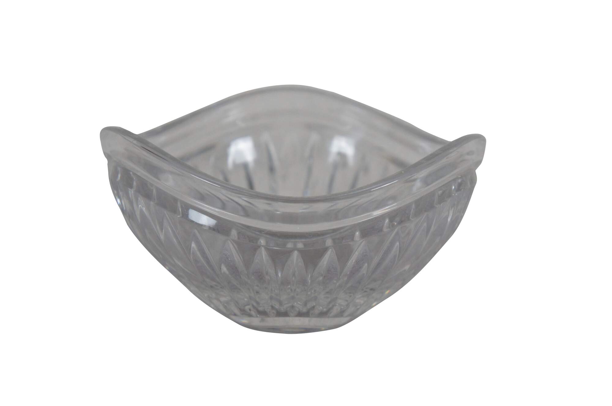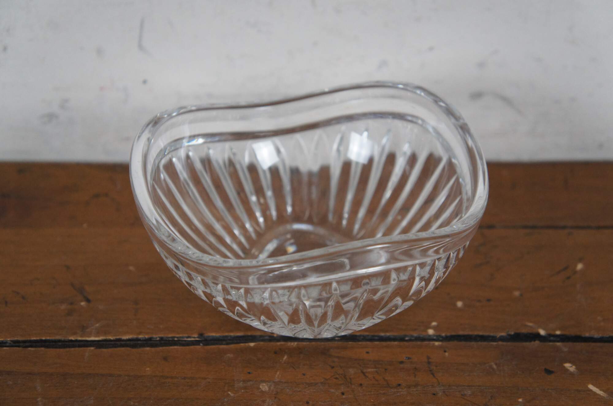 Late 20th century Mikasa crystal small serving dish / bowl in the Cimarron pattern, featuring a rounded triangular form with waveform rim and fluted texture on the sides.
