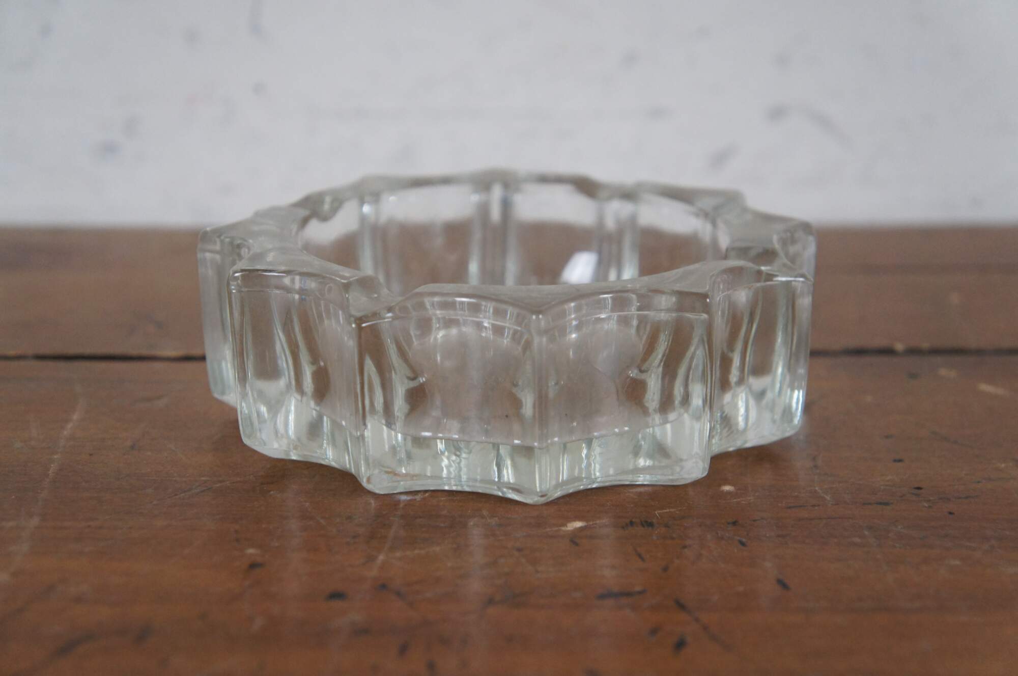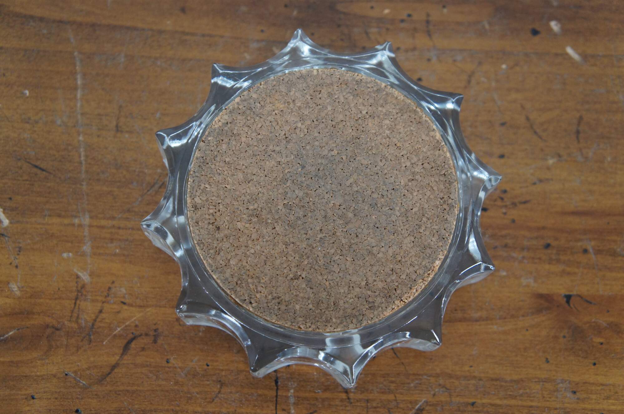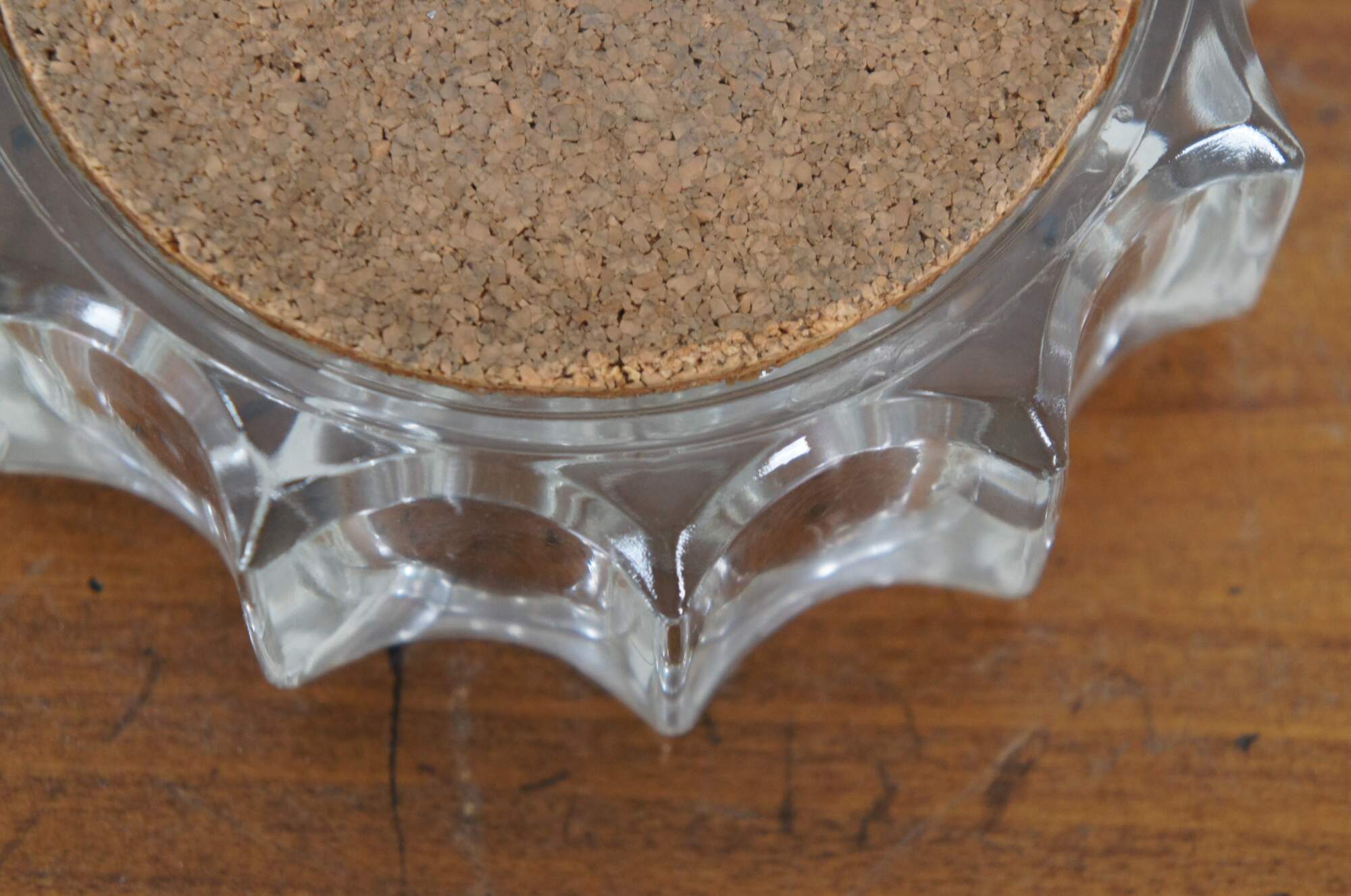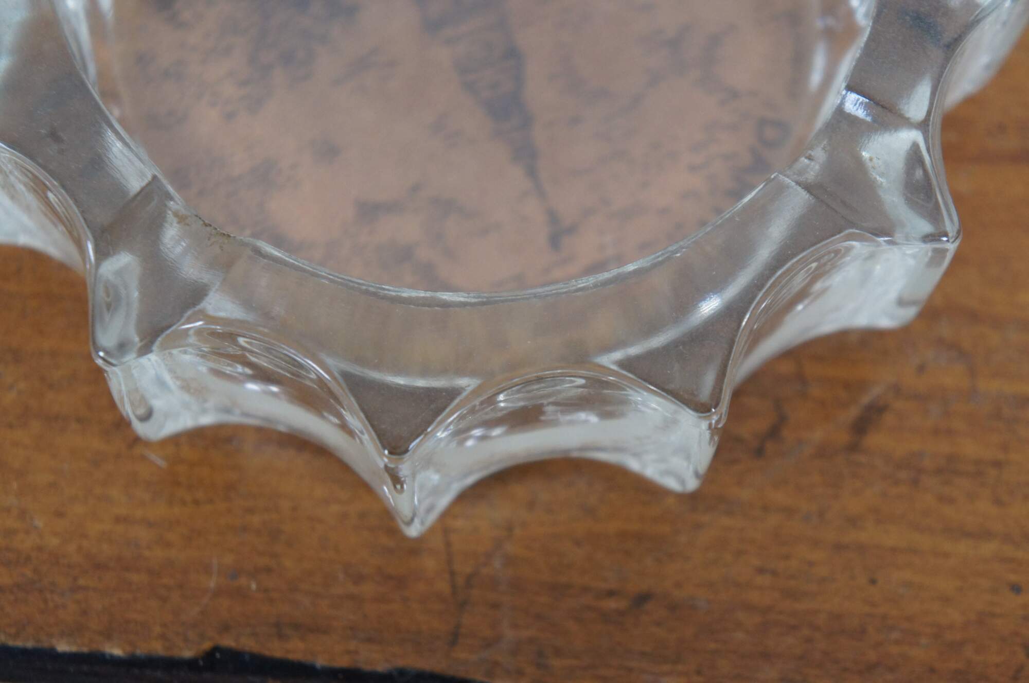 Sturdy vintage 20th century clear glass ashtray or paperweight with a scalloped, sunburst shaped edge and four cigarette rests. Cork base decorated with the sepia toned image of Dartmouth College's Baker Library.