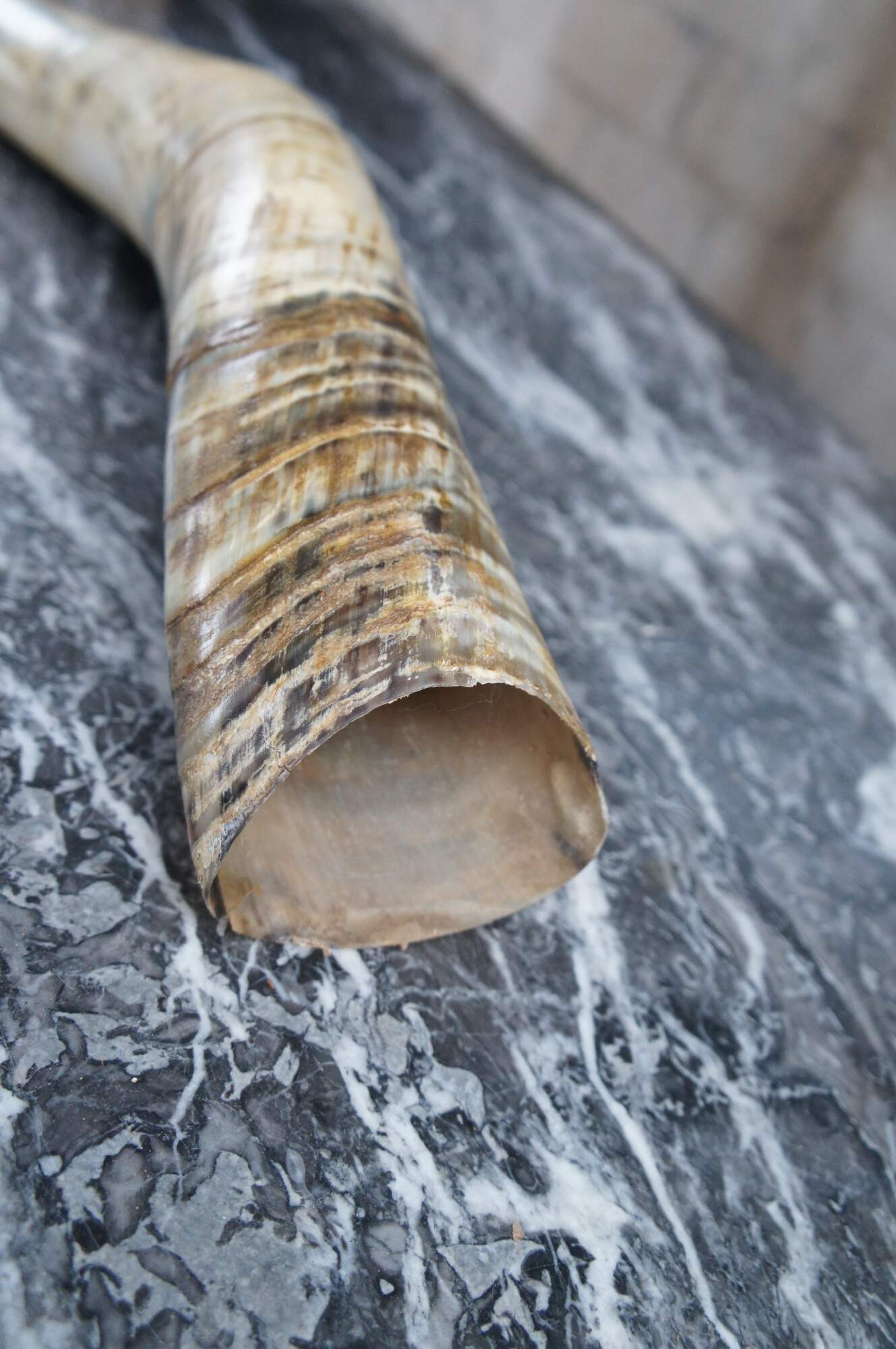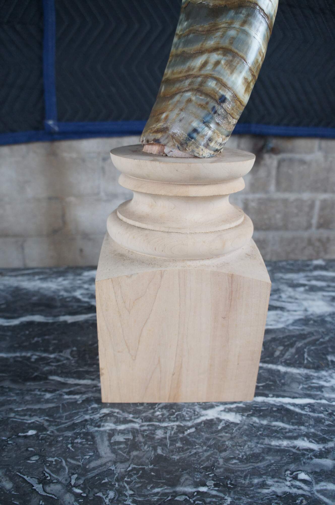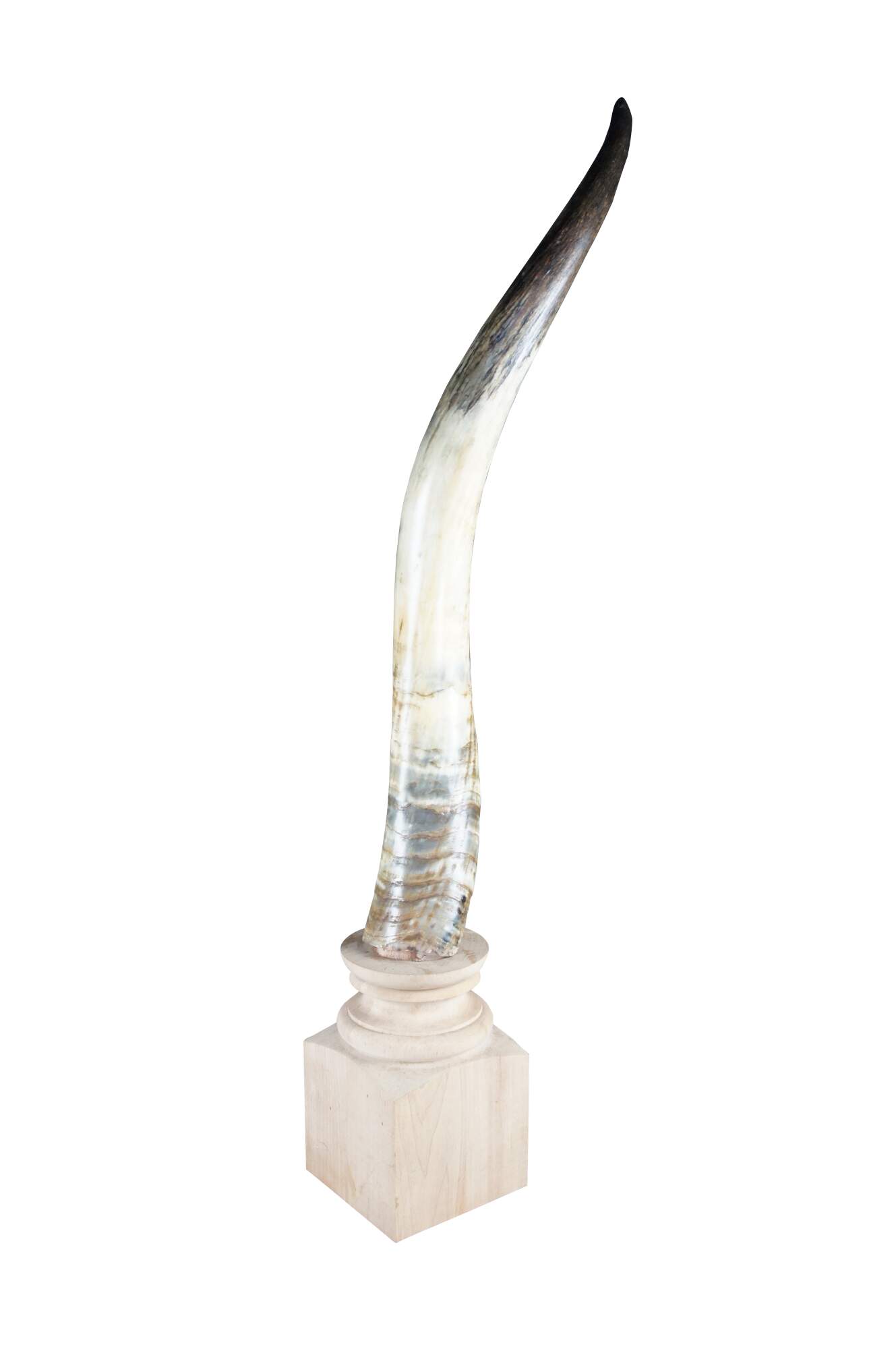 Kudu horn over plinth base. Features realistic patina and modern styling.