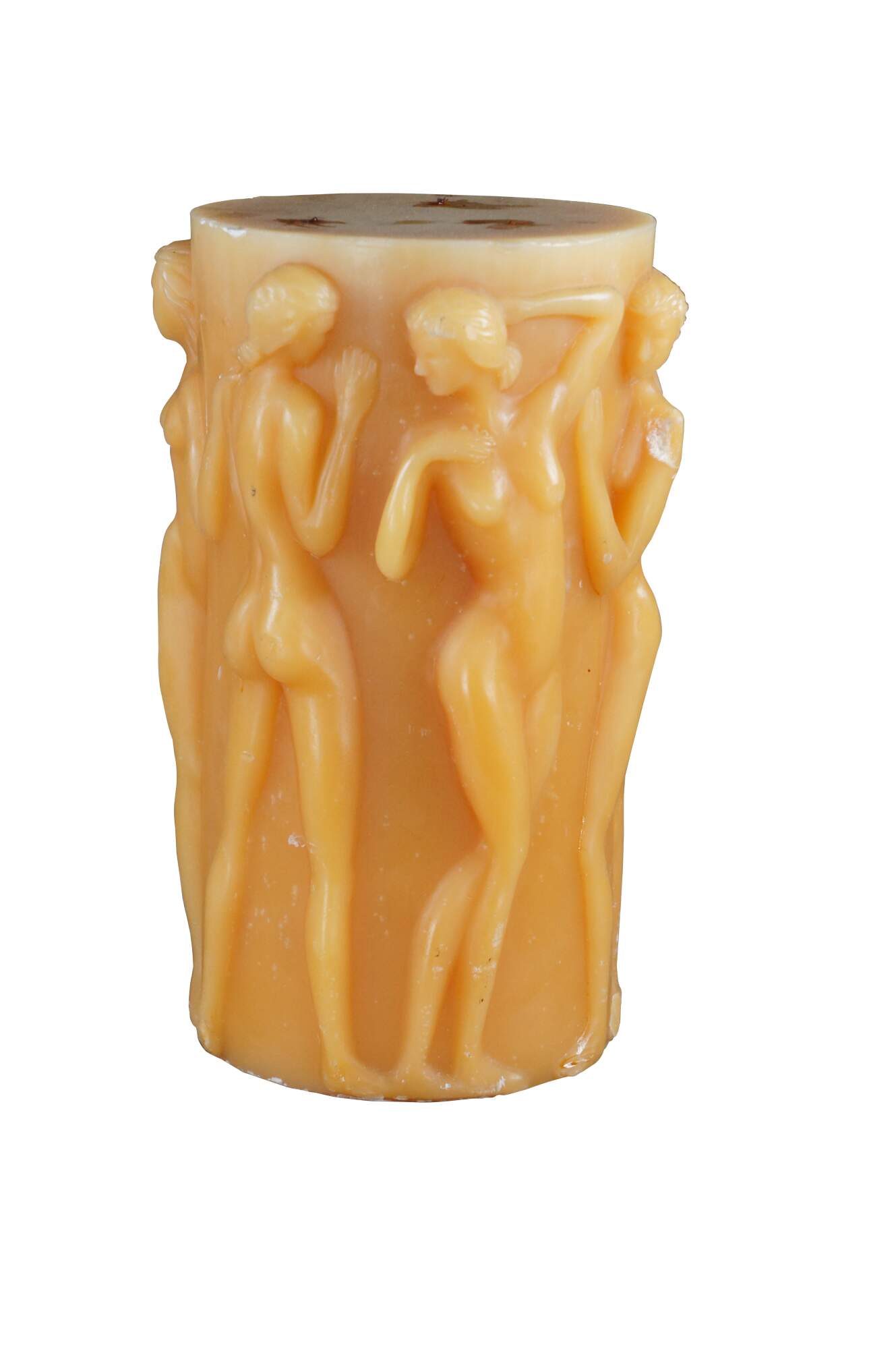 Intira Candle Factory figural nude cylindrical candle. Styled after Lalique "Bacchantes