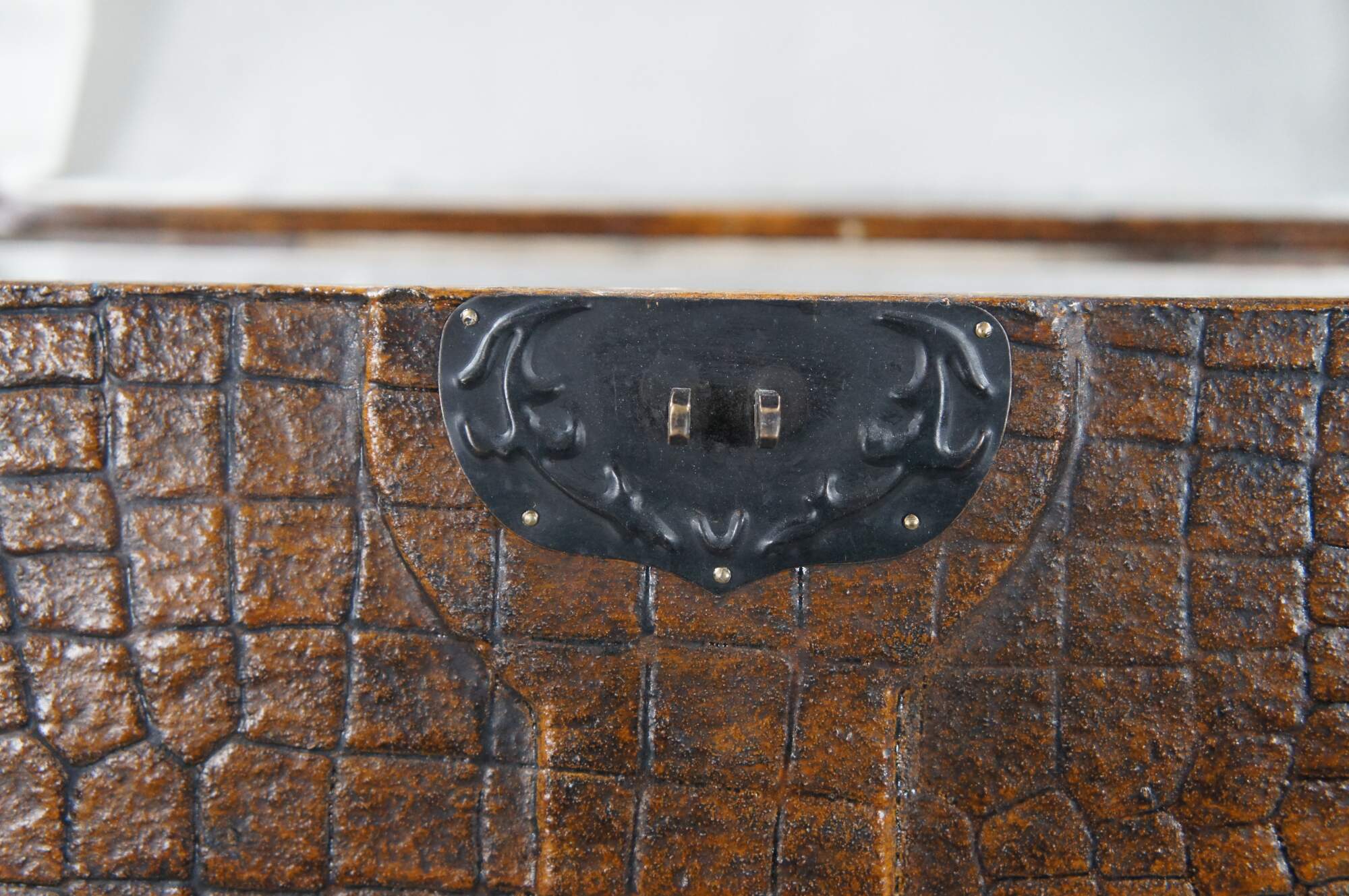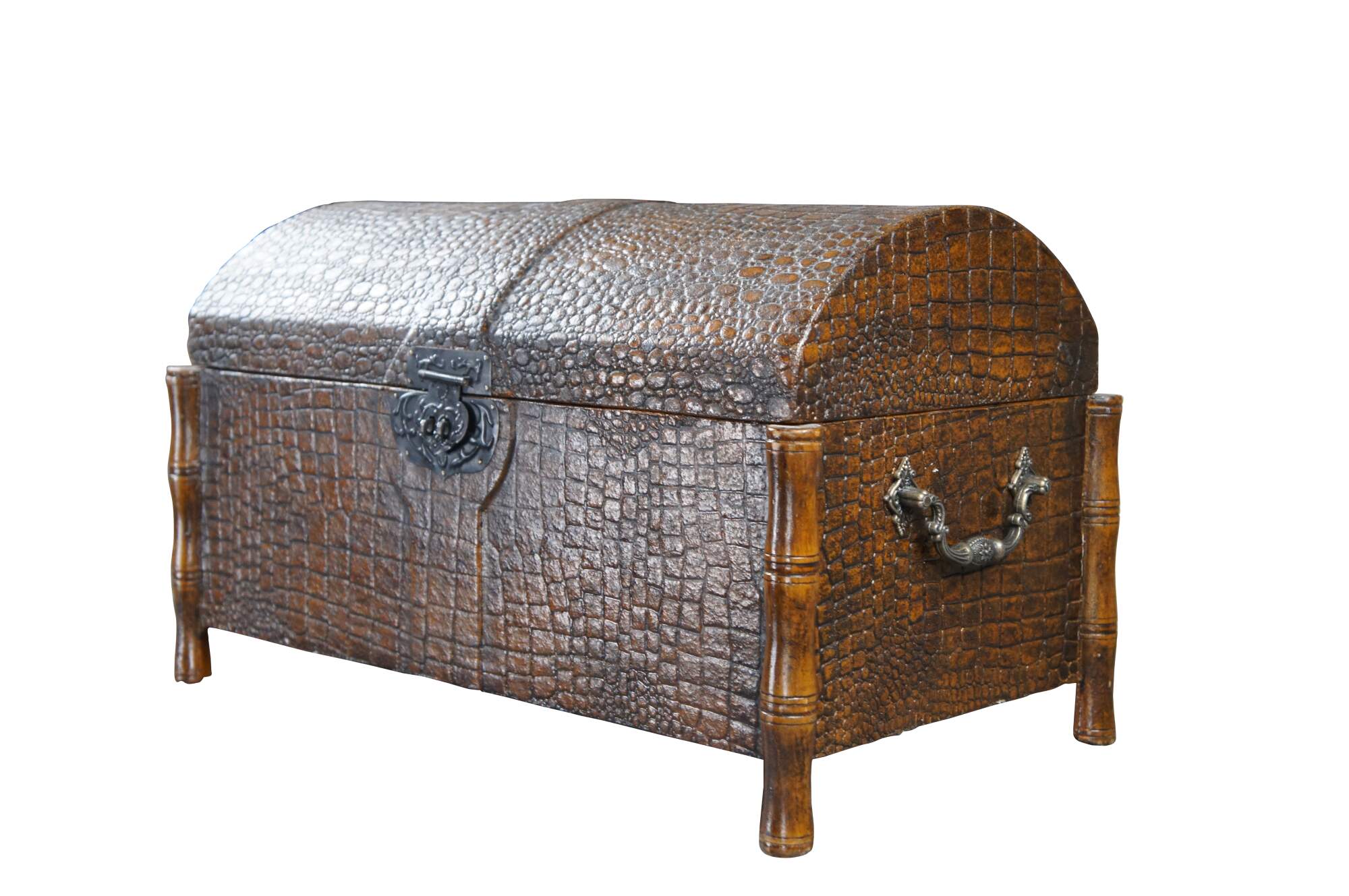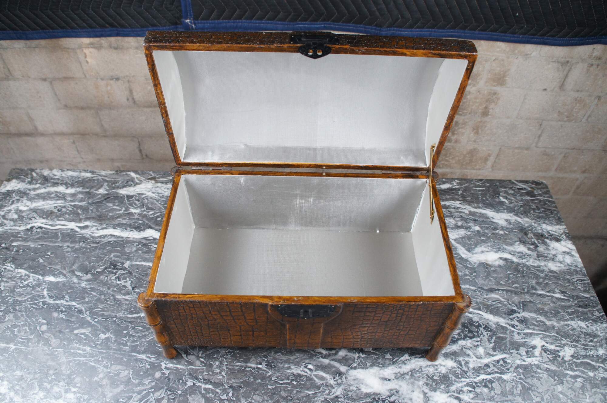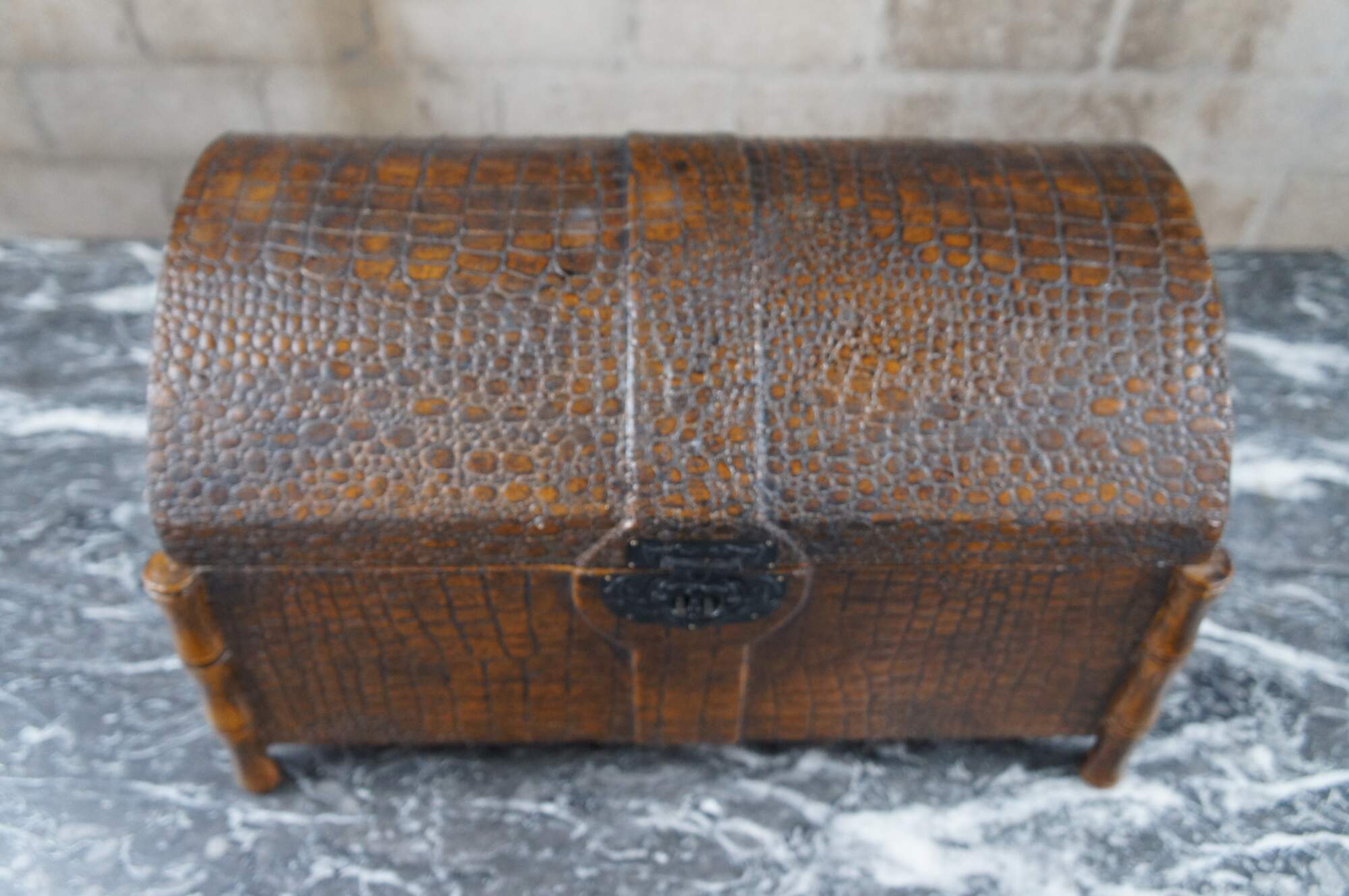 Chateau Edgewater Inc keepsake box. Features a domed exterior with faux alligator / bamboo form. Includes brass hardware with a silk line interior.