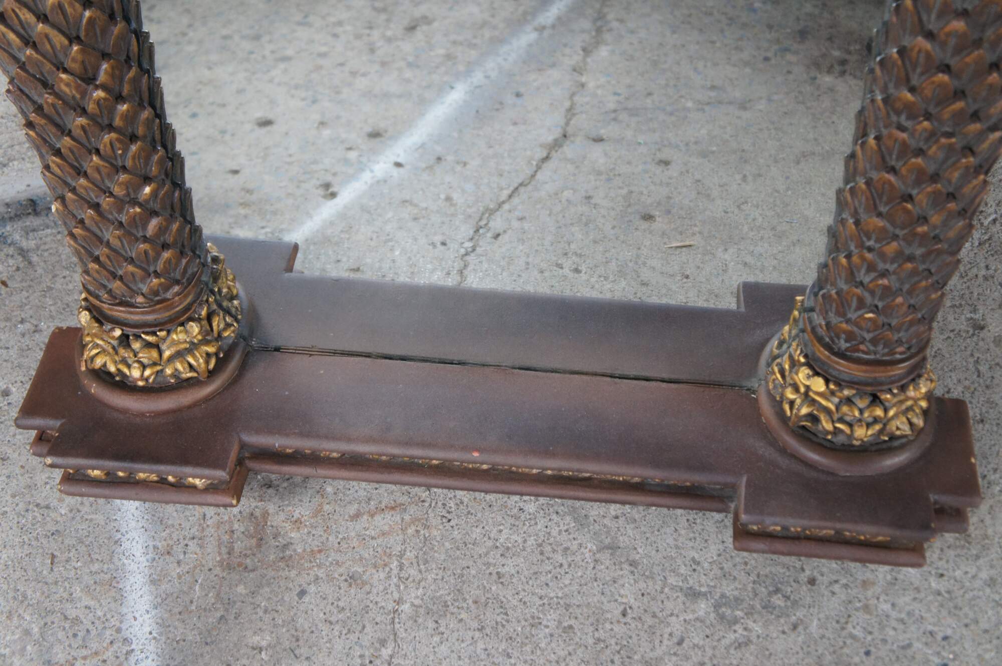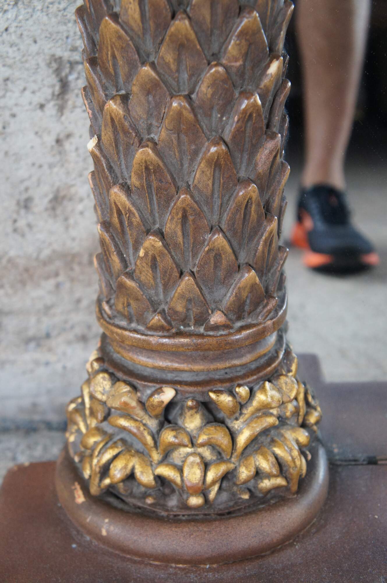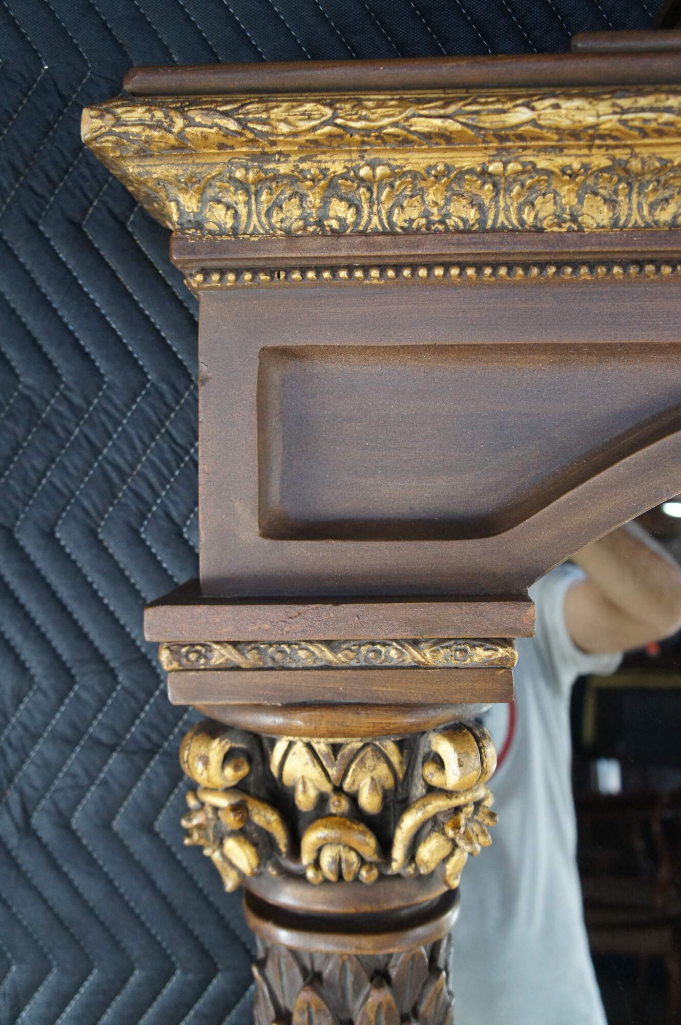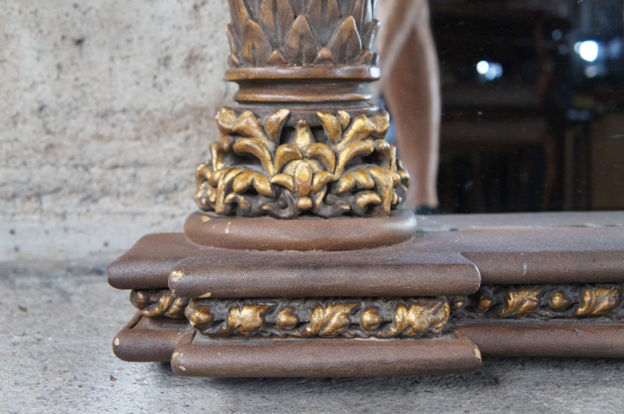 Timeless Reflections Regency style mirror, circa last quarter 20th century. Features two ornate columns with gold acanthus accents and pineapple / fleur de list crown. Made by Timeless Industries in Mexico