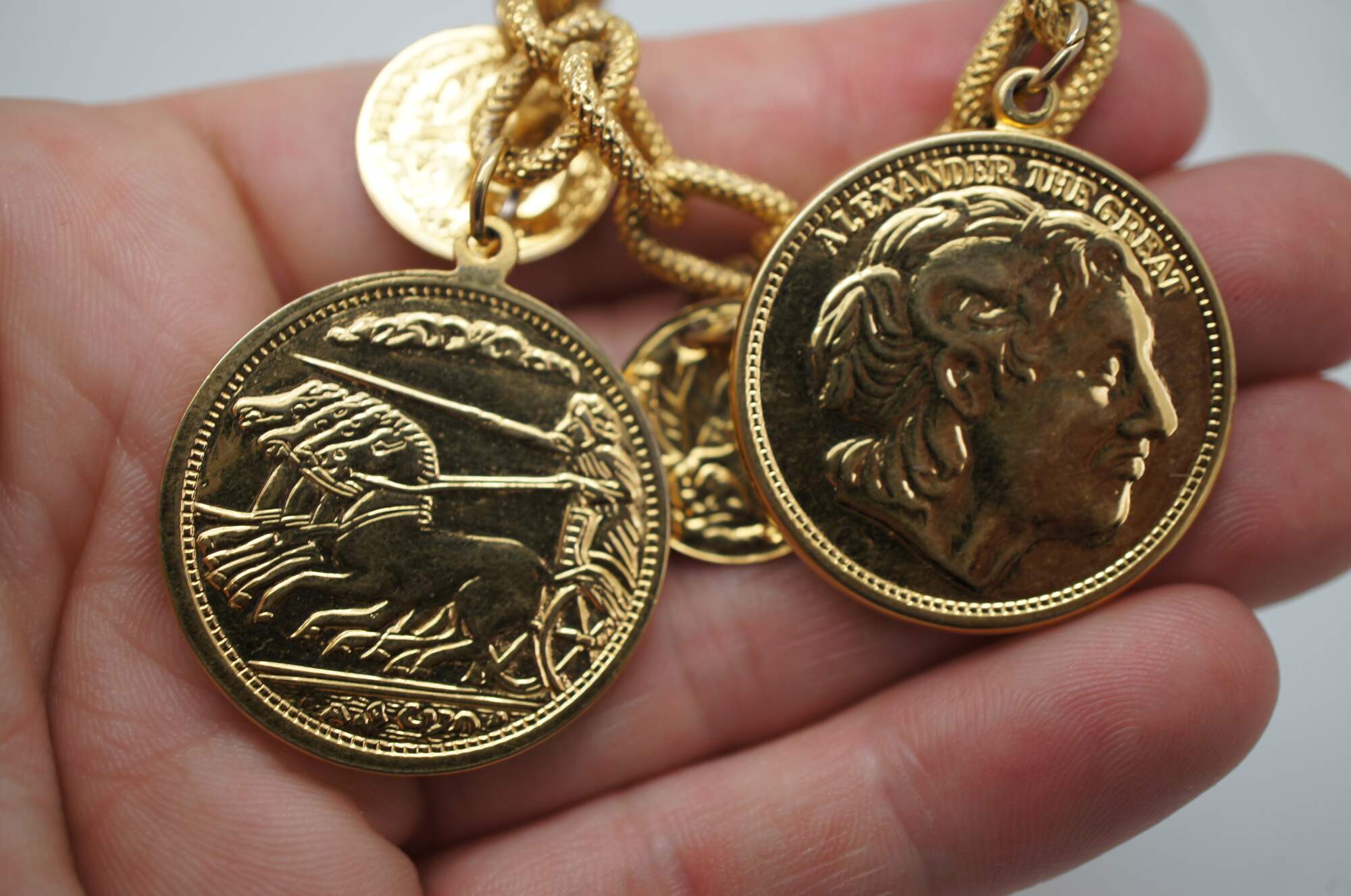 Lot of 7 mid to late 20th century bracelets. silver tone, gold tone, rhinestone, enamel, coins, love. Marks includes Weiss, Trifari, Kramer.
