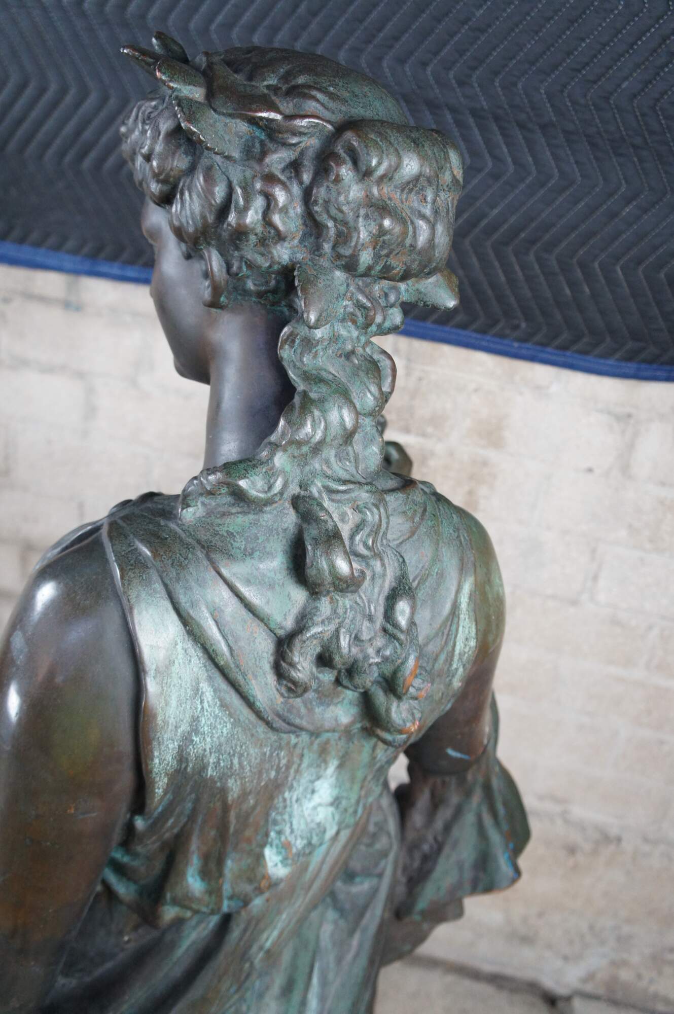 A rare and Impressive solid bronze sculpture of Demeter, The Goddess of Harvest, Circa late 18 to early 19th Century. She's is shown standing with tunic, grapes in one hand and a wreath with fruit in the other. Cast in a dark bronze with green verdigris patina.