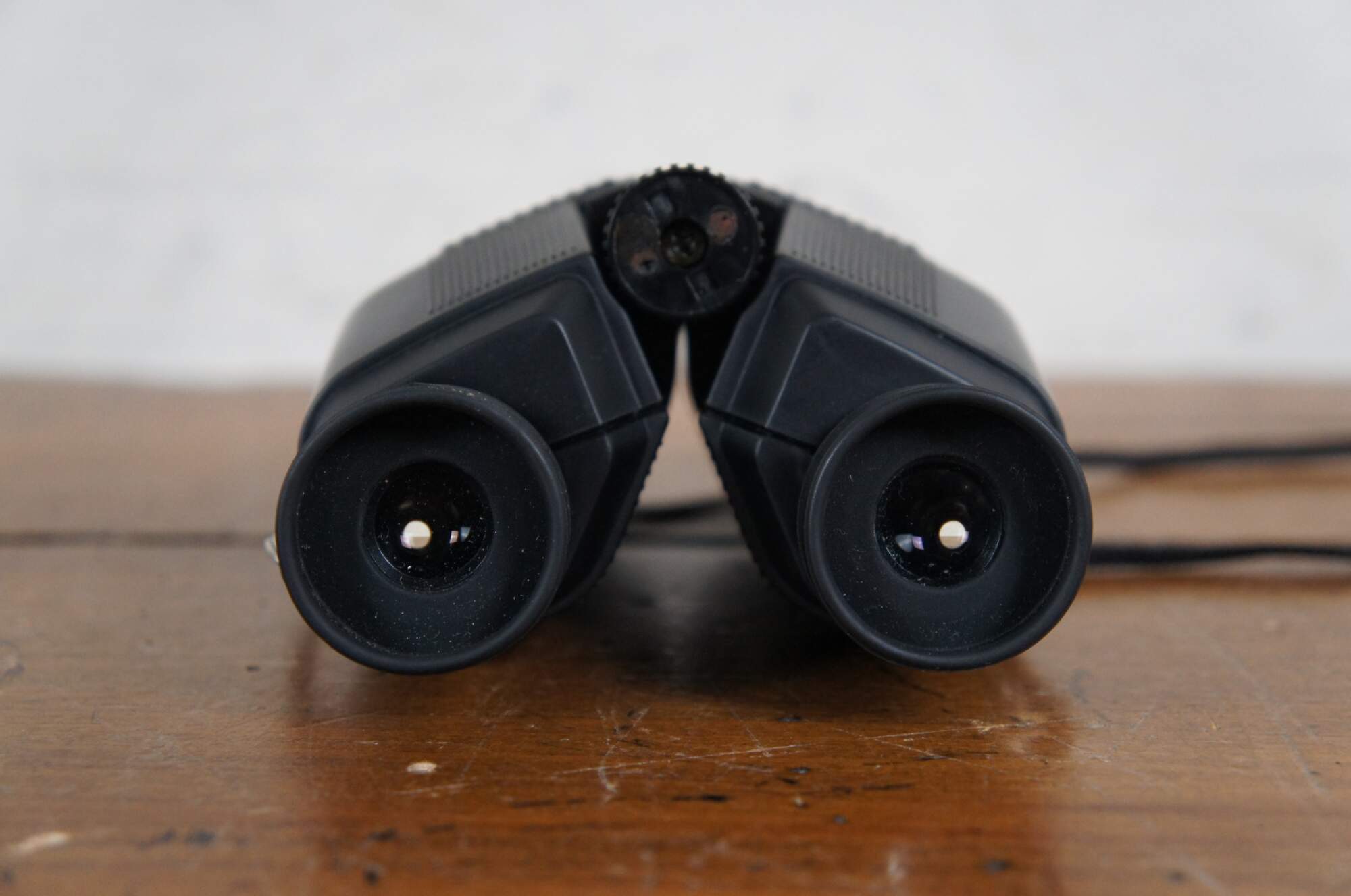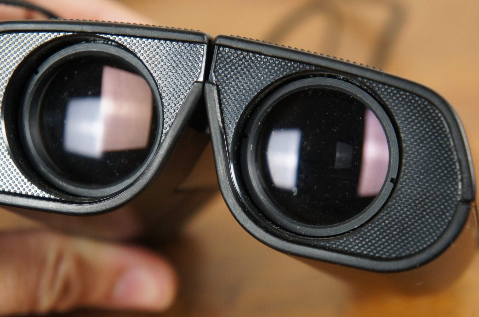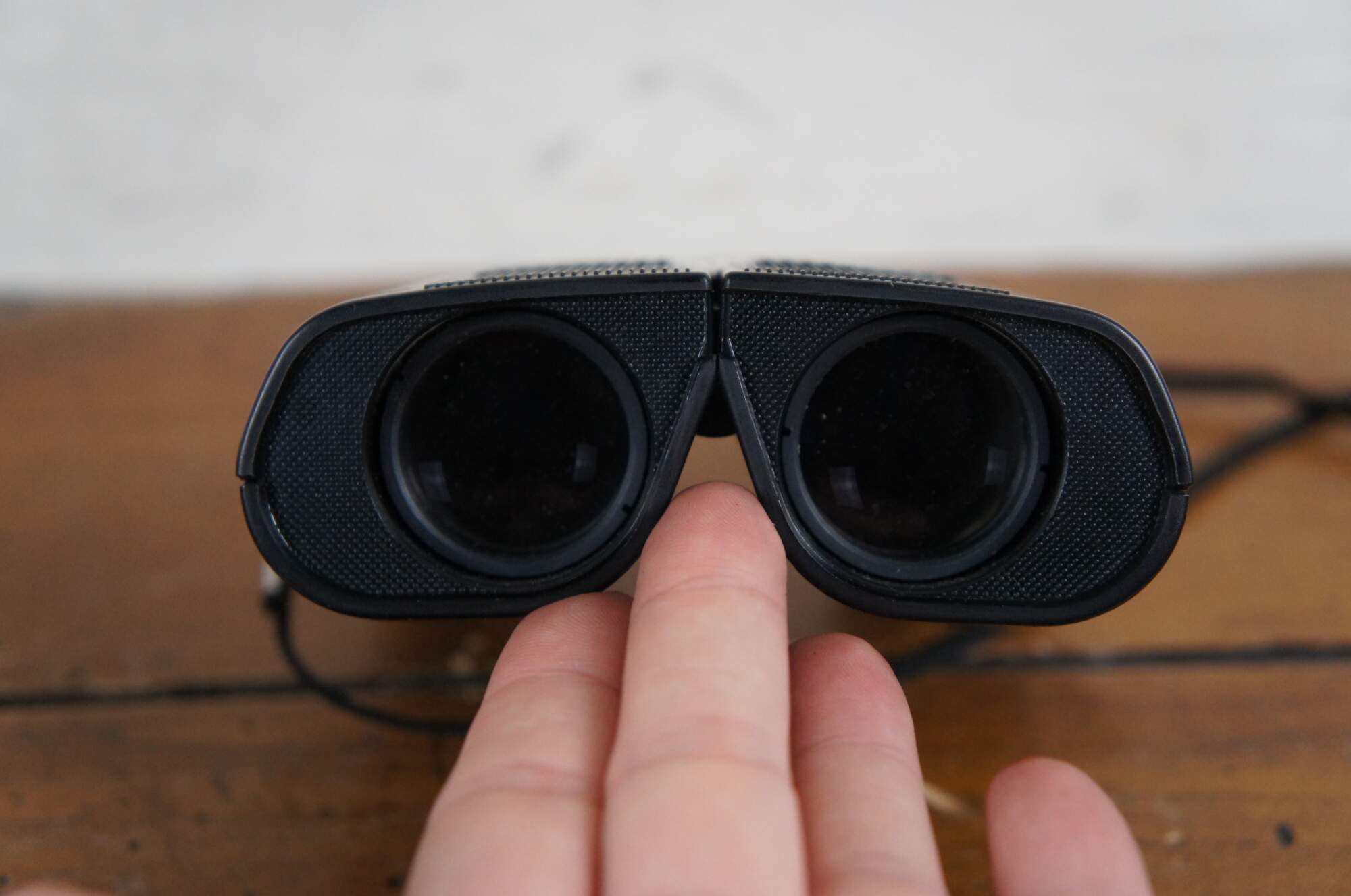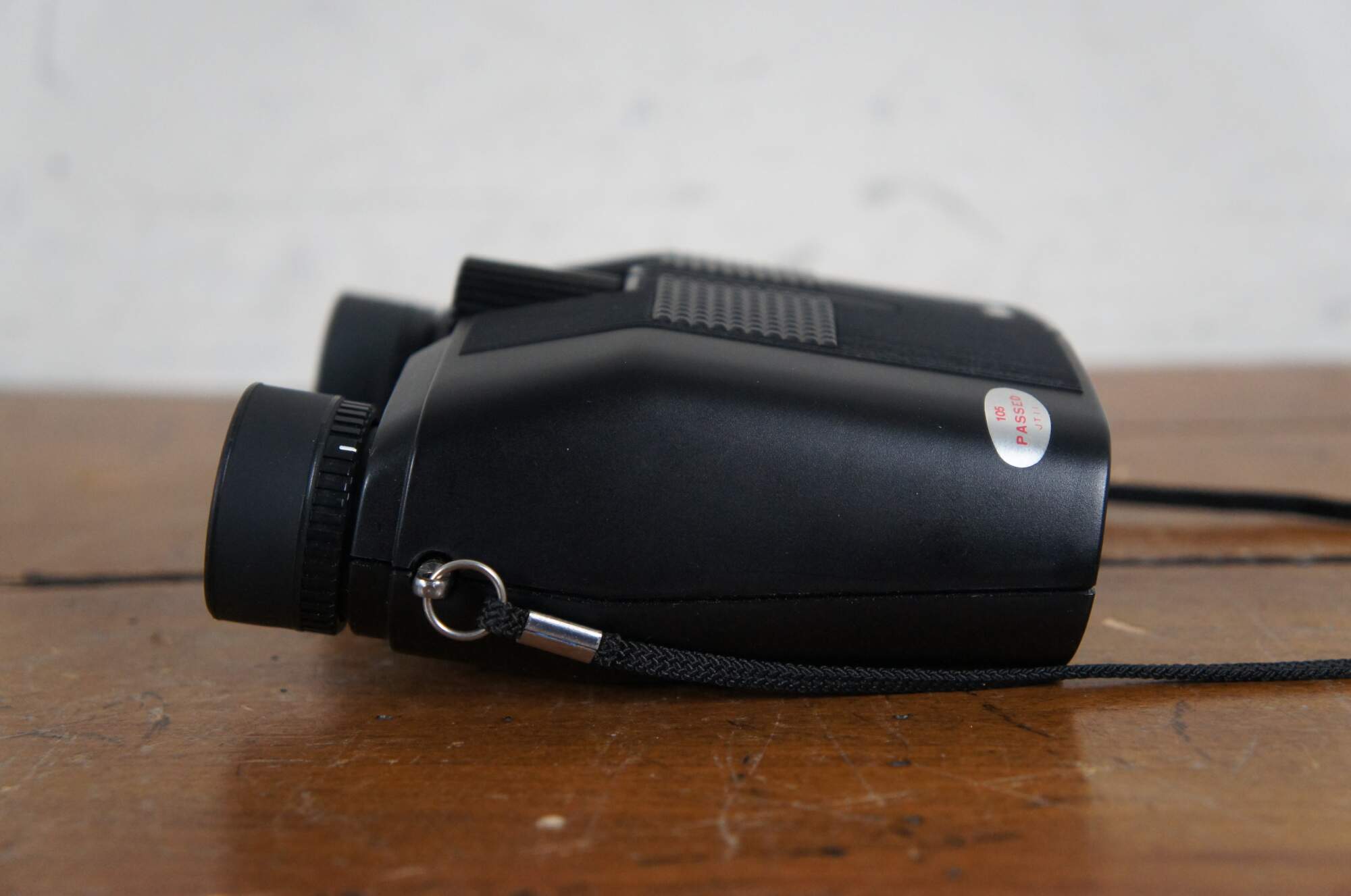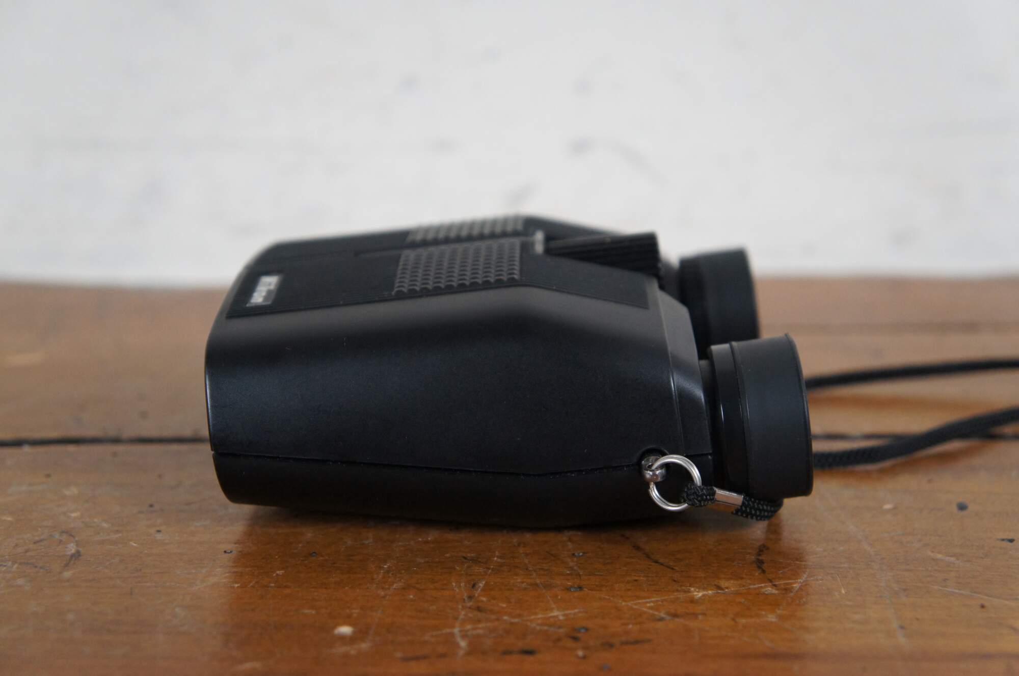 Late 20th century Nikon travelite compact binoculars with blaack leather zippered pouch and neck strap. Sticker missing but appear to match models labeled 9x25 5.6 degrees. Made in Japan.