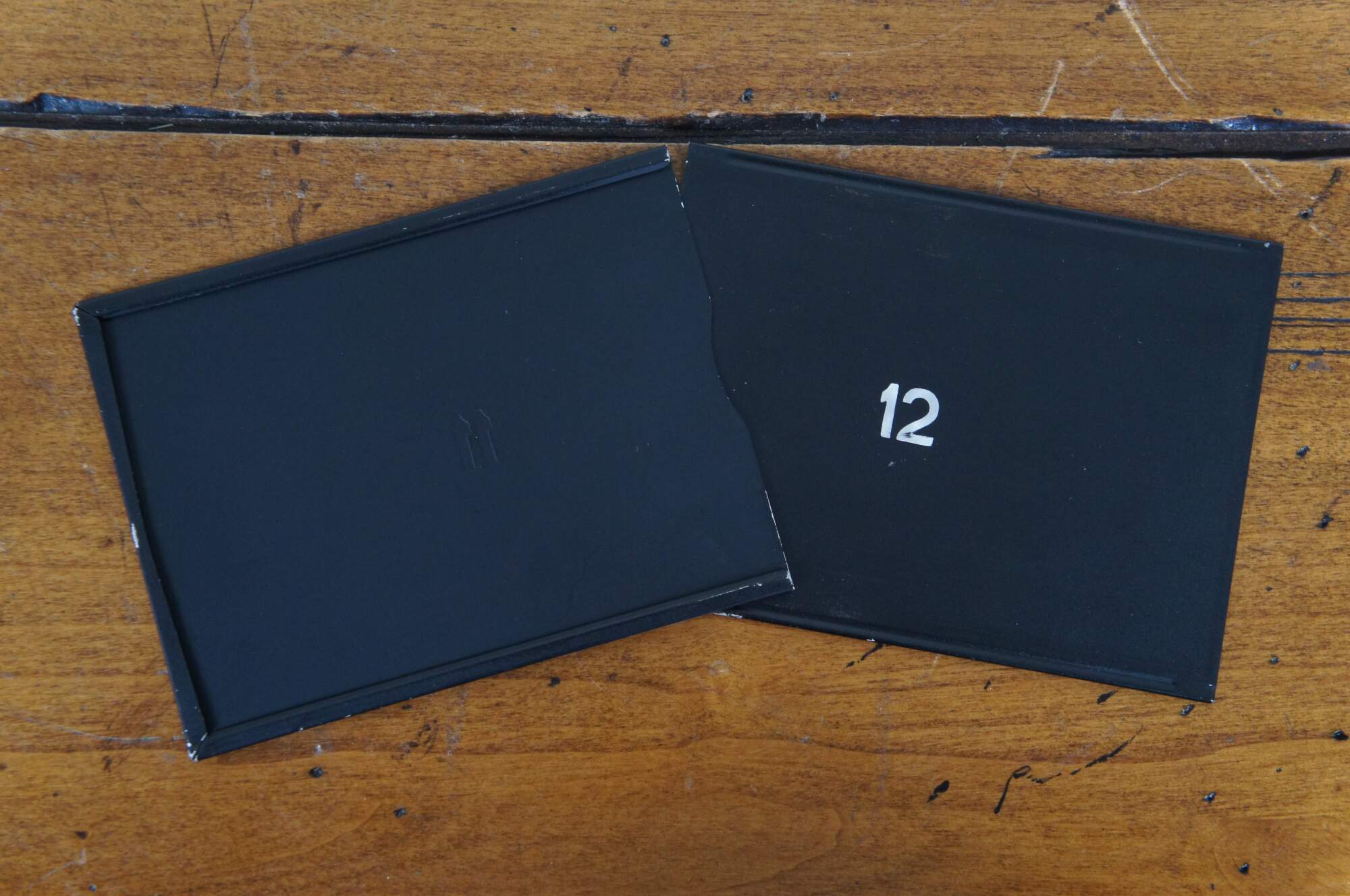 "The Graflex magazines are designed to carry 12 metal septums. Each septum is numbered on the back, the number appearing at the ruby window in the back of the magazine as each exposure is made. When a film or plate is exposed the septum is drawn into a leather changing bag attached to the end of the magazine, by means of a sliding rod, and reinserted by hand into the rear of the magazine. The films or plates are held in the septums by means of the flanges... The embossed ridge underneath serves as a means to keep the film or plate against the retaining edges of the flange and in the plane of focus." (Source: Original Directions for Operating Graflex cut Film or Plate Magazines / Pacific Rim Camera)