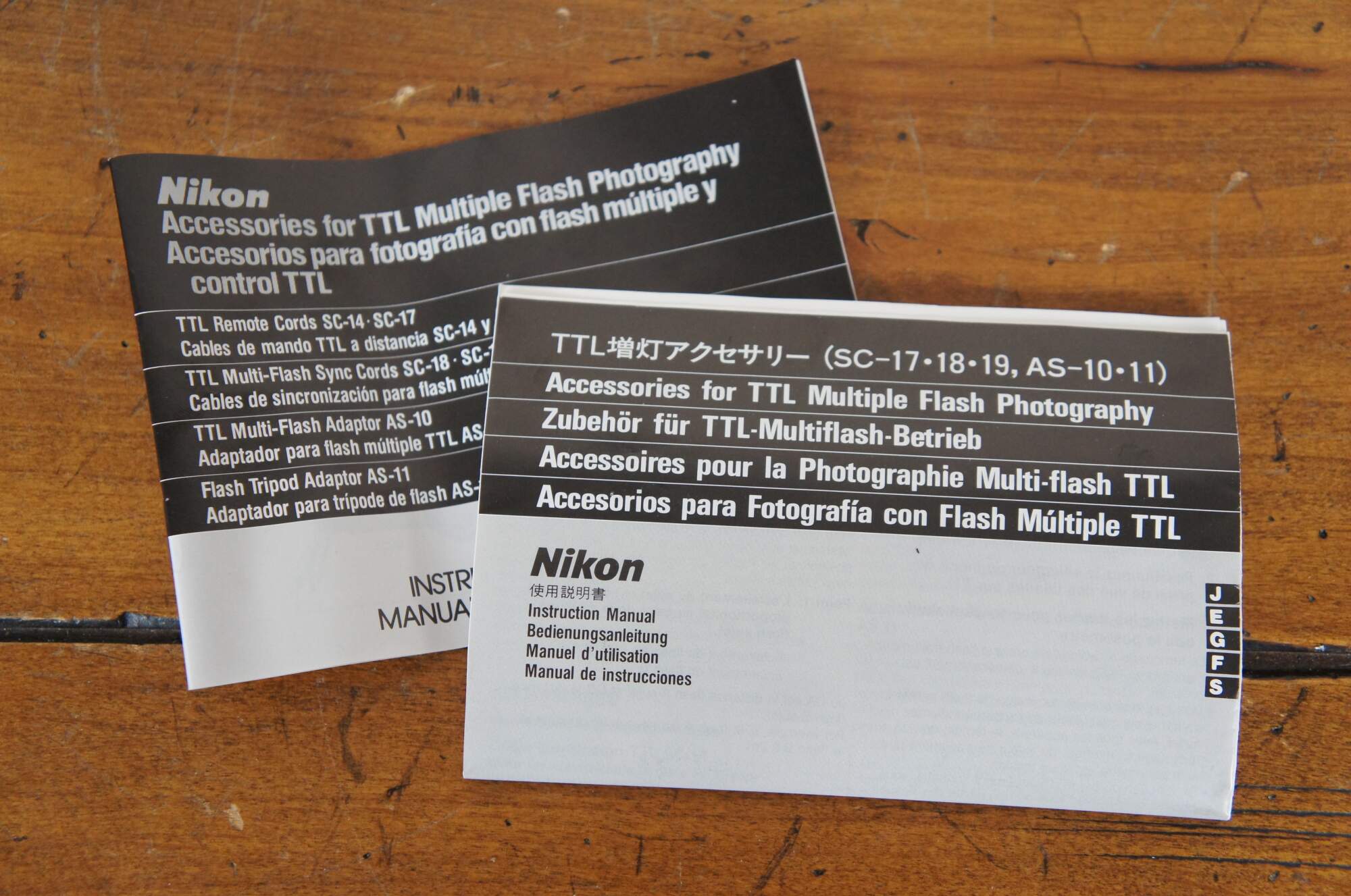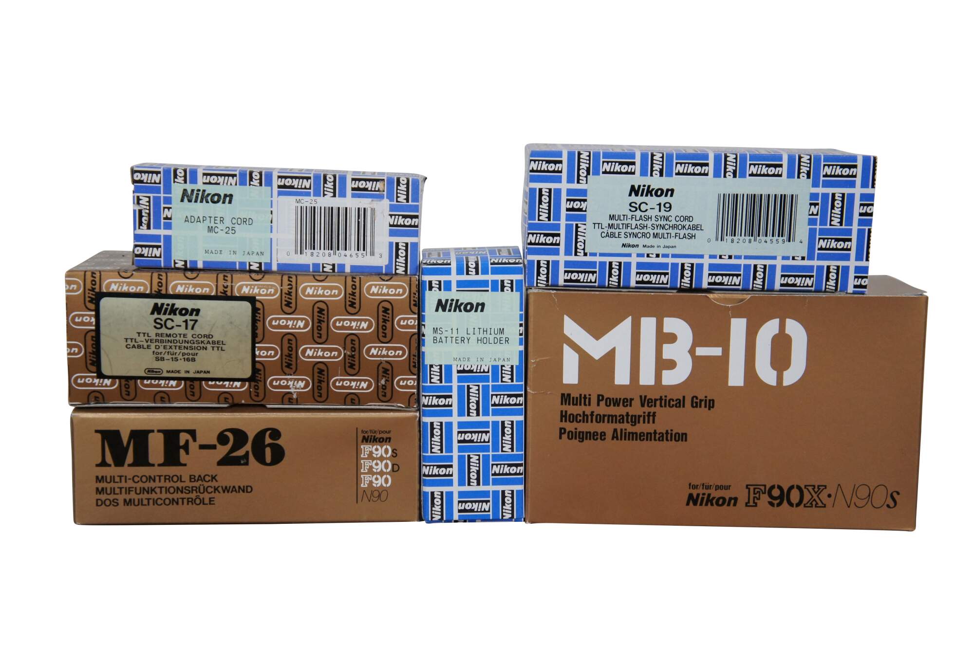 Includes: MF-26 Multi-Control Back, MB-10 Multi-Power Vertical Grip, MS-11 Lithium Battery Holder, MC-25 Adapter Cord, SC-17 TTL Remote Cord, SC-19 Multi-Flash Sync Cord, MC-12A Remote Cord, and MH-18A Quick Charger, three cords and instruction manual from D700 camera.
