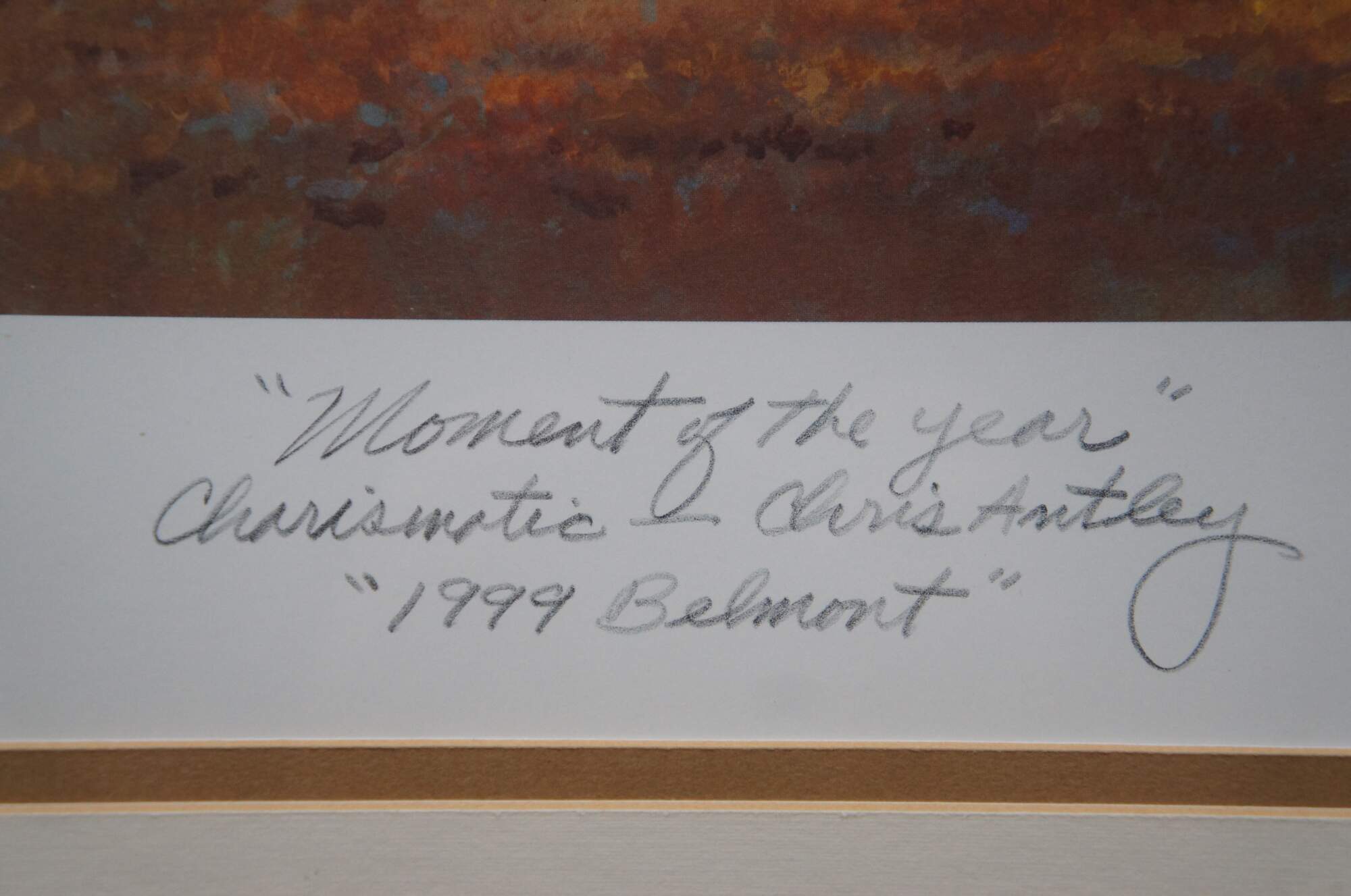 Vintage offset lithograph print by Fred Stone titled "Moment of the Year / Charismatic - Chris Antley / 1999 Belmont." Pencil signed and numbered 418/750 along the lower edge.