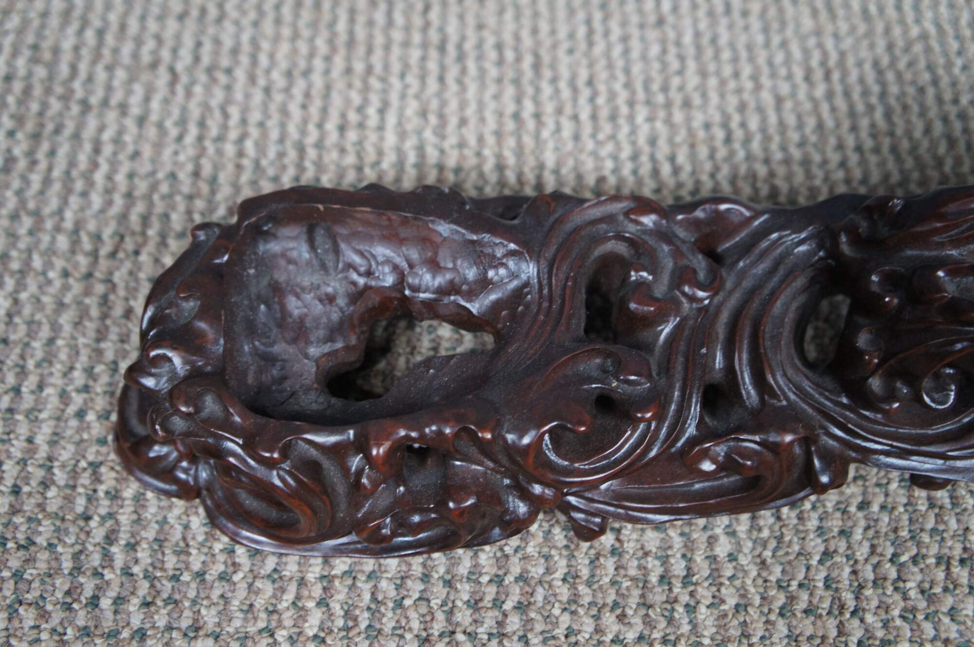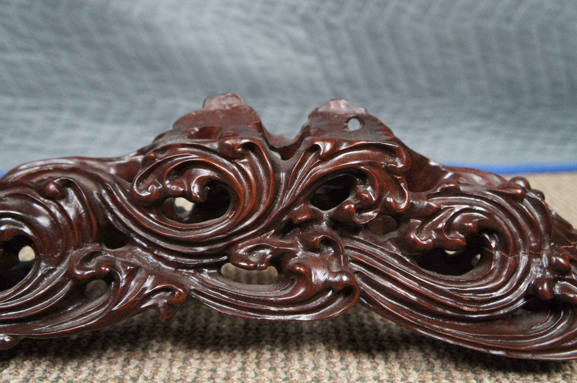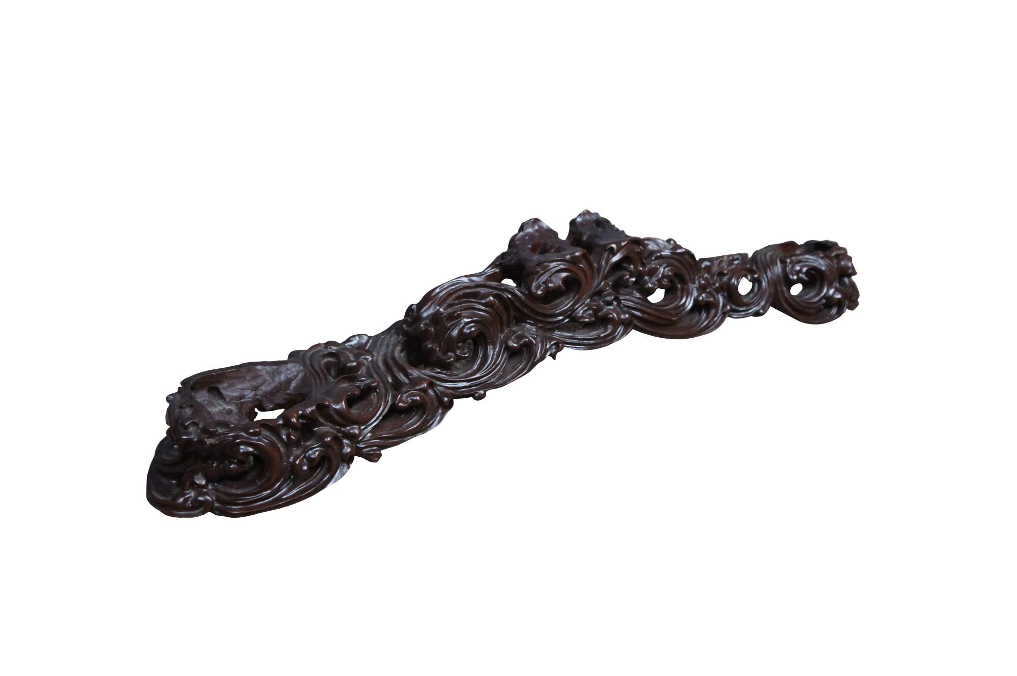 Ornate Baroque Style Composite Tusk or Bone Holder Stand. Feature flowing pierced foliate detail. Intended to hold an arched bone or tusk with the fat end on one side and the point sitting into the other side.