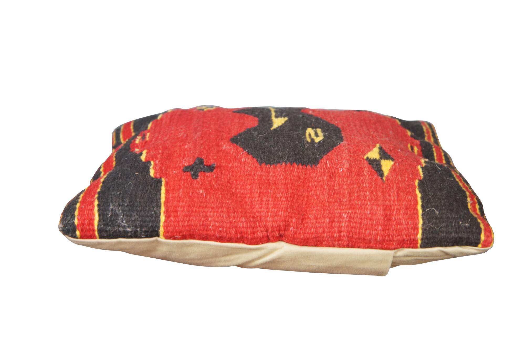 The Zapotecs of southern Mexico are internationally known for their weaving techniques. Here the bear motif marks a Zapotec wool weaving which was perfectly made into a pillow.