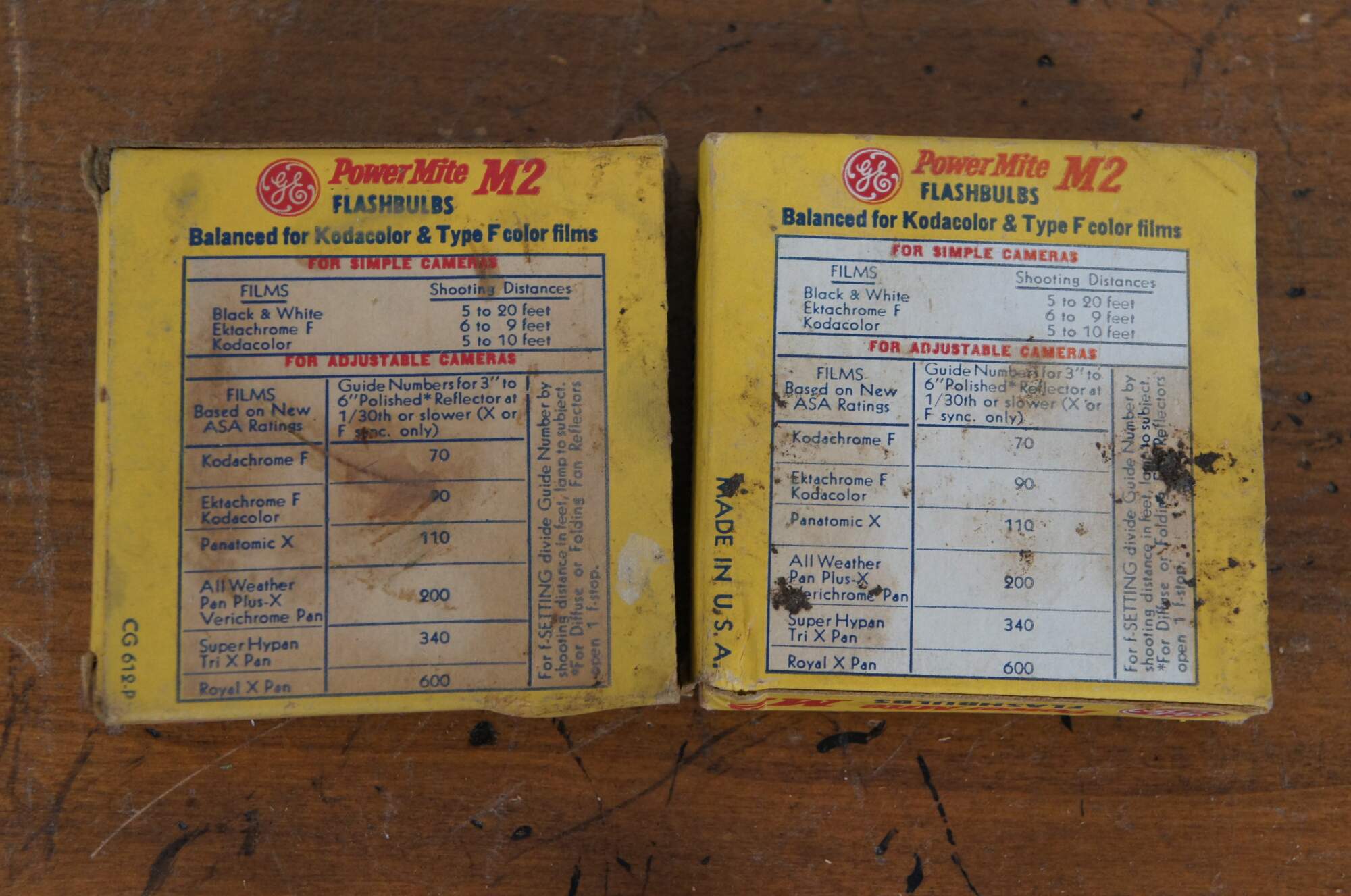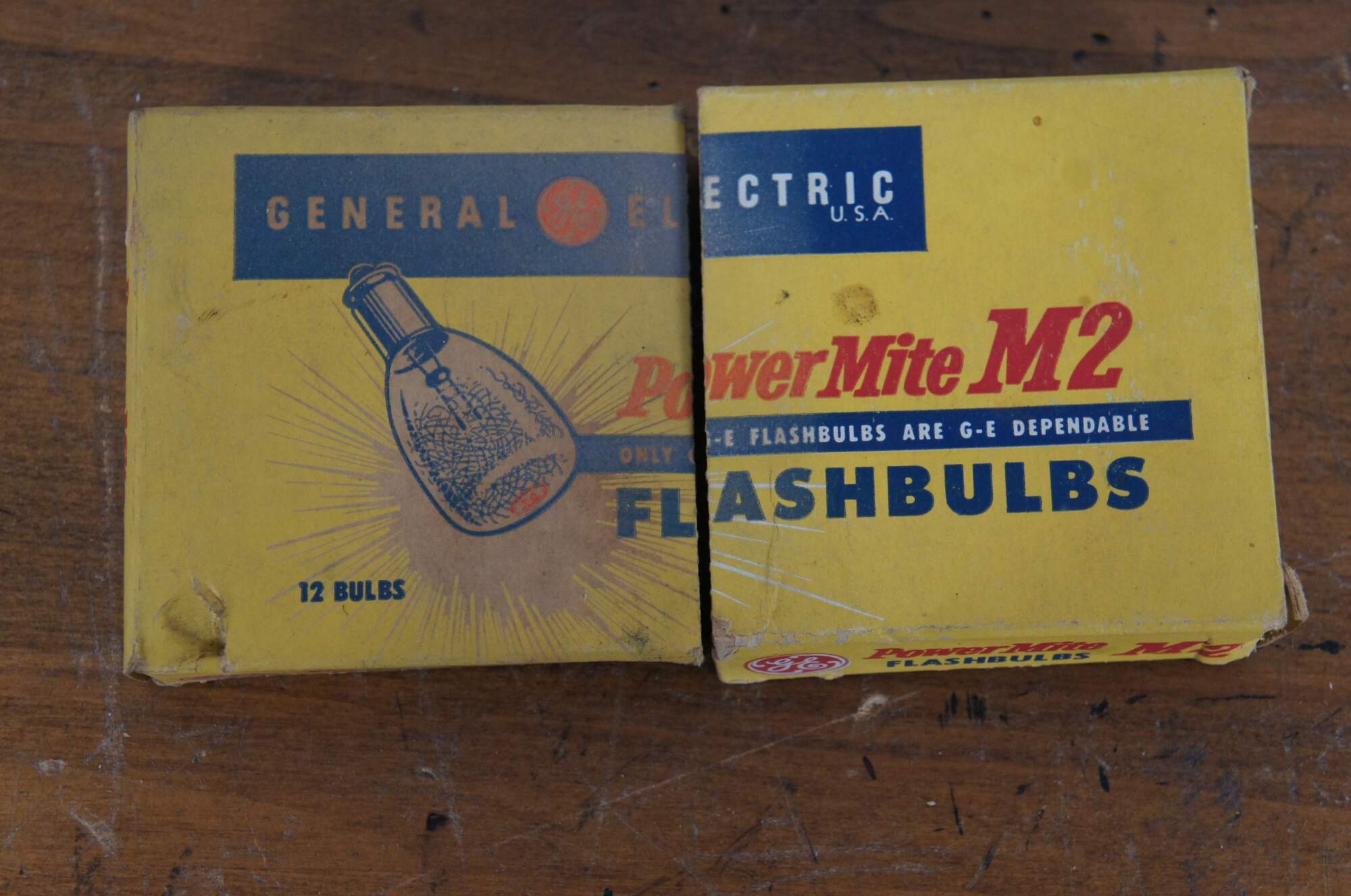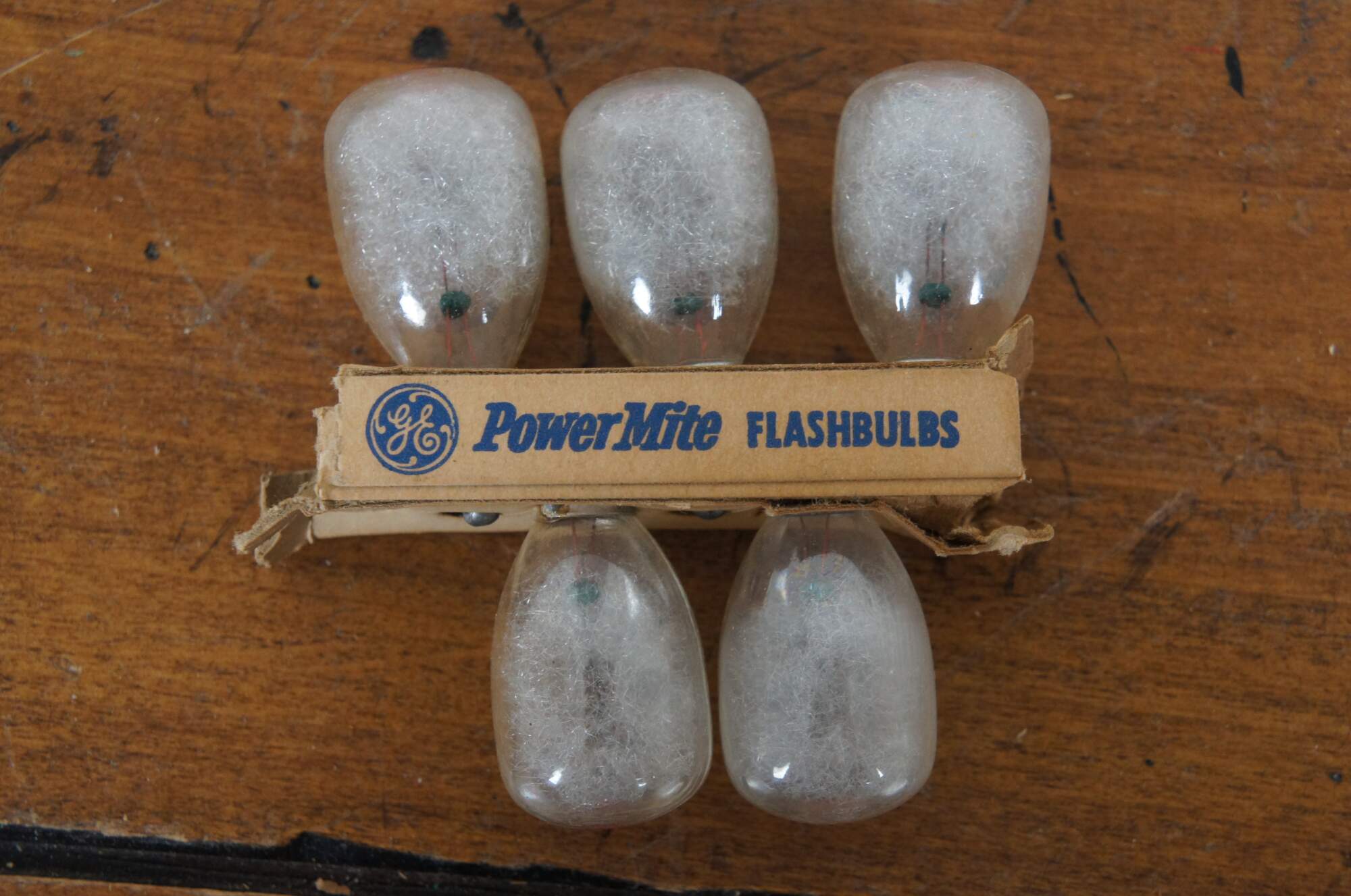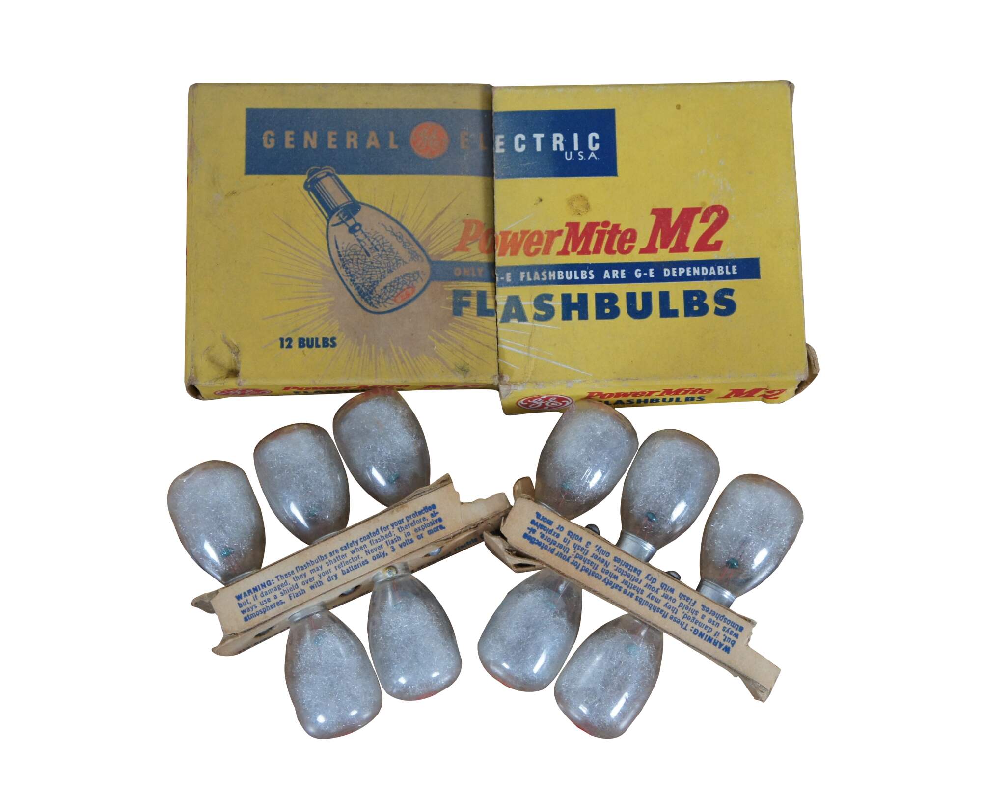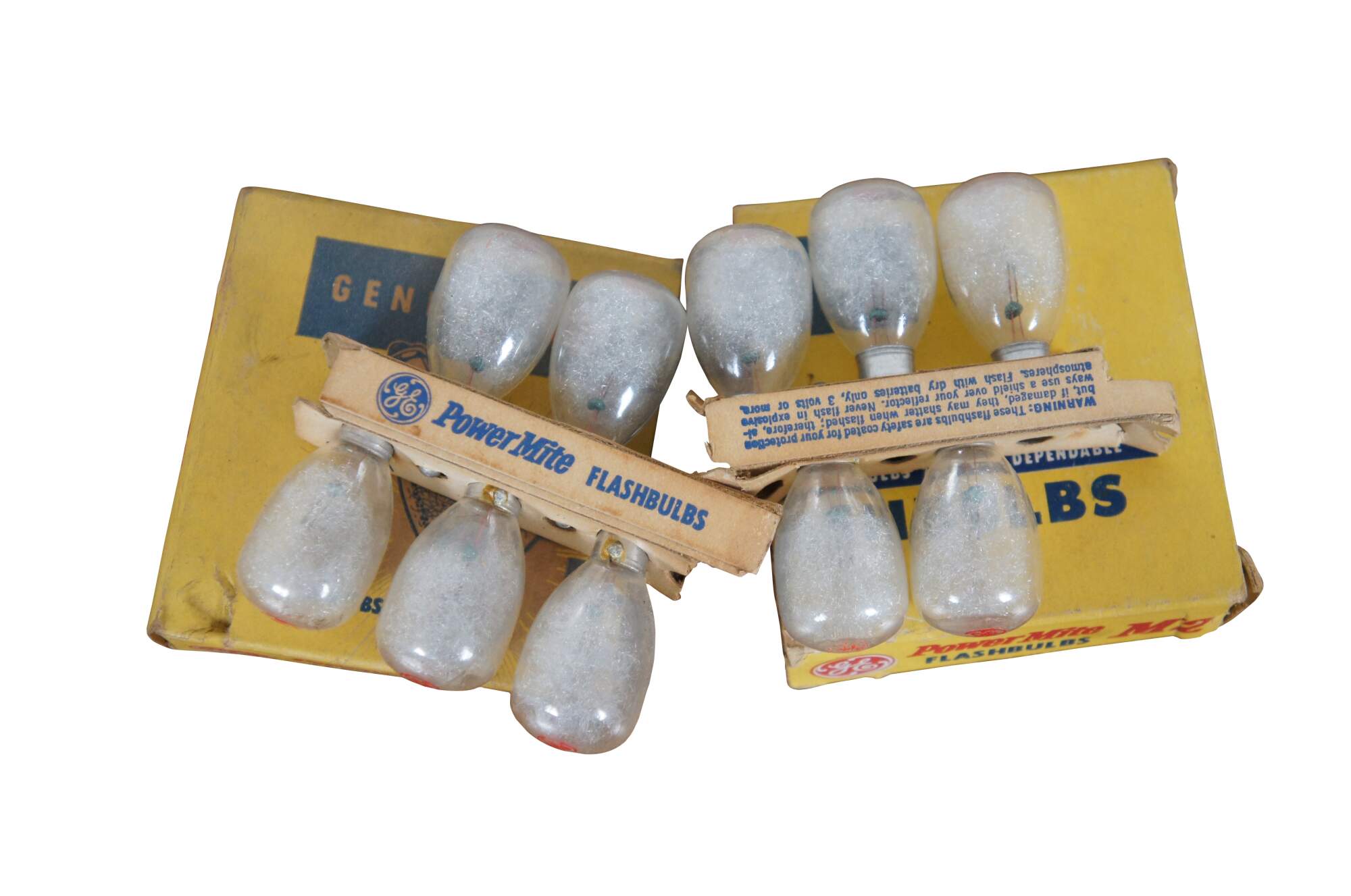 Vintage mid to late 20th century lot of 10 General Electric Power Mite camera flash bulbs, in partial original packaging.