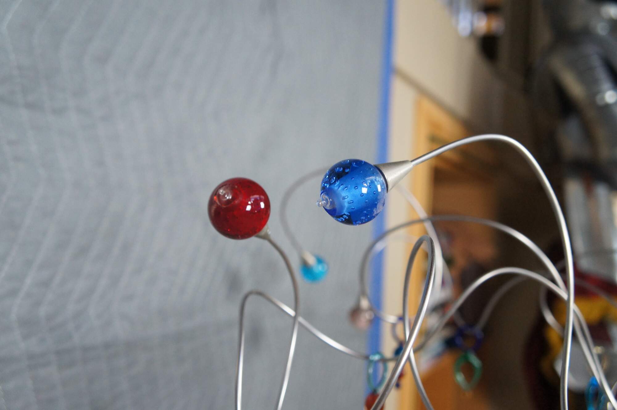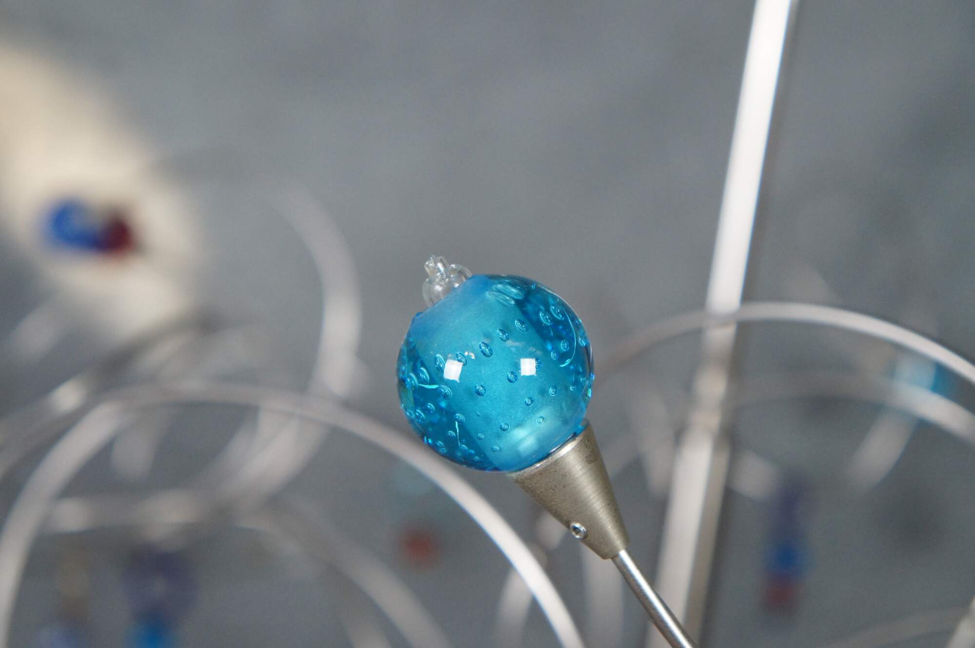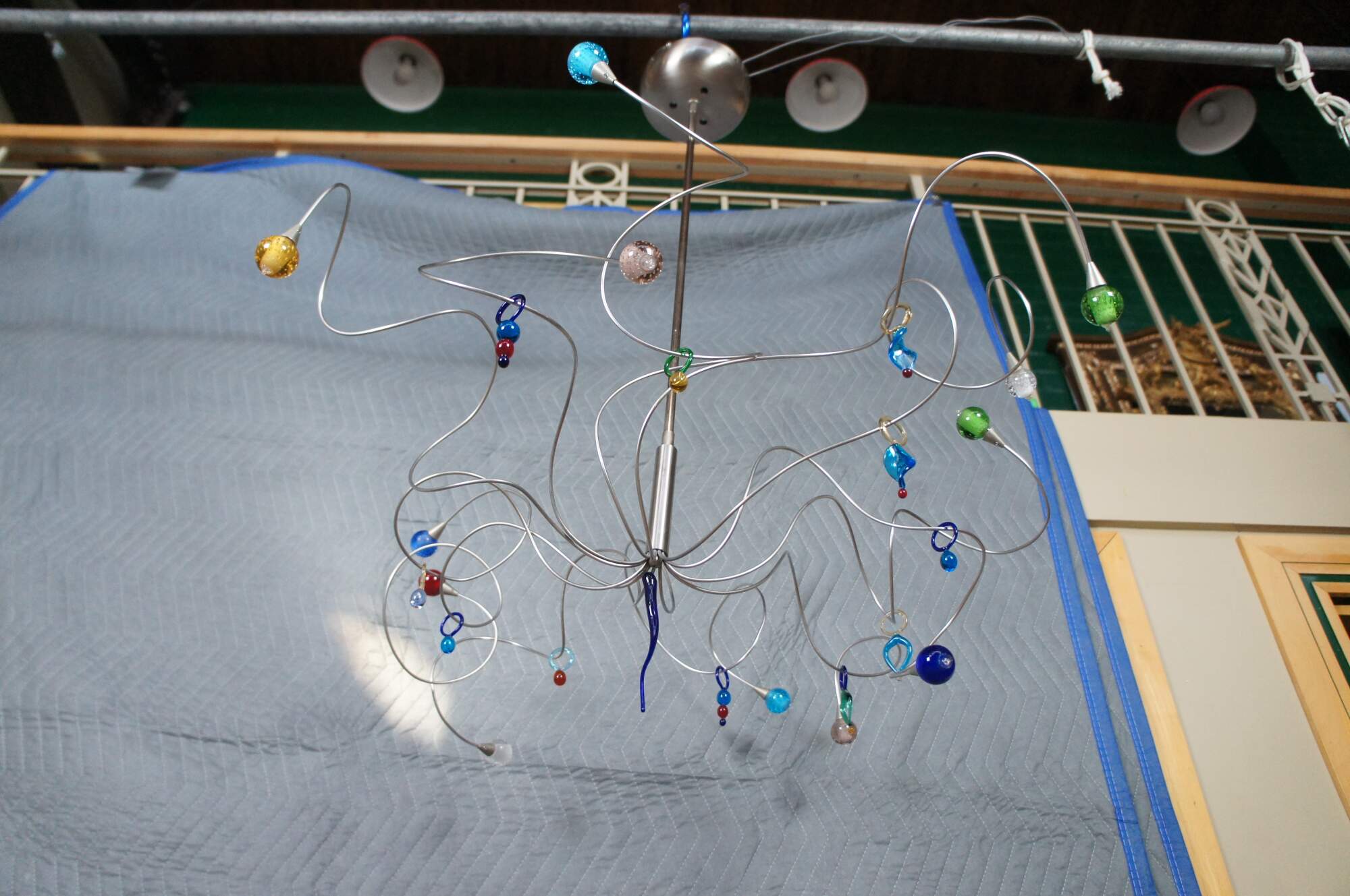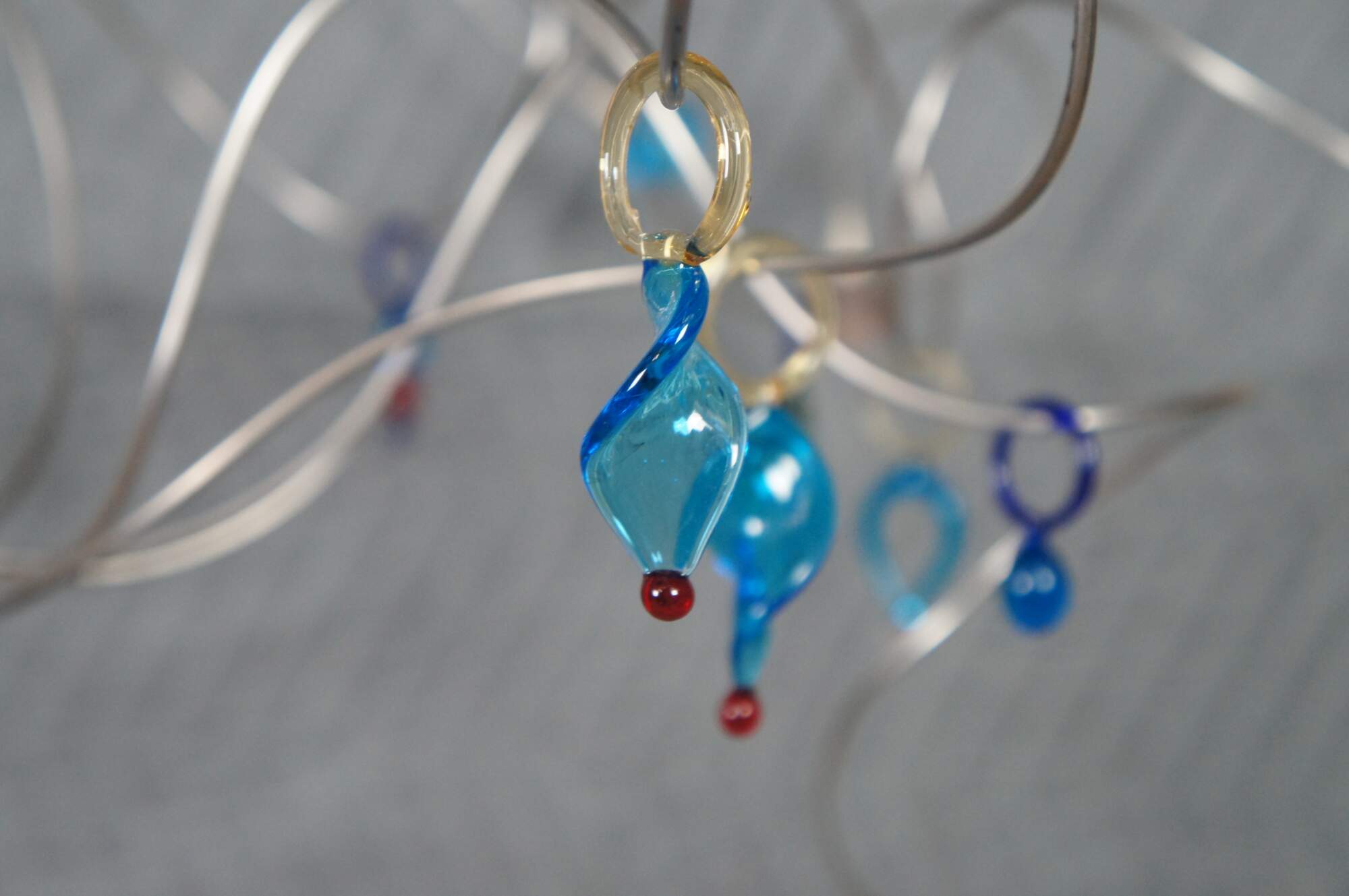 Strawberry suspension features stainless steel bendable arms with glass shades and trinkets in multicolor. Features Murano glass art trinkets.