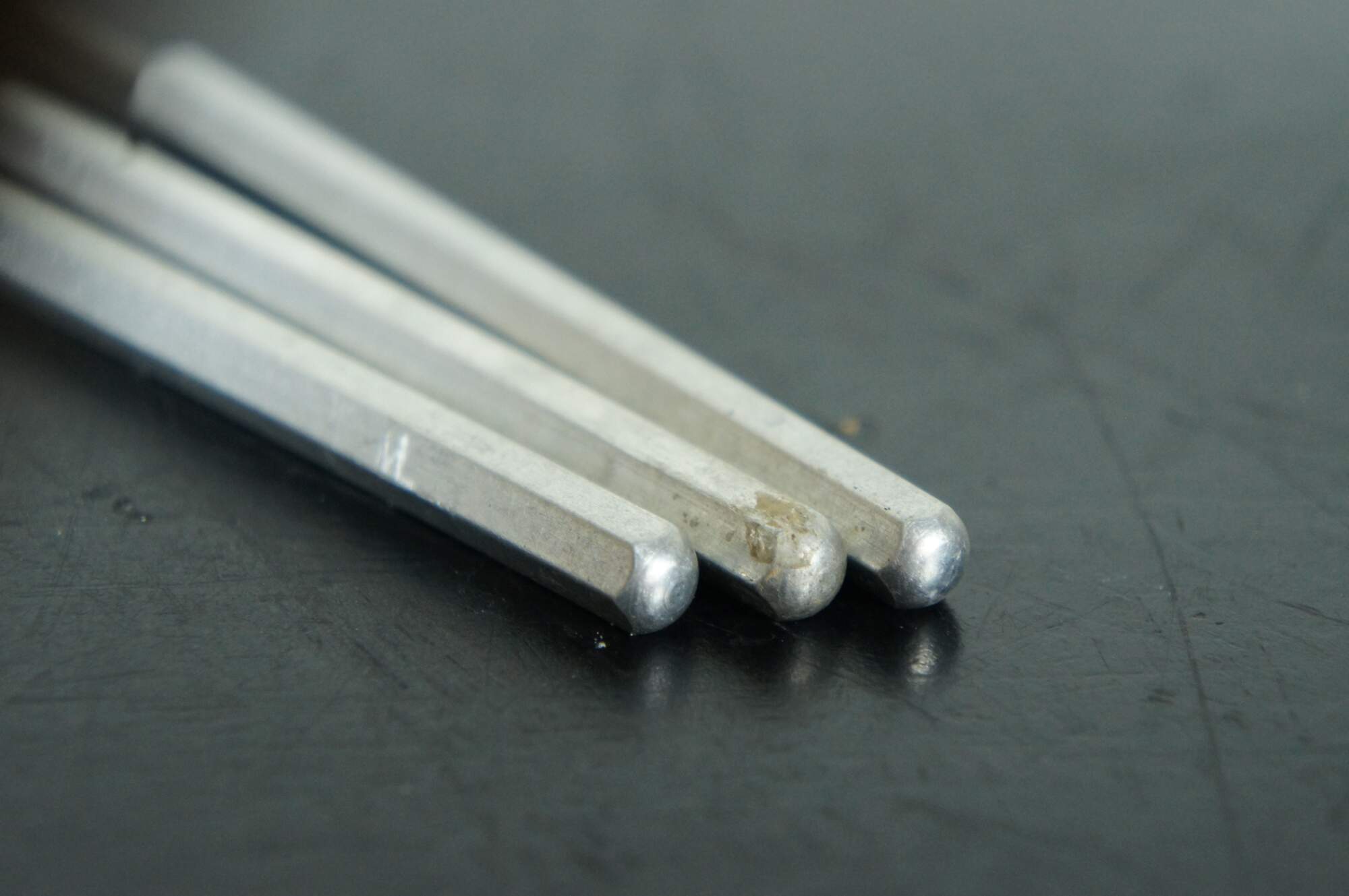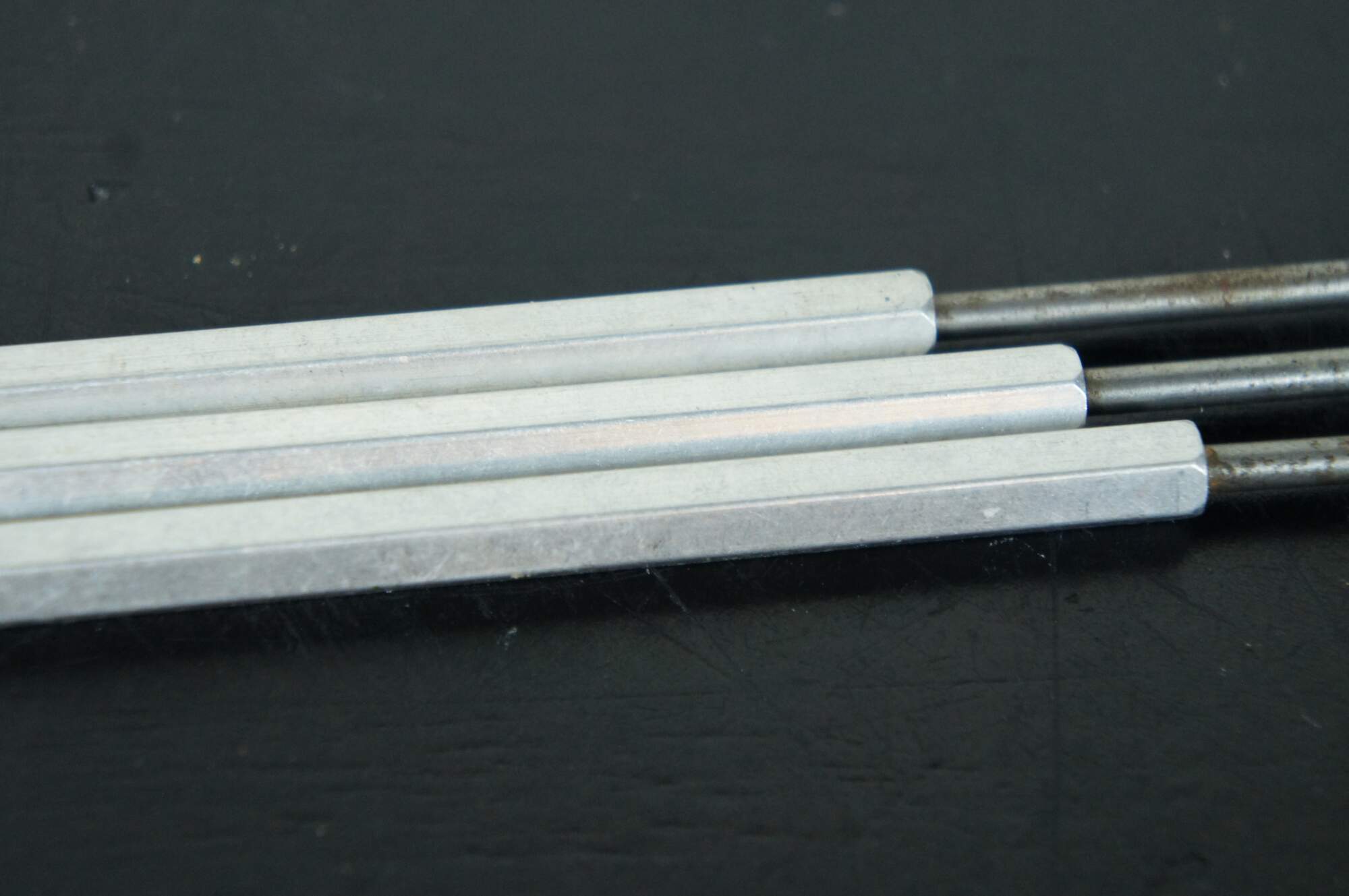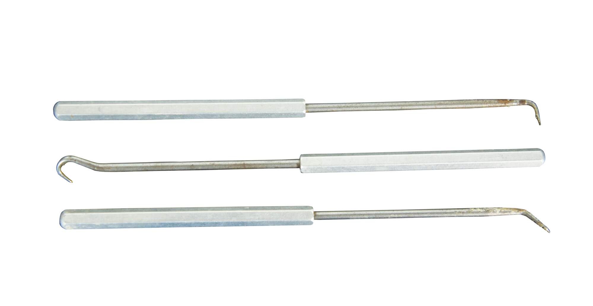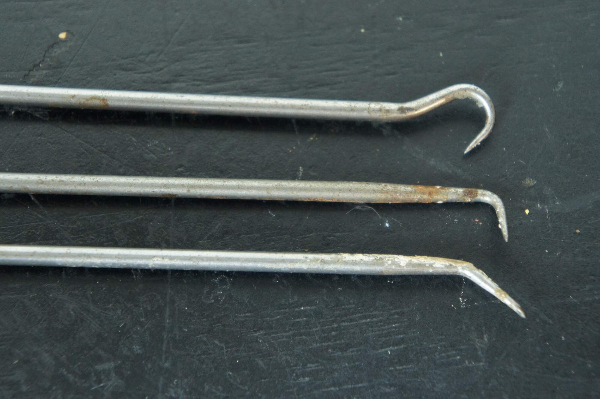 Set of three late 20th century hooks / picks with hexagonal handles.