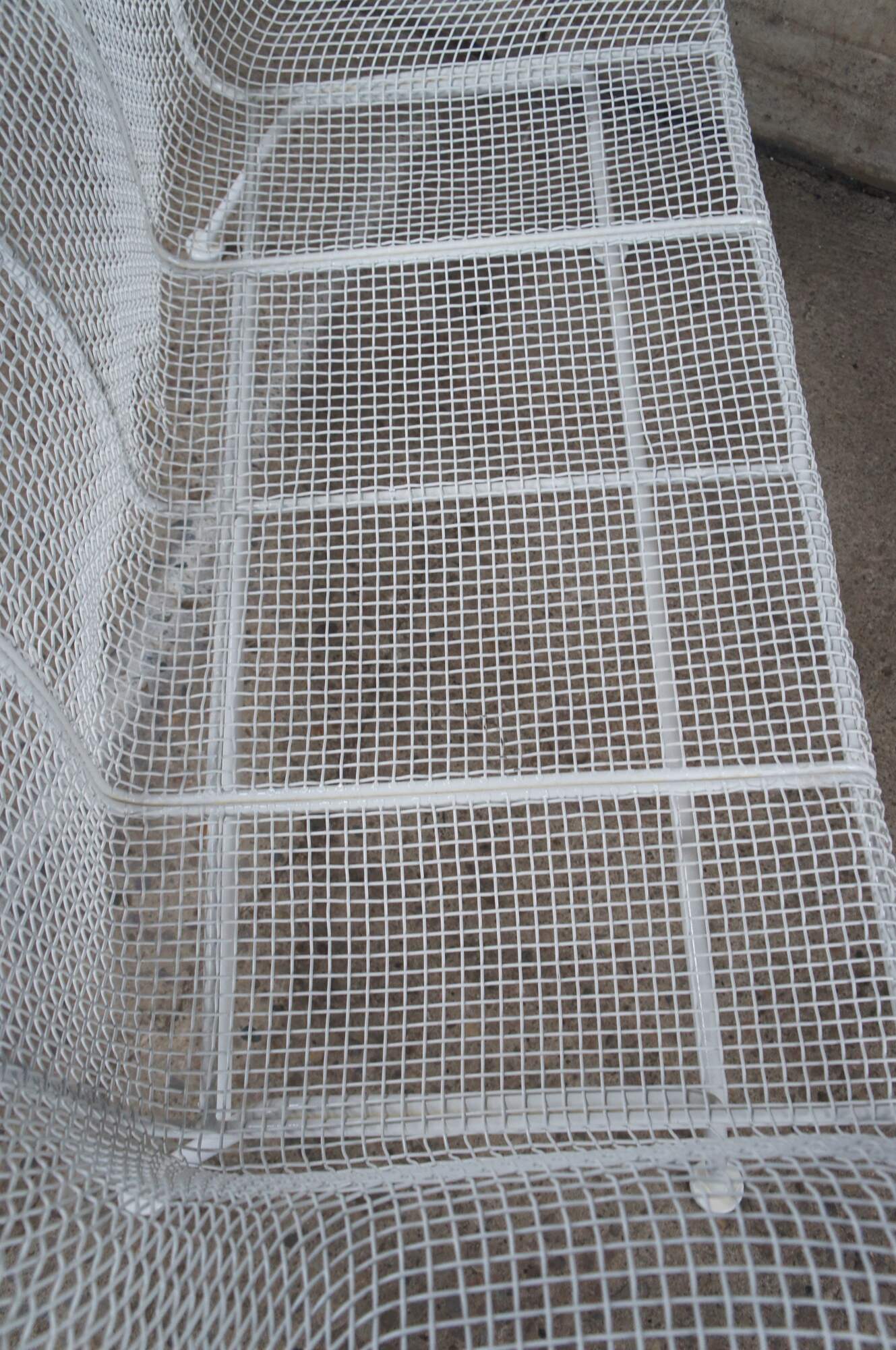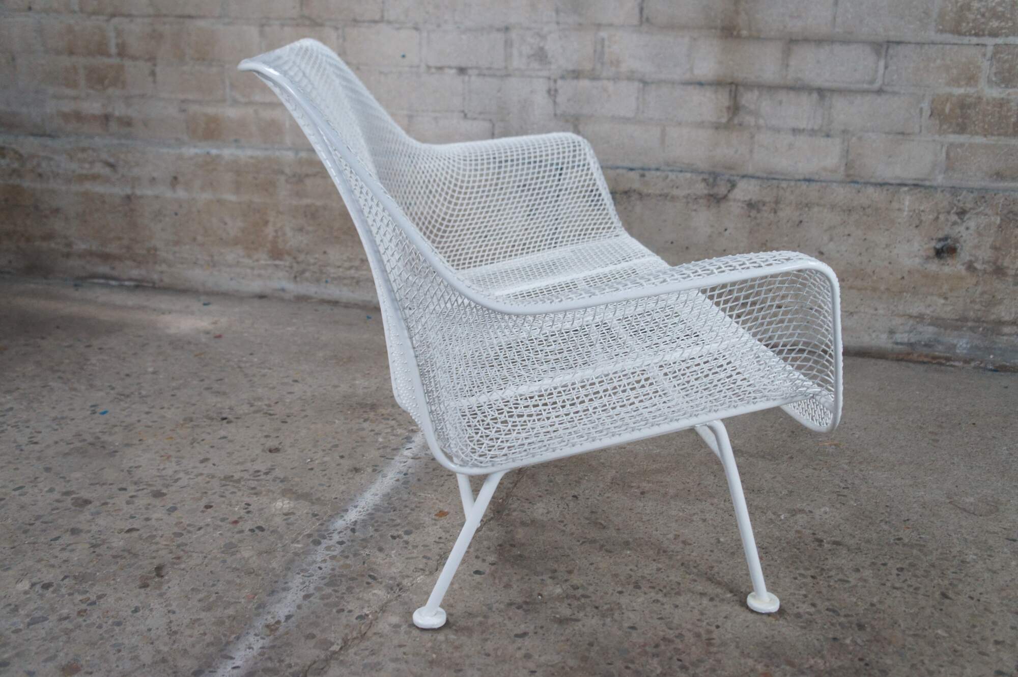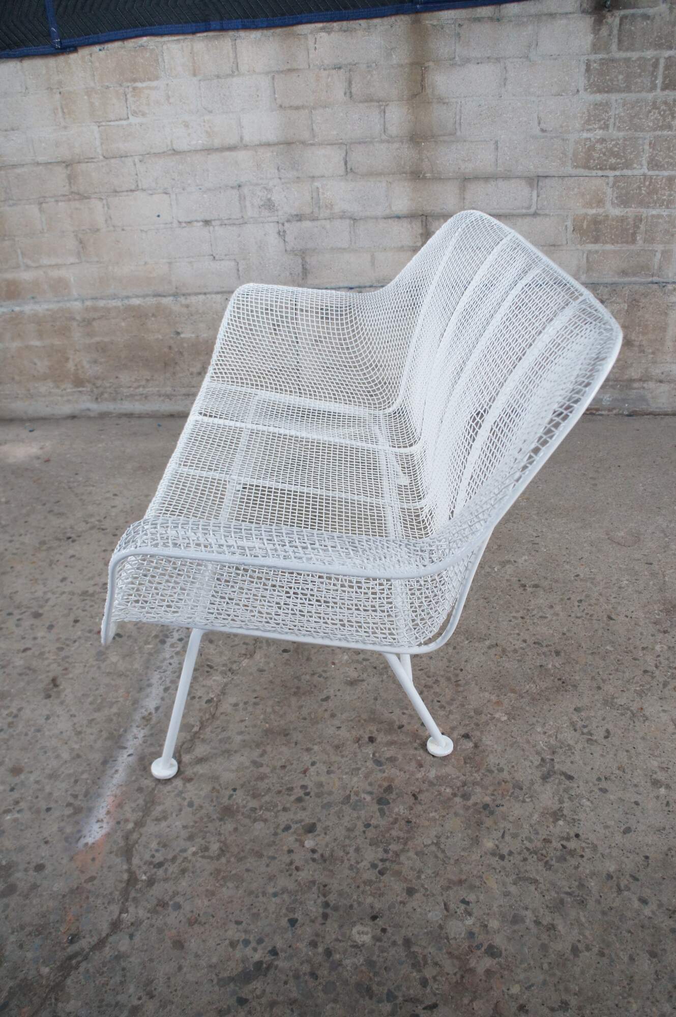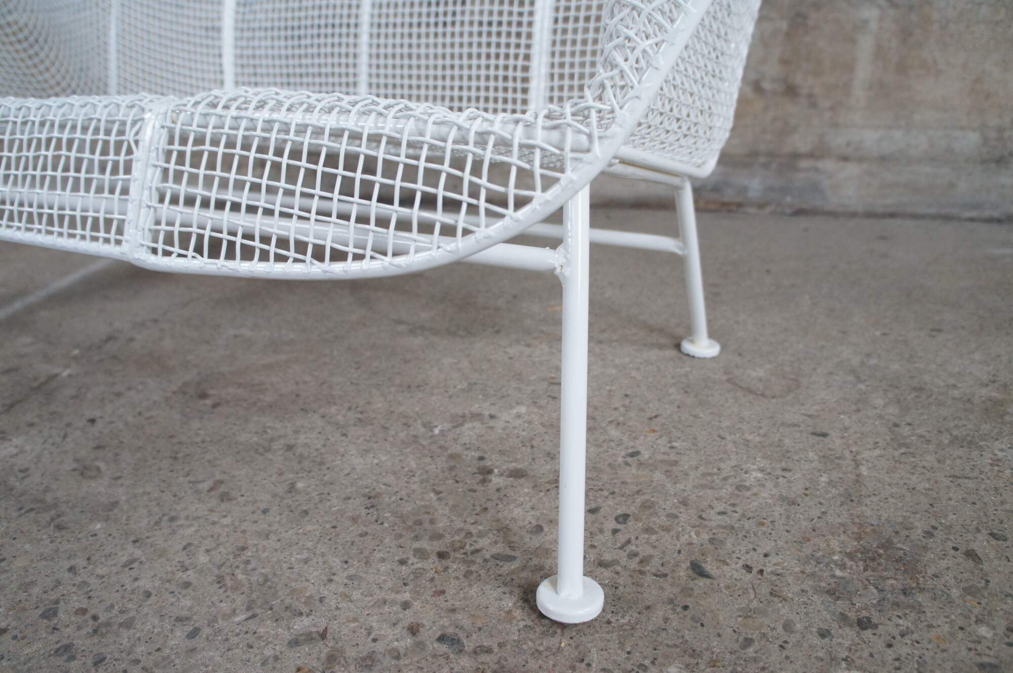 Mid century modern Russell Woodard Sculptura bench / settee / loveseat. Made of wrought iron and mesh featuring a sculptured ergonomic design.