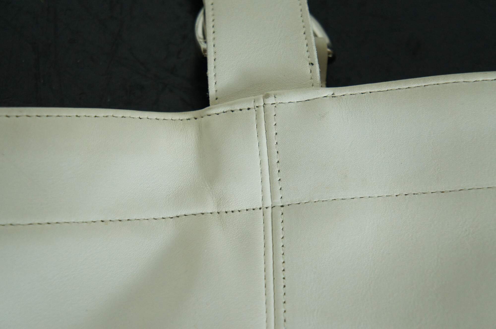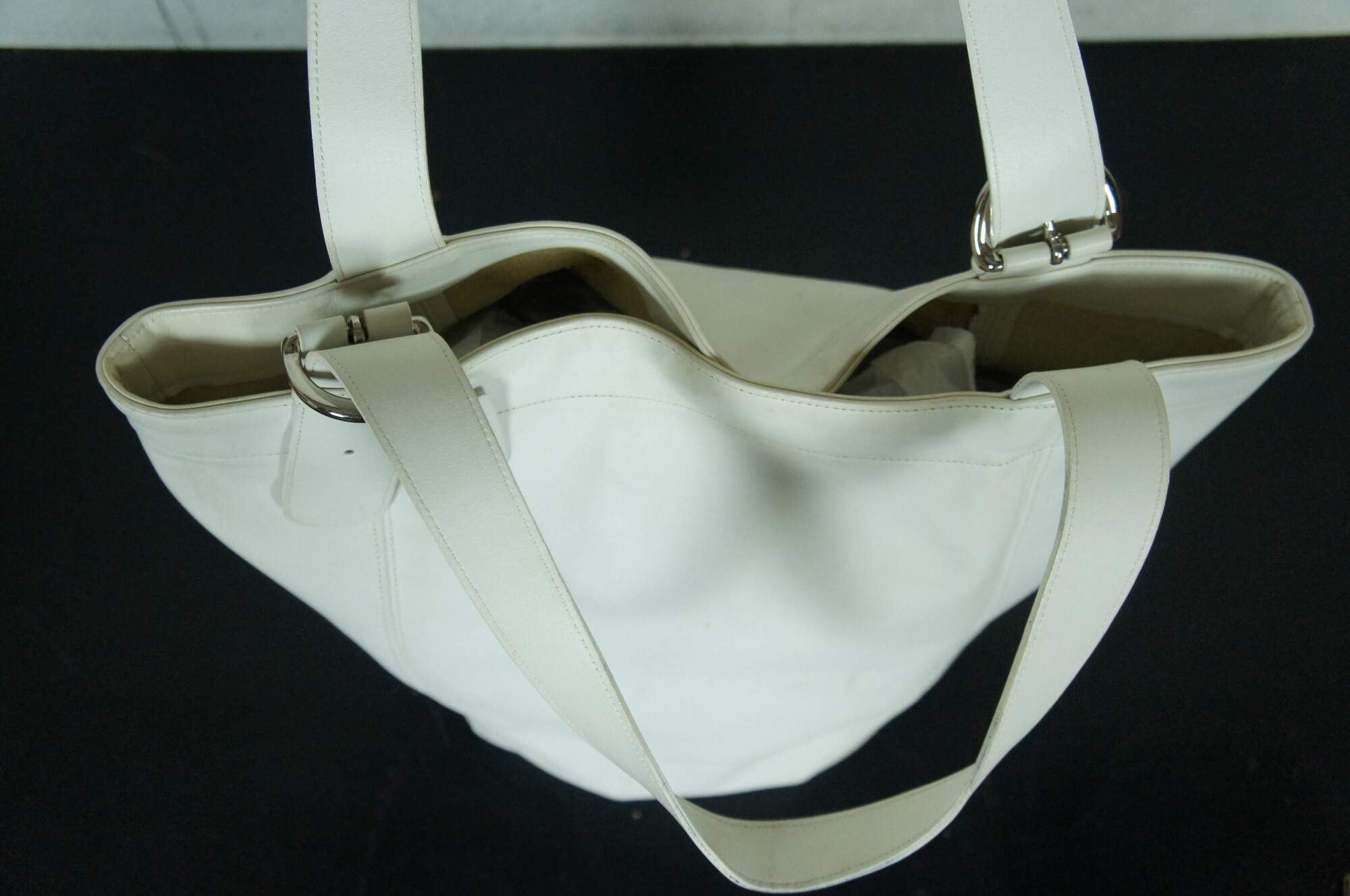 Late 20th century Coach rare white leather Soho duffle / tote bag, No. K6 G-4082. single interior compartment with one zippered pocket. Double buckle strap handles.