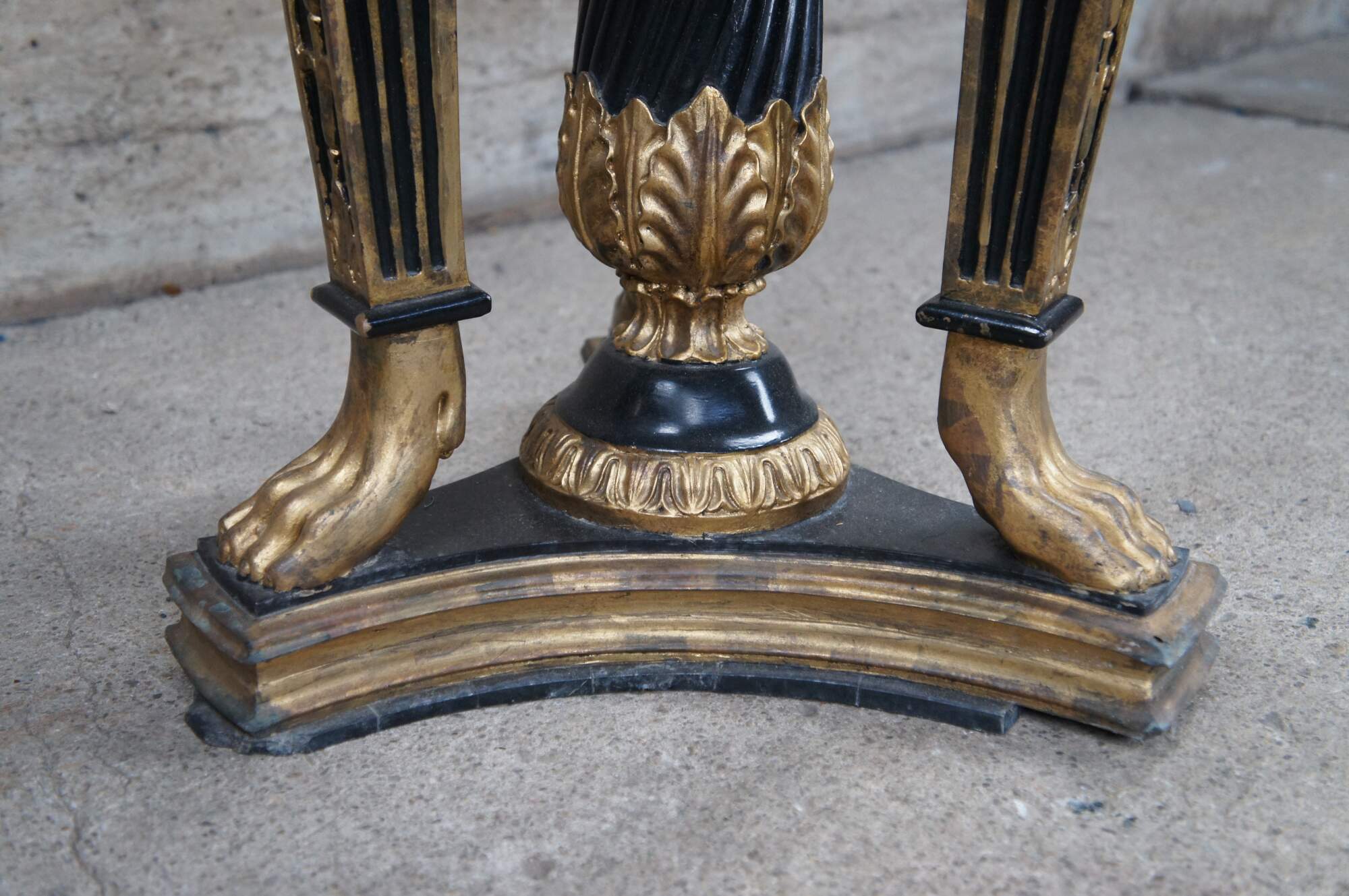 Vintage Neoclassical / Empire style jardiniere / planter / stand with bowl. Made of tessilated stone / marble and composite material featuring gilt lions head accents, twisted pedestal with acanthus design, tripod fluted columns and paw / claw feet.
