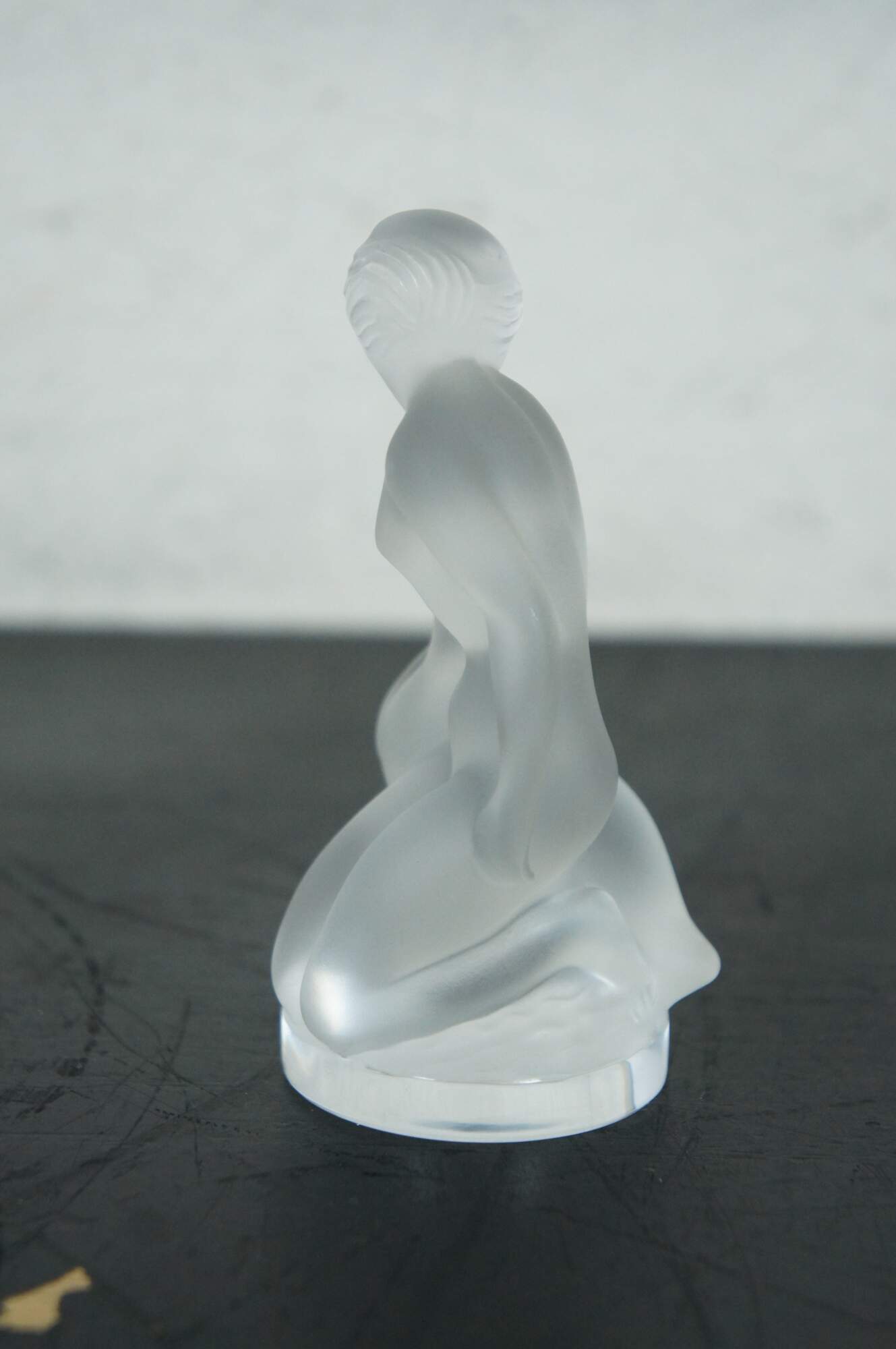 Late 20th century Lalique French frosted crystal figurine depicting the ancient Greek myth of Leda and the Swan. Signed on base.