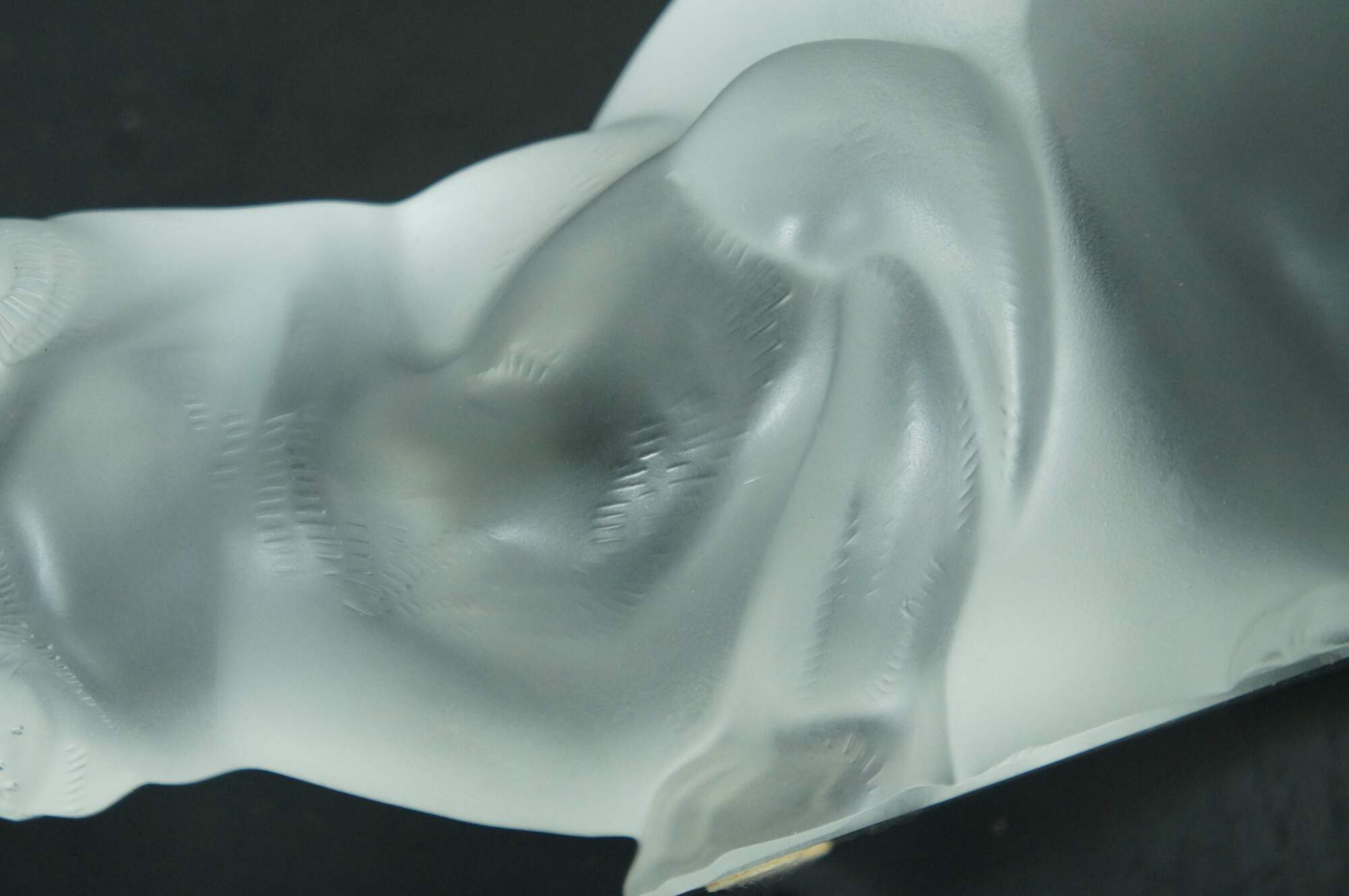 Late 20th century Lalique France frosted crystal figurine of chat crouche, a crouching cat. Signed on base.