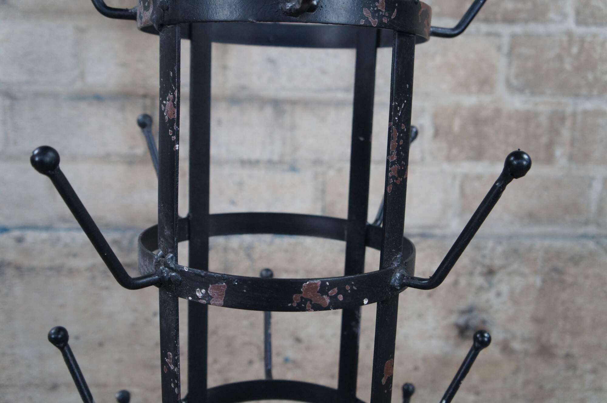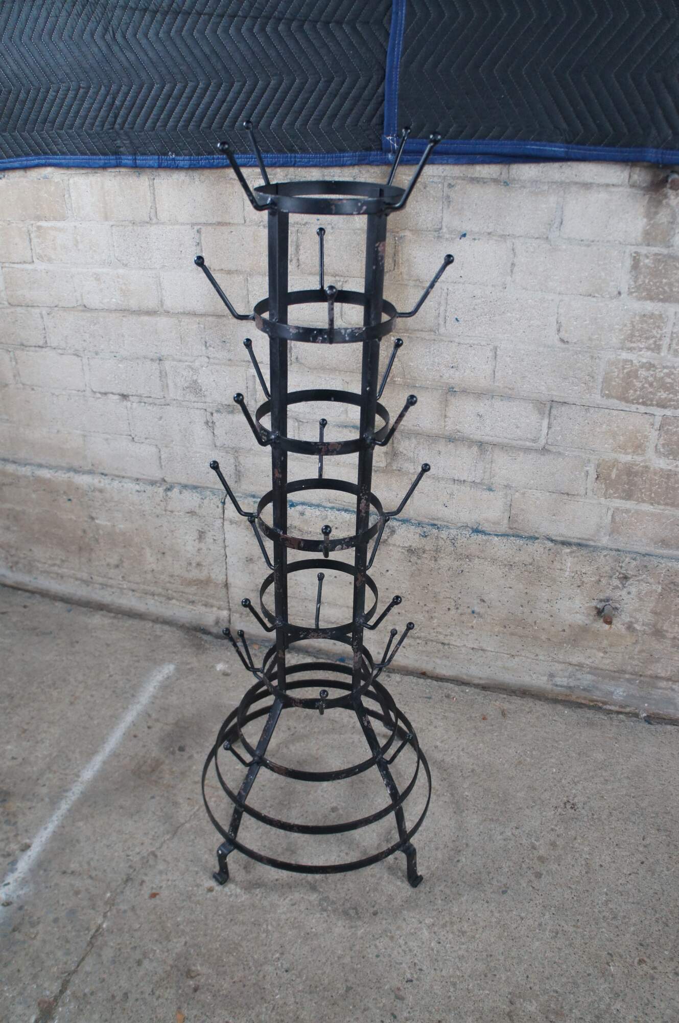 Mid century French Herisson industrial reclaimed bottle / mug drying rack. Made of iron featuring 28 prongs or hooks for hanging. These were also called a "IF" or a "Hedgehog", but are more commonly used now for coats / hats / umbrellas ect. You can still find these today being used in cafes and farmhouses for drying empty, washed bottles.