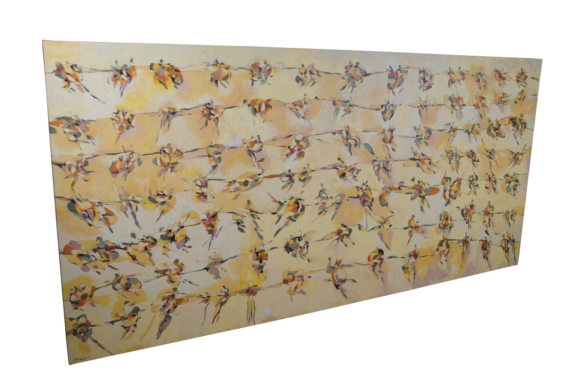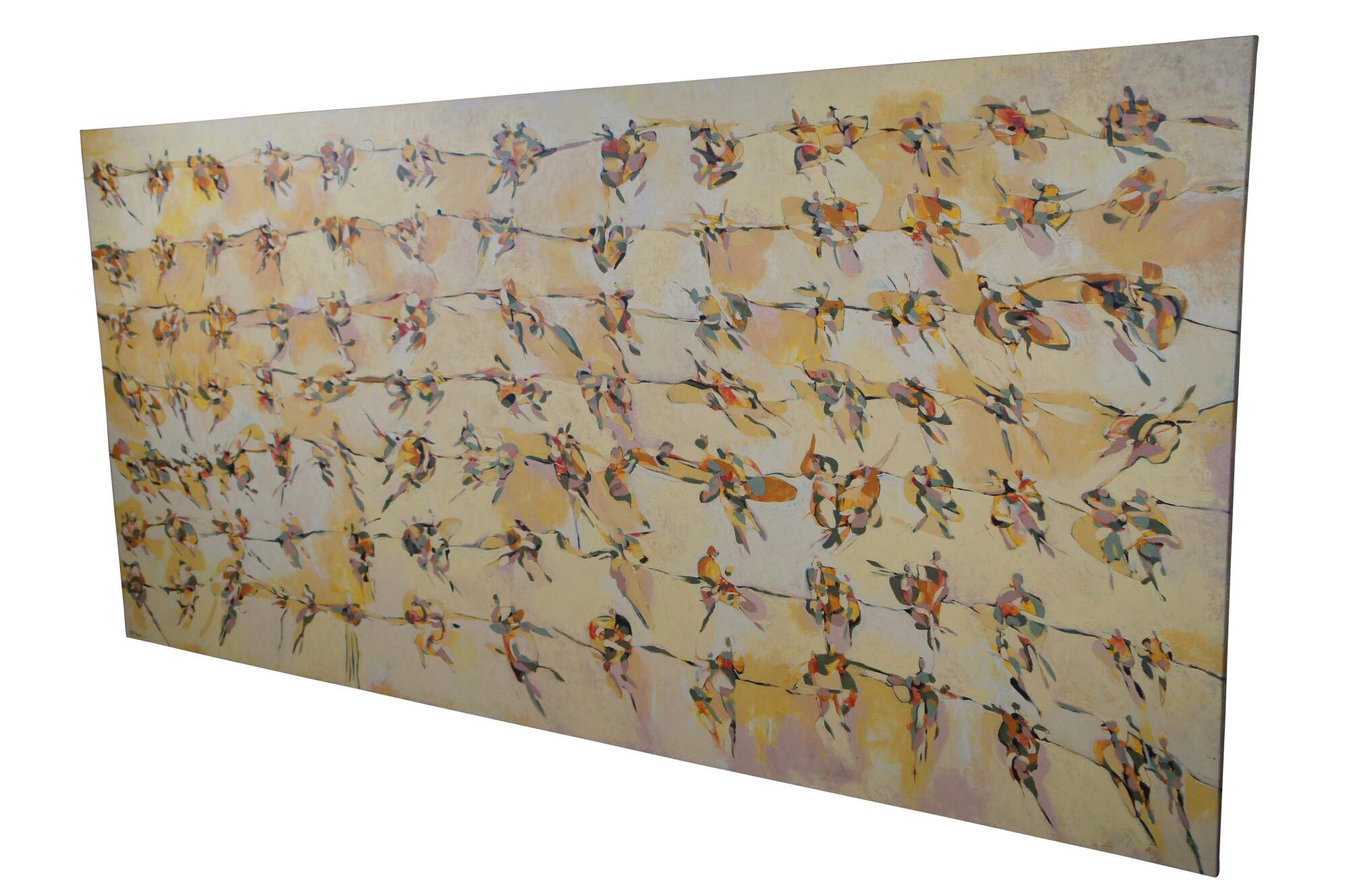 Lost Pairs" by Robert Wright, signed lower left, Acrylic on Canvas. Features Russian Figure Skaters with each grouping ishowing a moment in time.