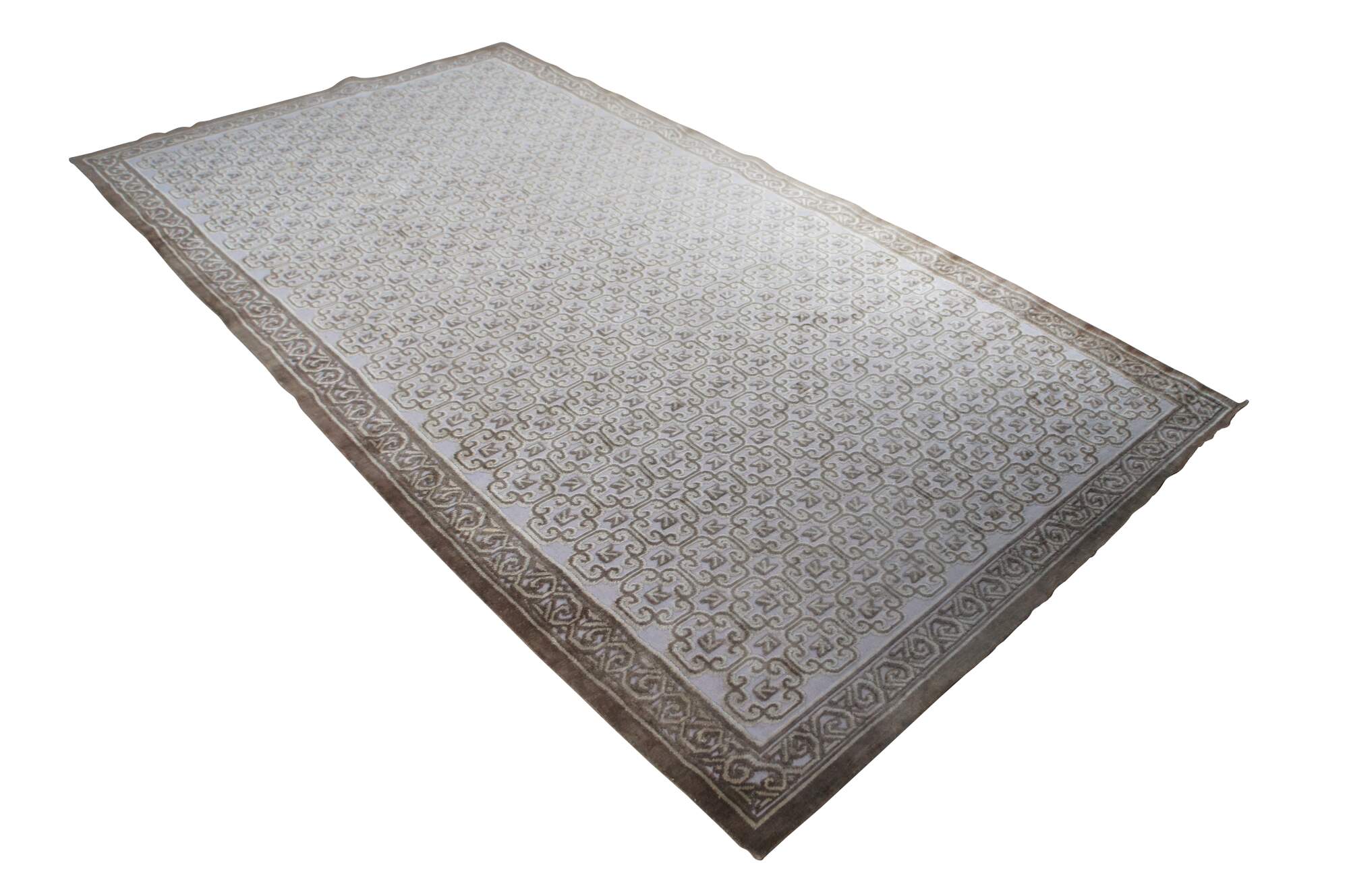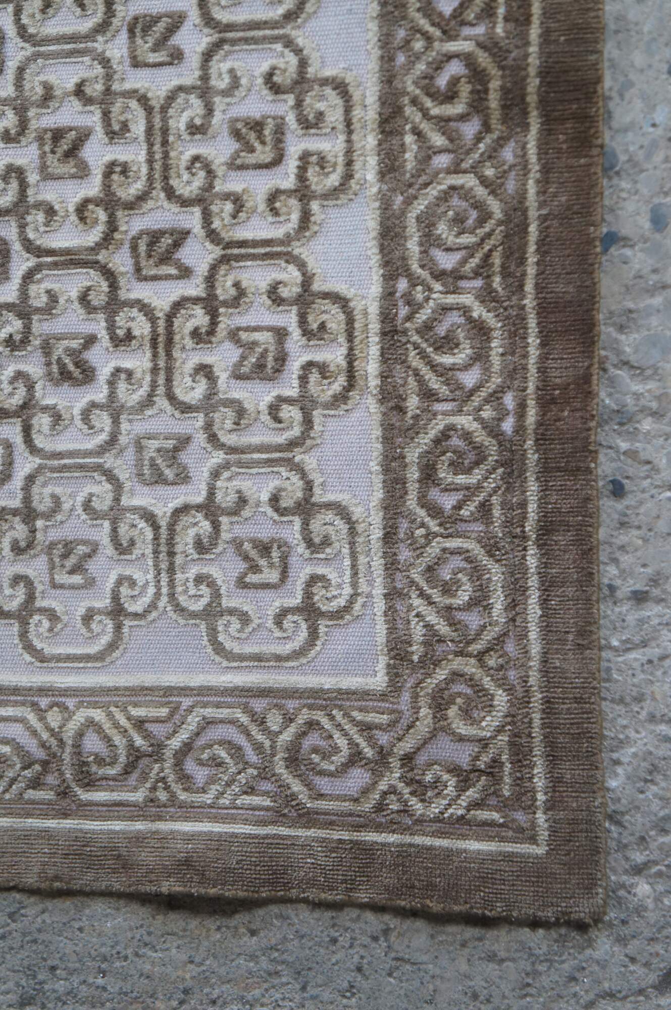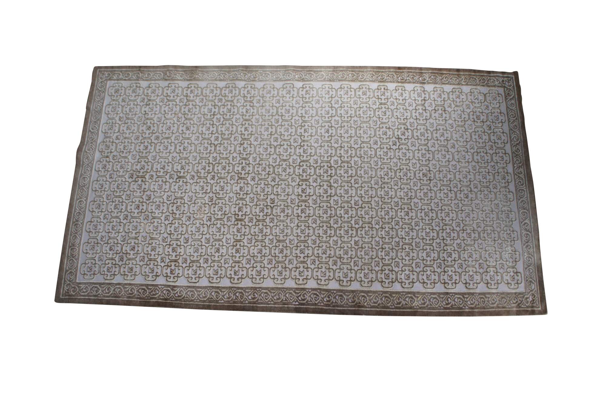 Vintage JD Staron luxury broadloom Tibetan / Moroccan style area rug, mat or carpet featuring a modern geometric repeating pattern.