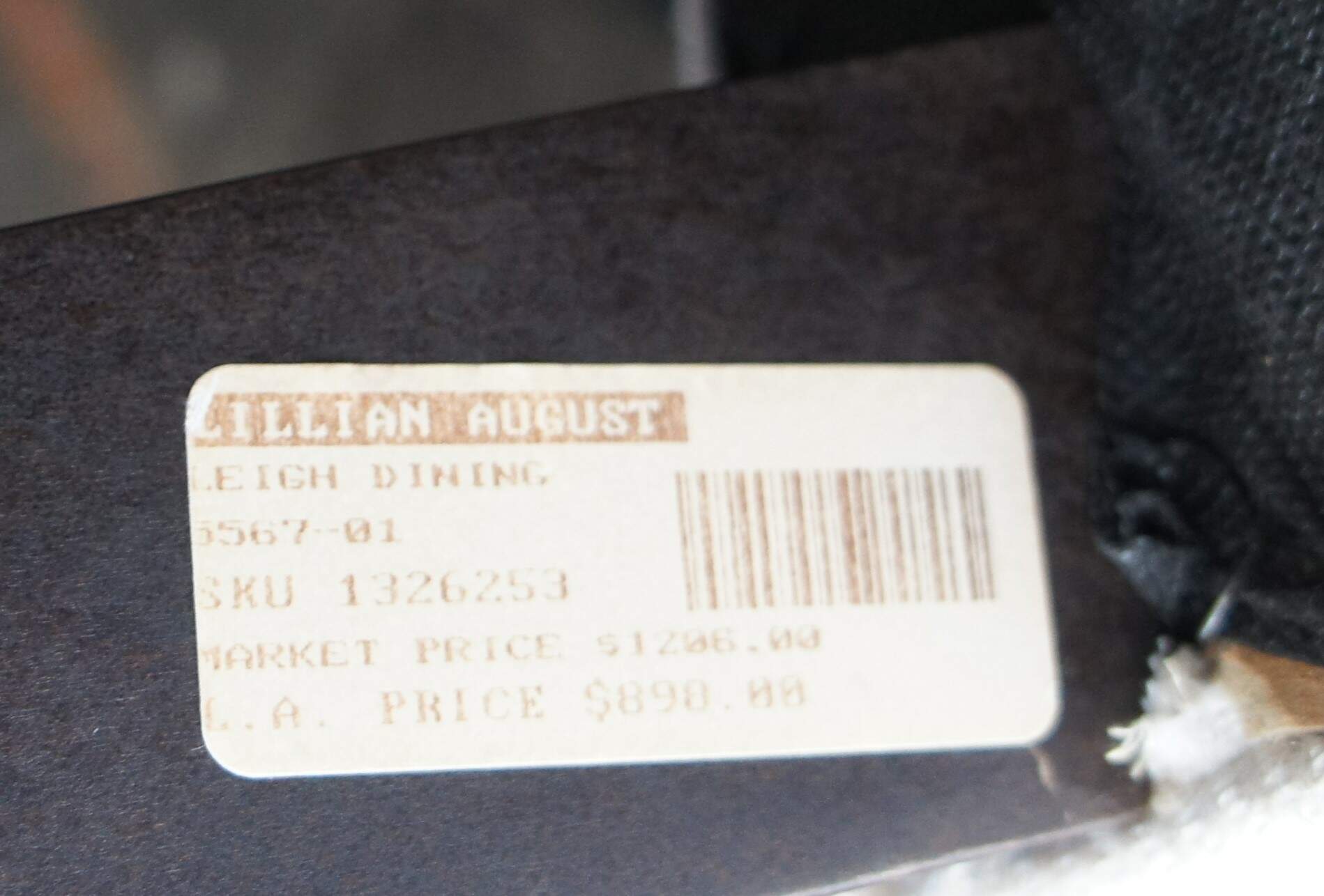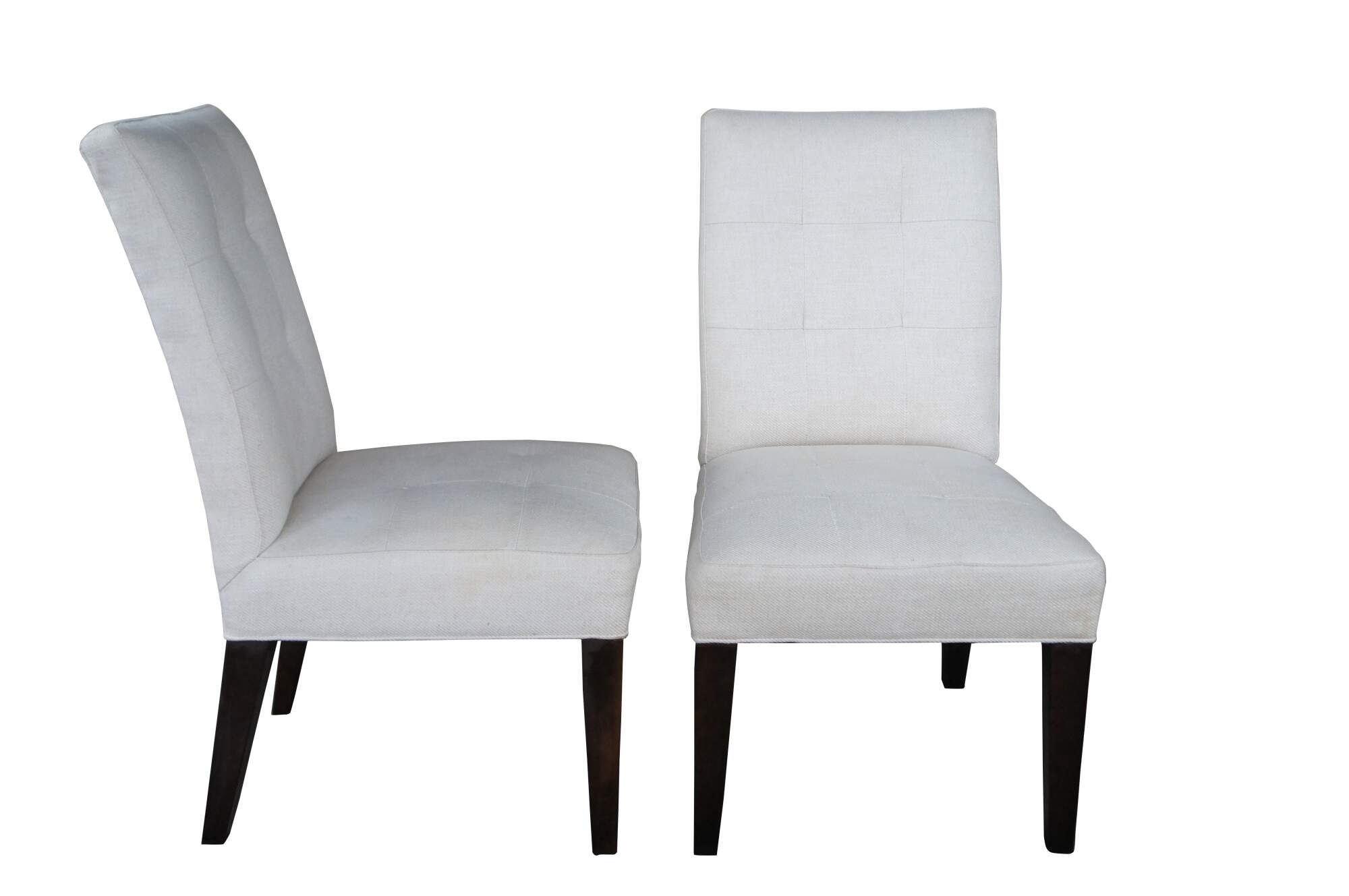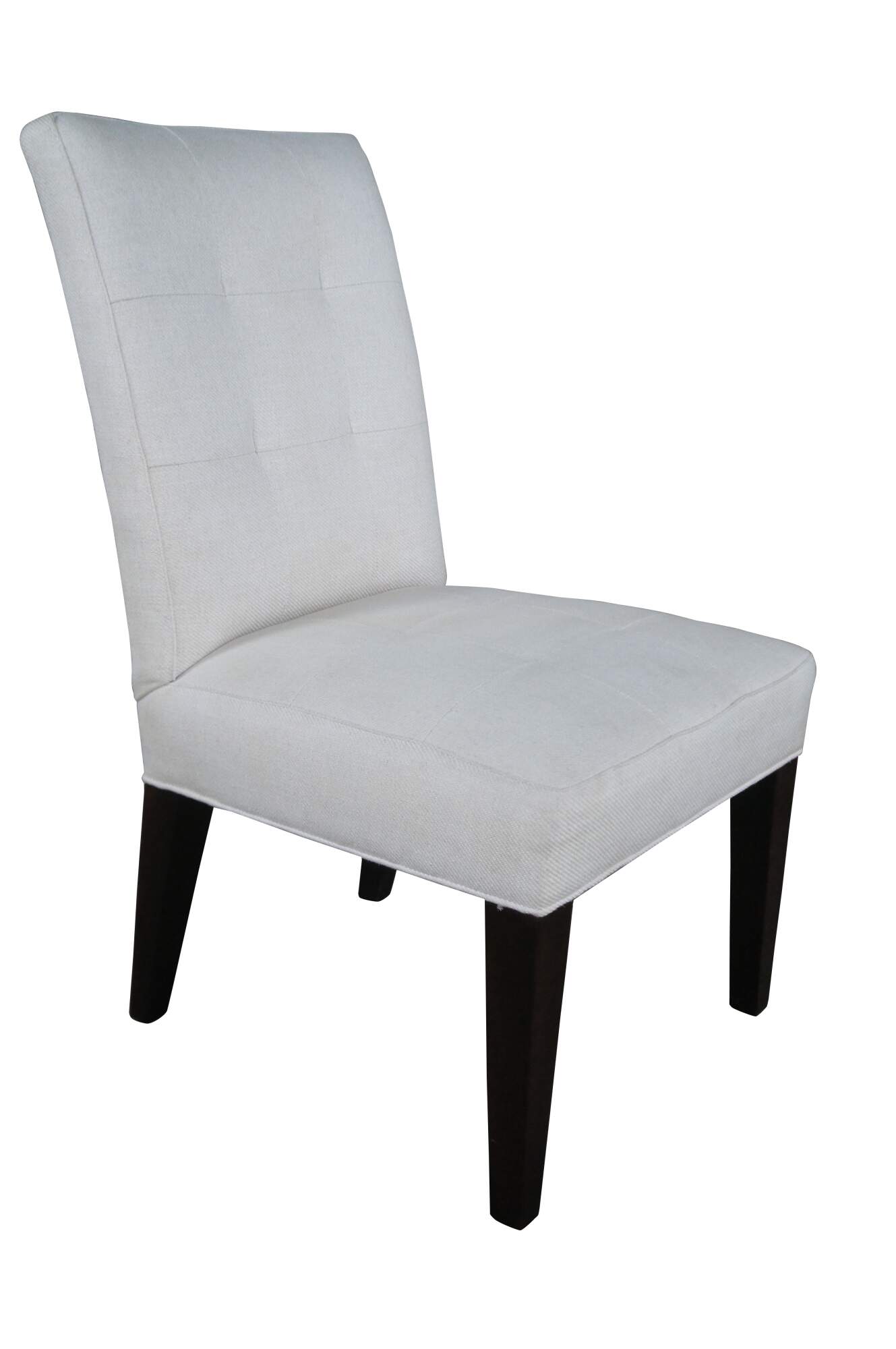 Five vintage Lillian August Couture Leigh dining side chairs featuring a modern design with tufted back and tapered legs. The Leigh chair #6567 MSRP $898 each, similar to the Lyle side chair.