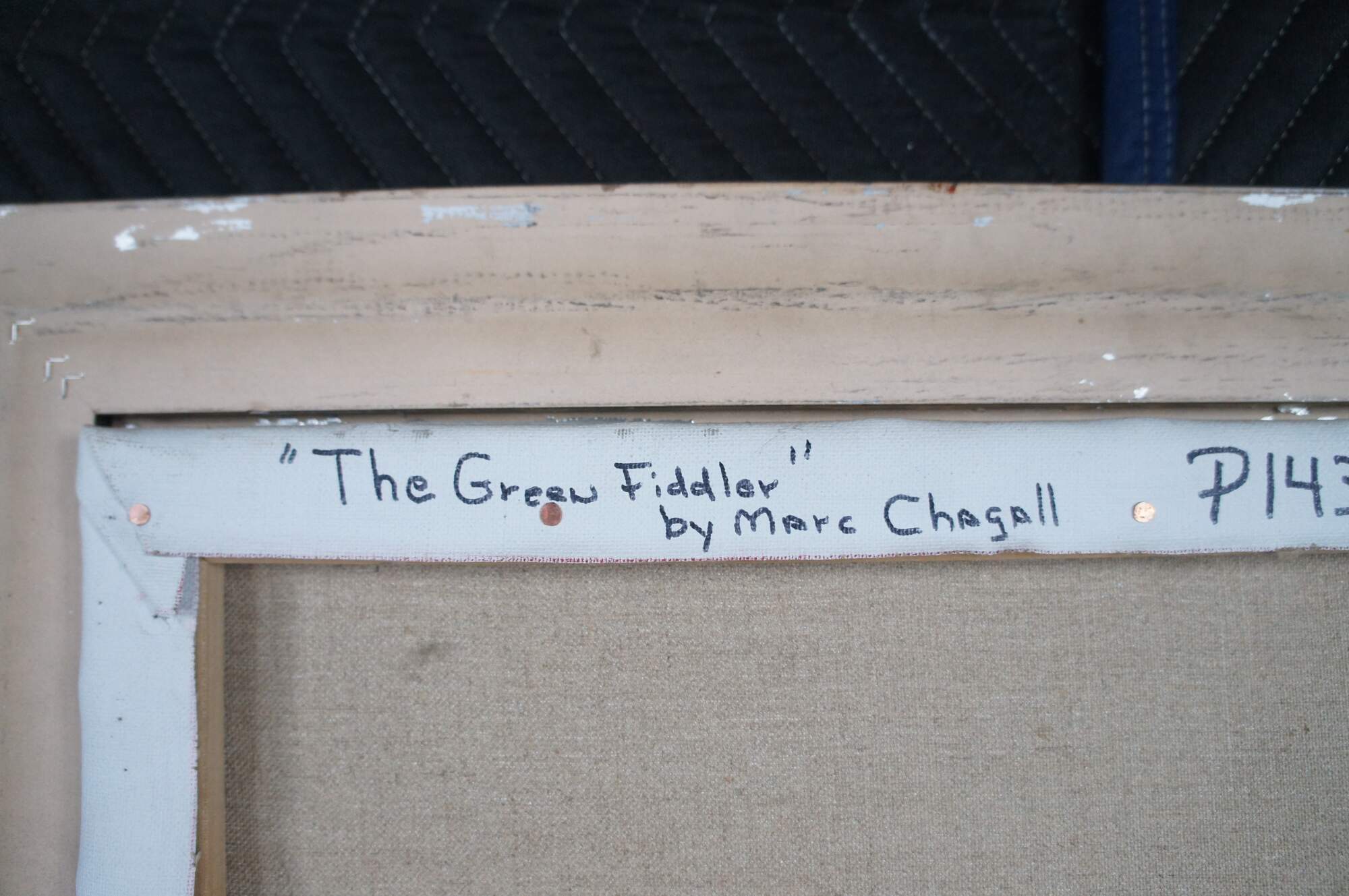 An exquiste reproduction after Marc Chagall's, Green Violinist. Aptly Titled "The Green Fiddler", circa last quarter 20th Century. The painting is about 3/4 the size of the original andexecuted with remarkable similarities. Beautifully colored and detailed. The canvas is unsigned.