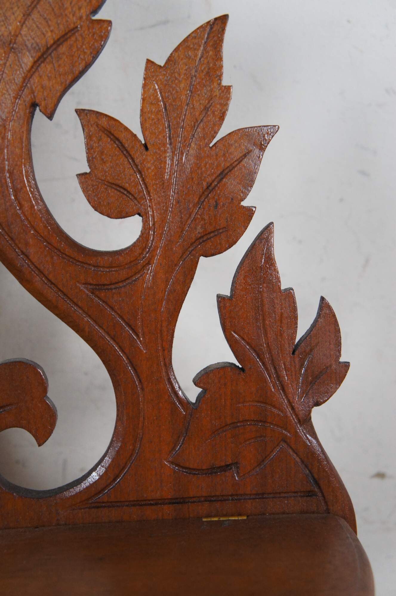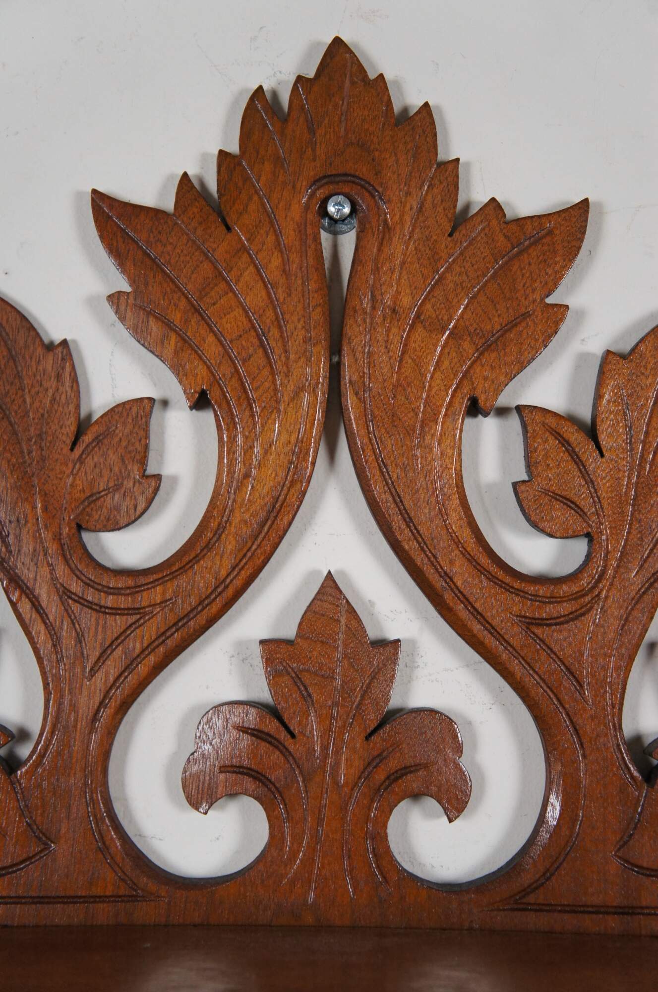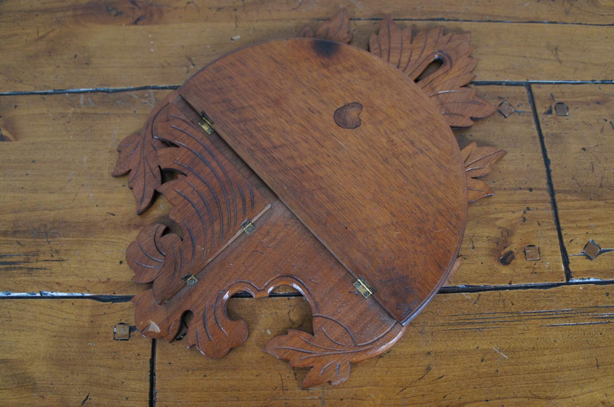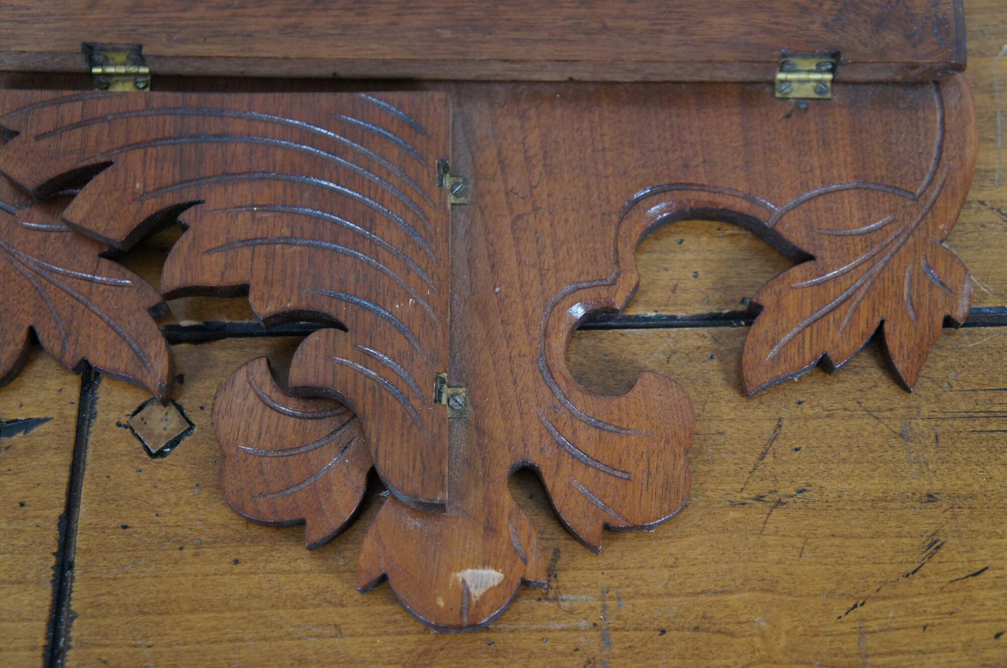 Early 20th century Victorian / Eastlake style wooden wall shelf carved with swirling leaves. Demilune shelf folds down. Impressed 173 on back.
