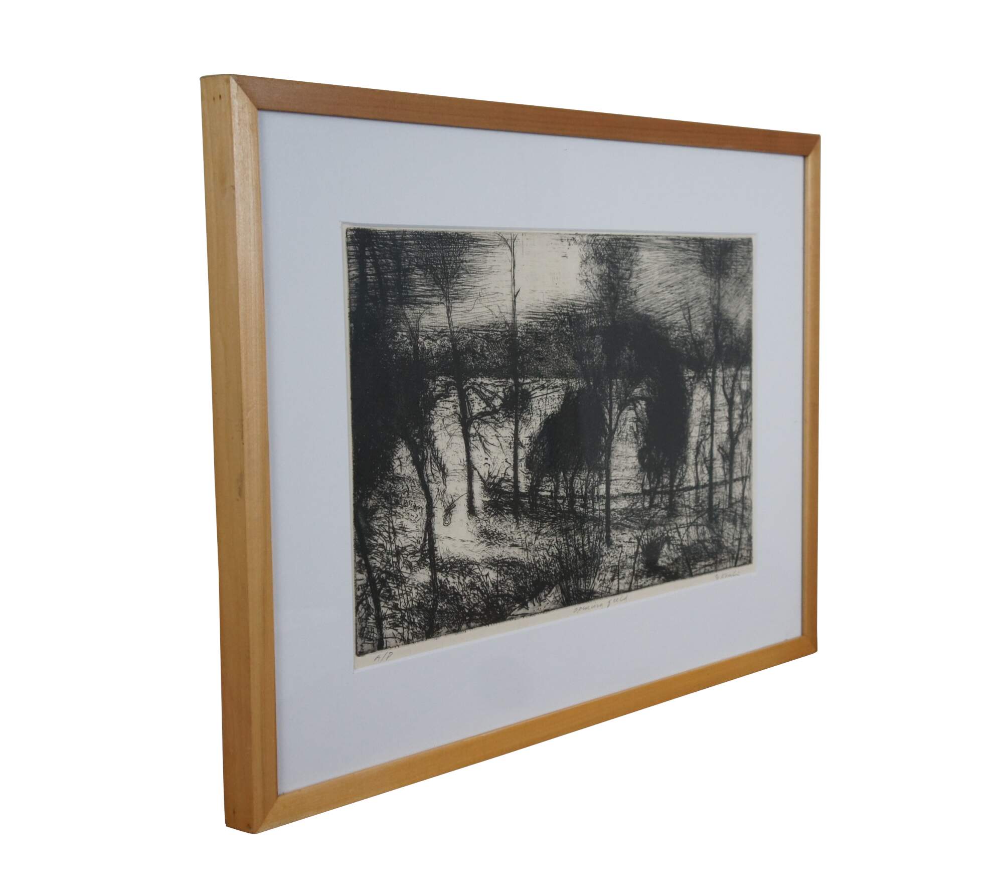 Late 20th century artist's proof intaglio print by Ernest Koerlin titled "Opening Field." Pencil signed and titled along bottom edge. Plain wood frame; white mat.