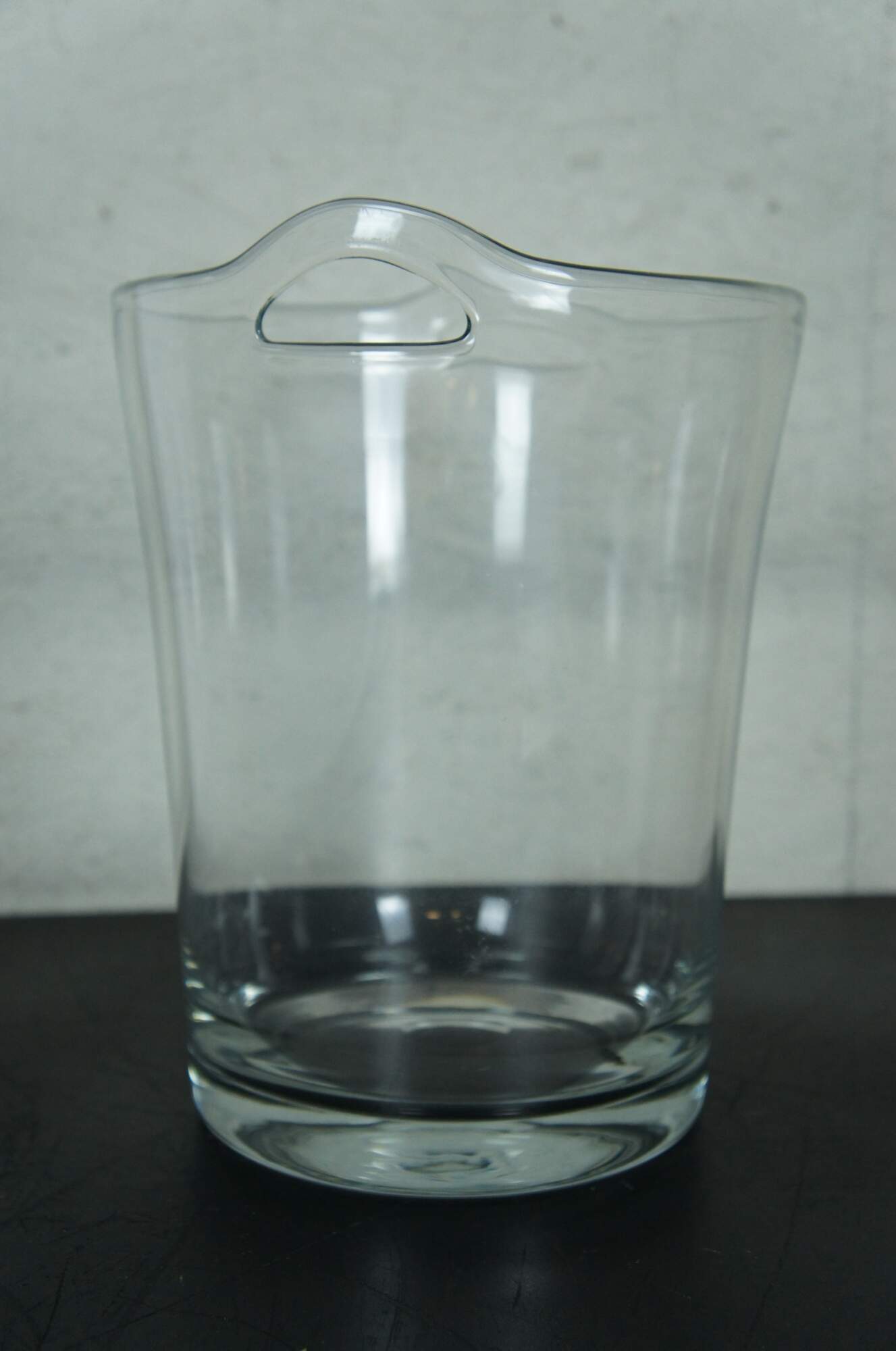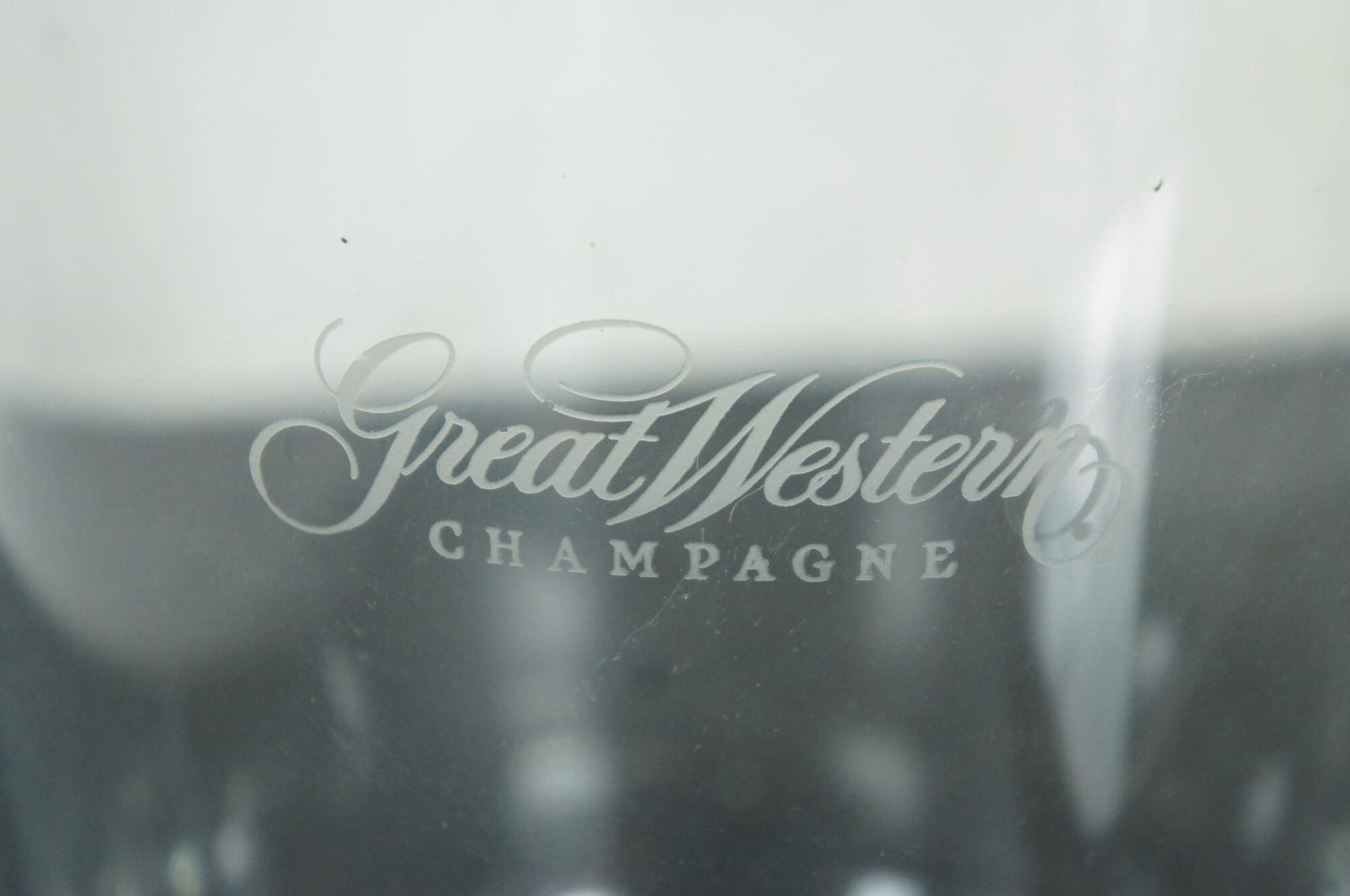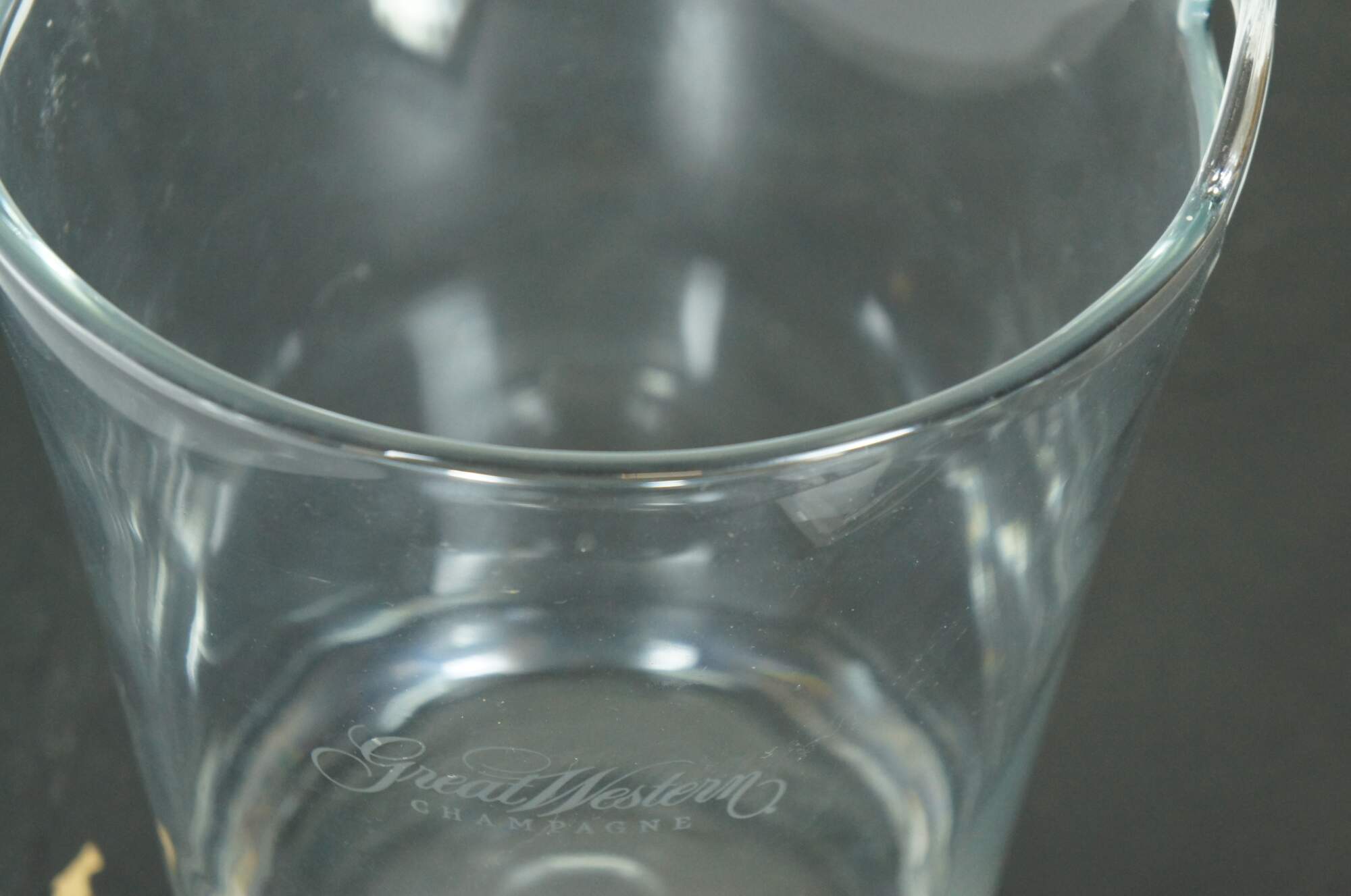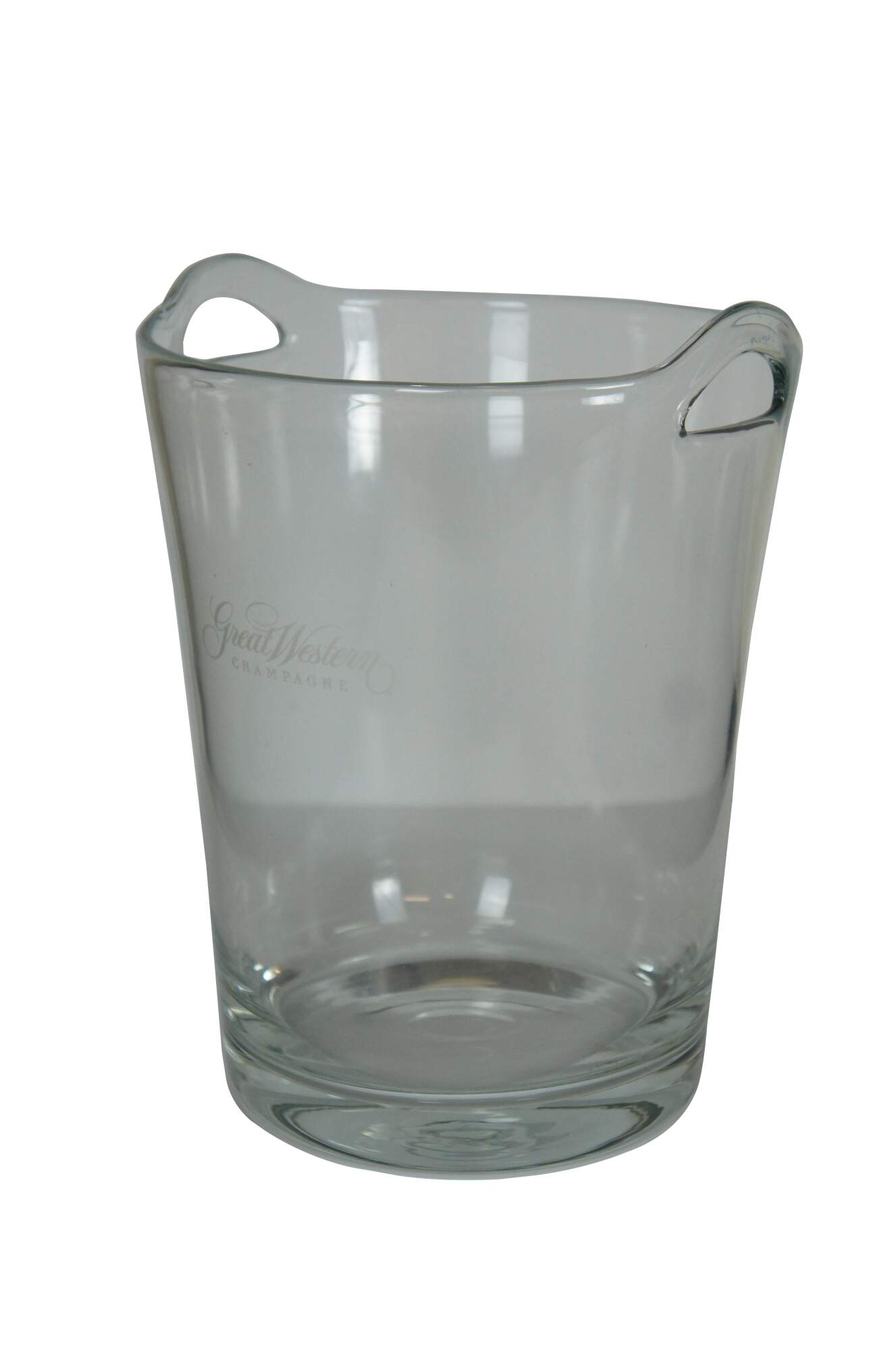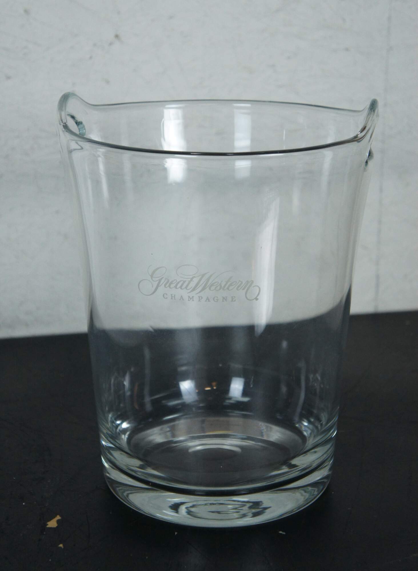 Late 20th century hand blown glass ice bucket / champagne chiller. Traditional bucket shape with two cut our handles, frosted with "Great Western Champagne." Attributed to Toscany Krosno Poland.