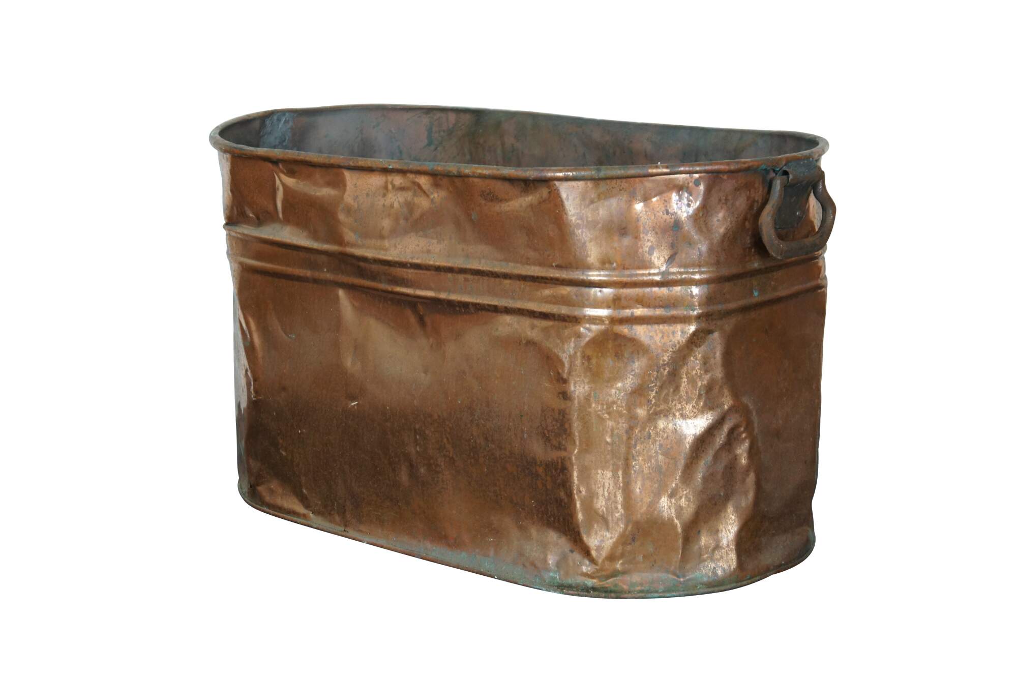 Early 20th century galvaized copper country or farmhouse wash tub / boiler - oval form with rotating iron handles.