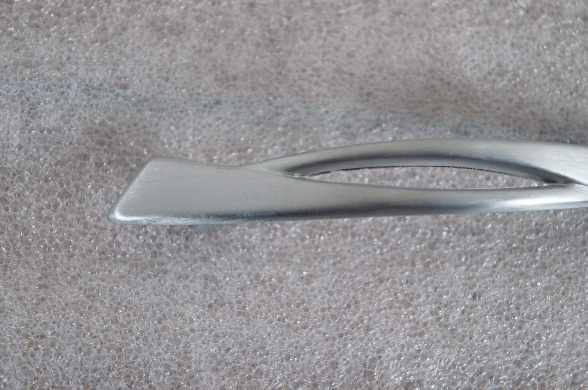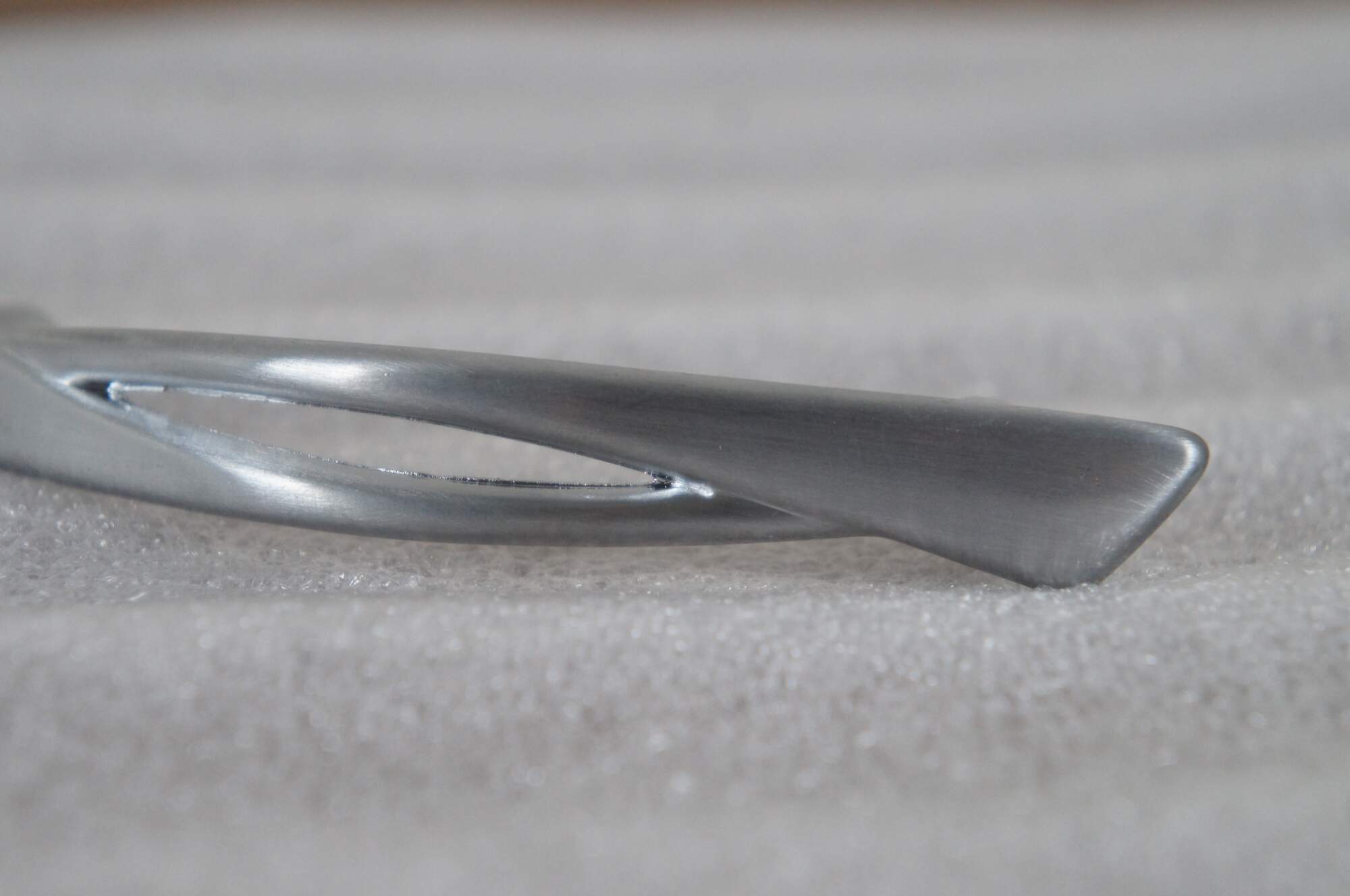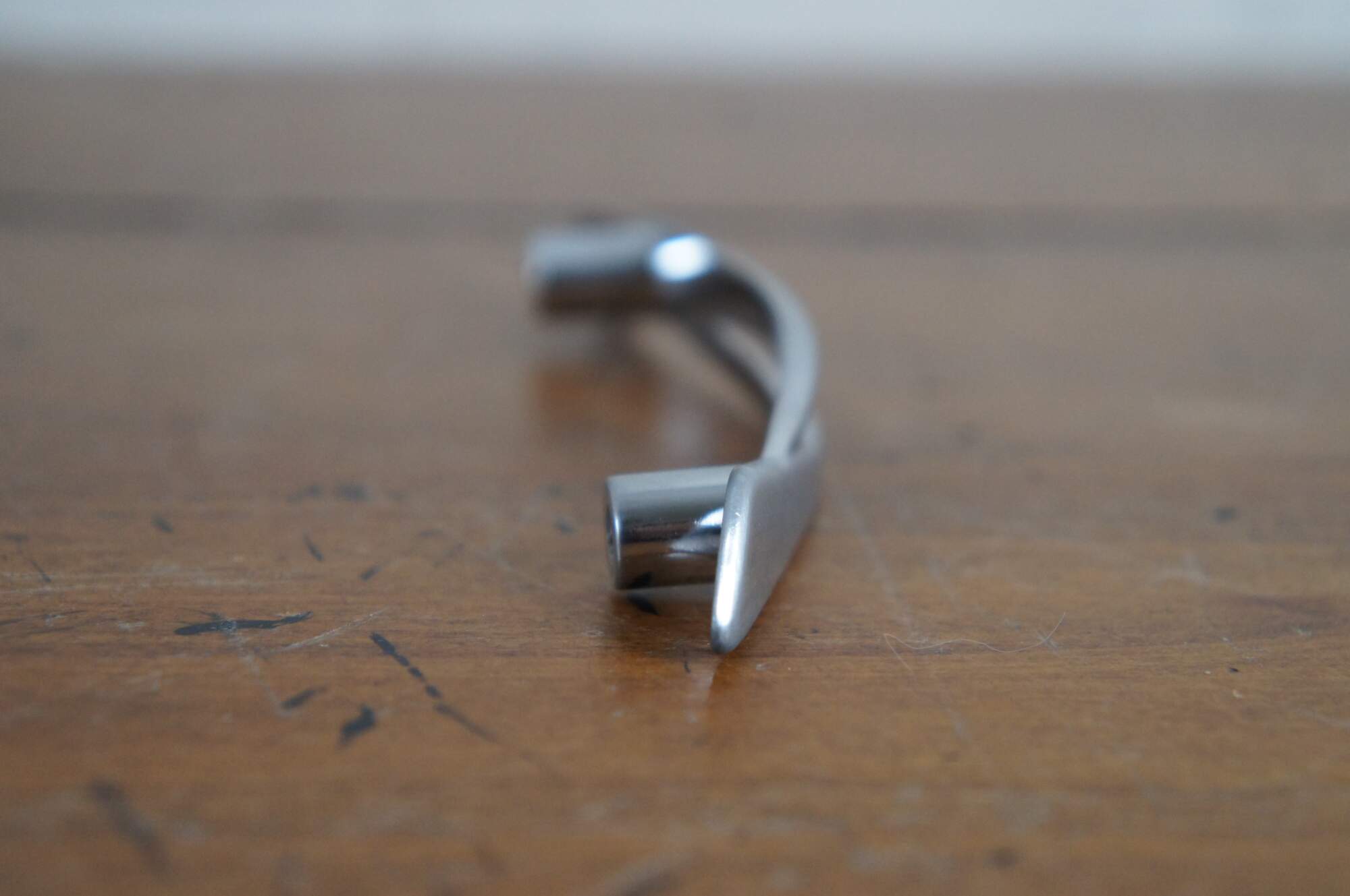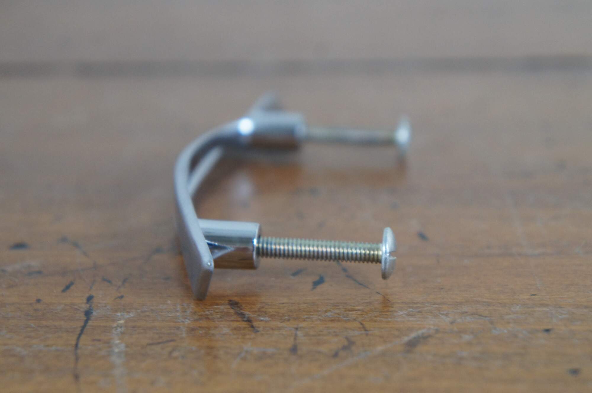 48 Available - Mid to late 20th century old-stock die cast drawer / cabinet pulls. National Lock Company - Medalist, item number C278 "Galaxie" Pulls, Dull Chrome (26D). 3" Hole Centers. Mid Century Modern styling.