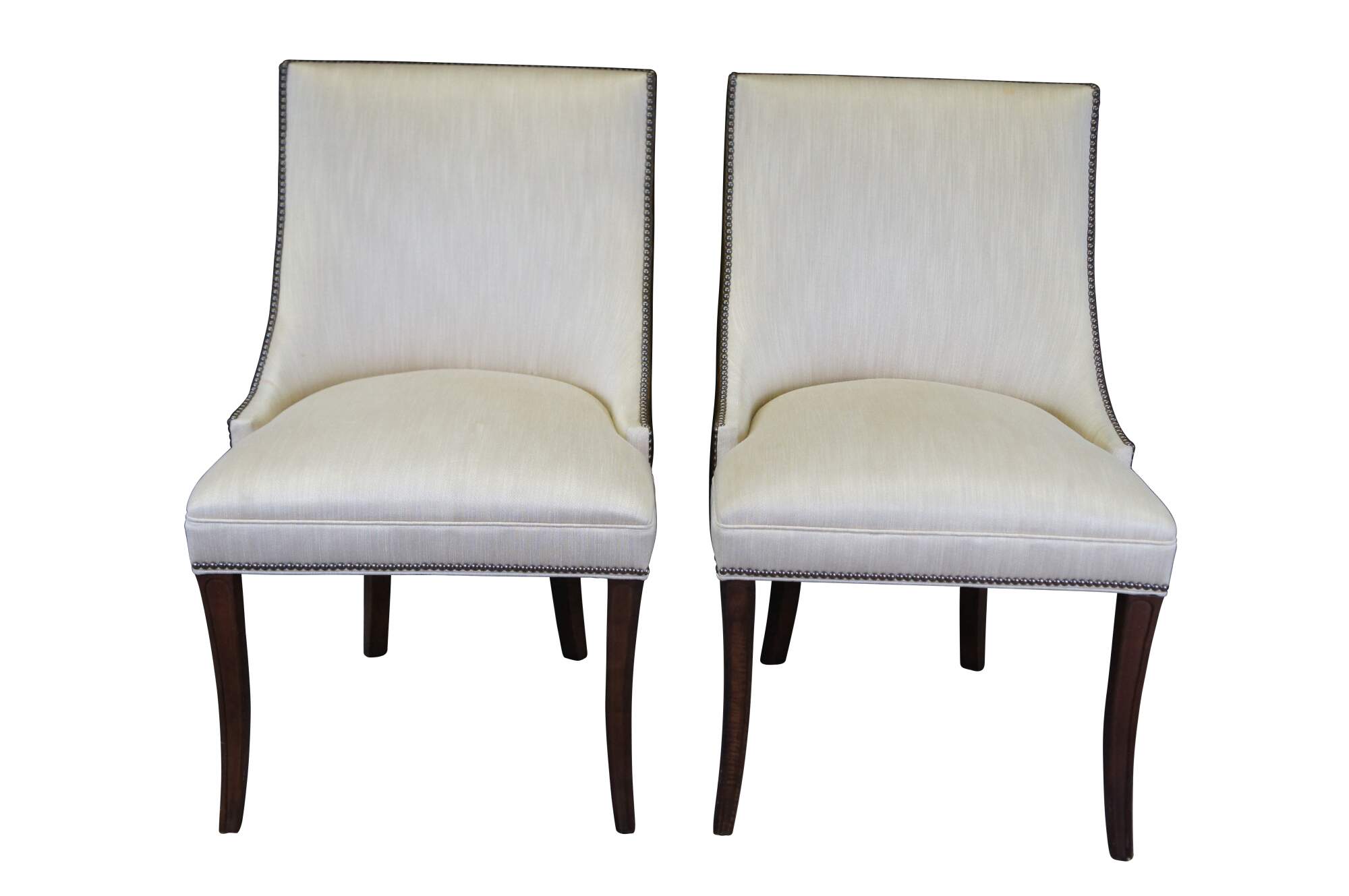 The Hunt Chair was inspired by a vintage modern chair that Suzanne Kasler found some time ago for her own collection. She loved the graceful curve of the legs, the rounded back and nail head trim. The scale is ideal for a game or dining table or simply as an accent chair.