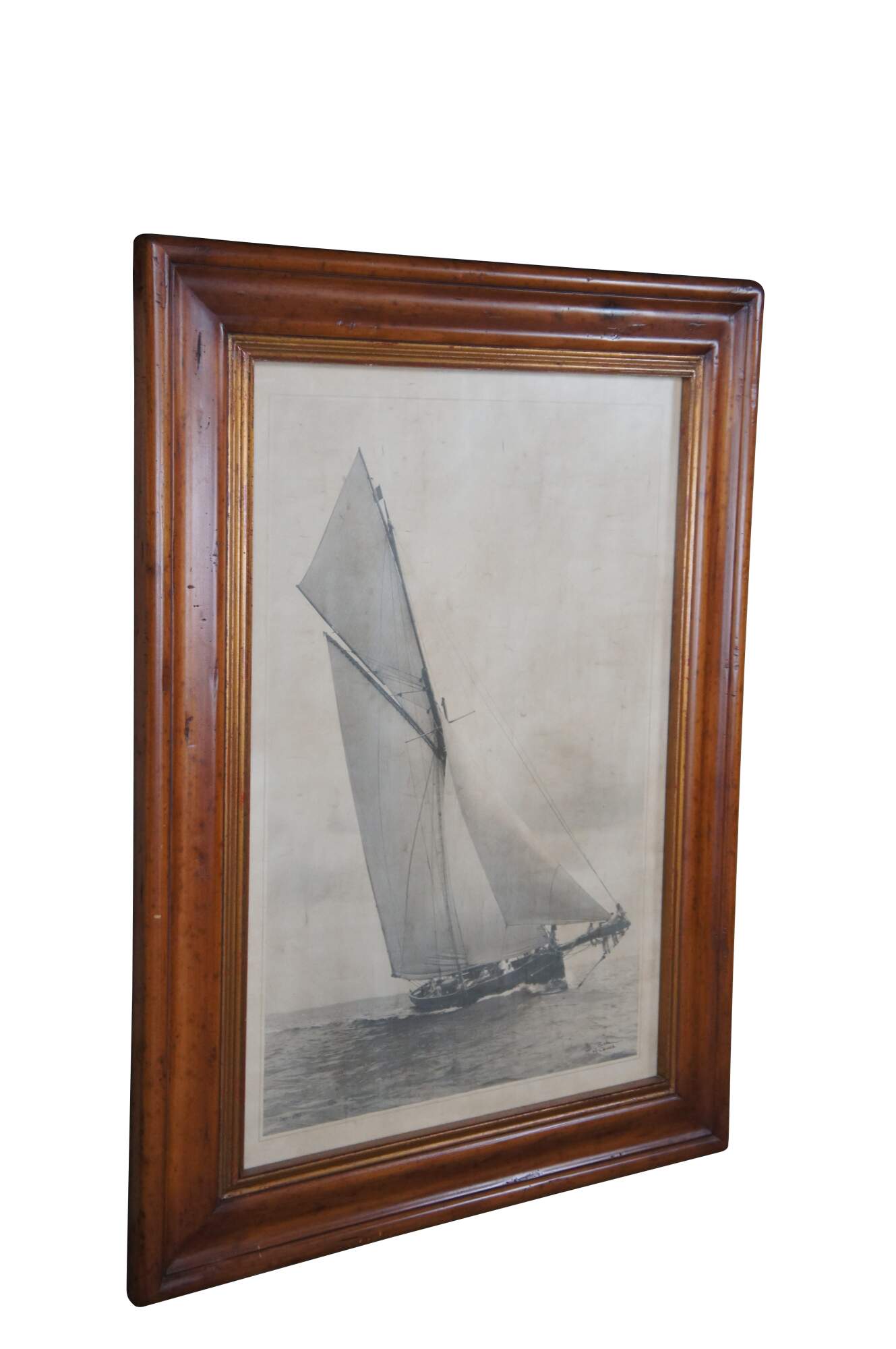 Large format print taken from The Art of Sailing by Beken of Cowes. Marked Irex 1911 and signed lower right. Features a portrait of a sailboat under glass, framed in pine.