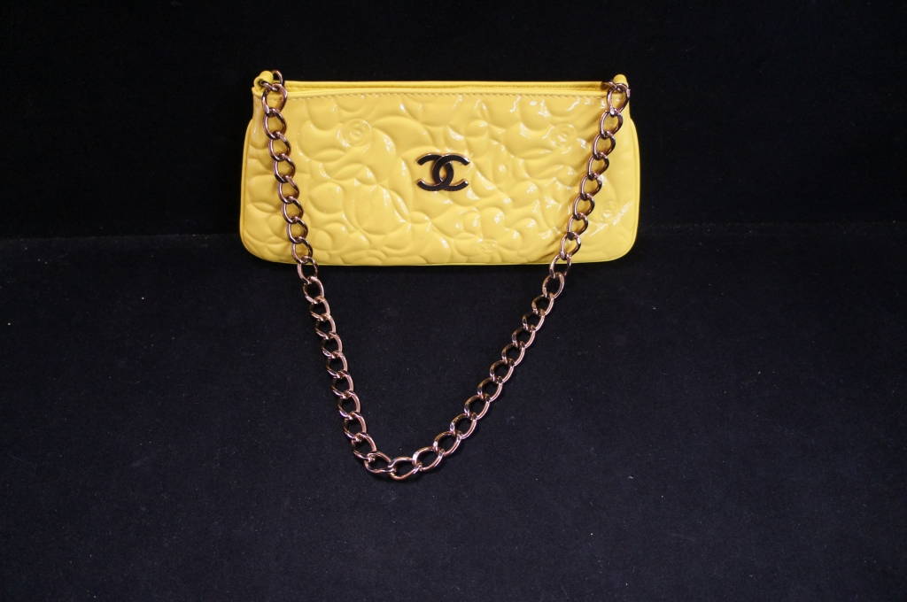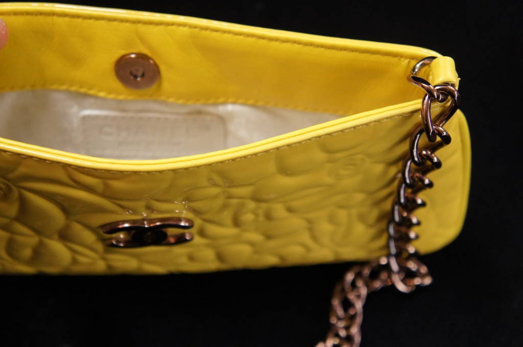 Vintage Yellow Patent Leather Chanel Evening Bag