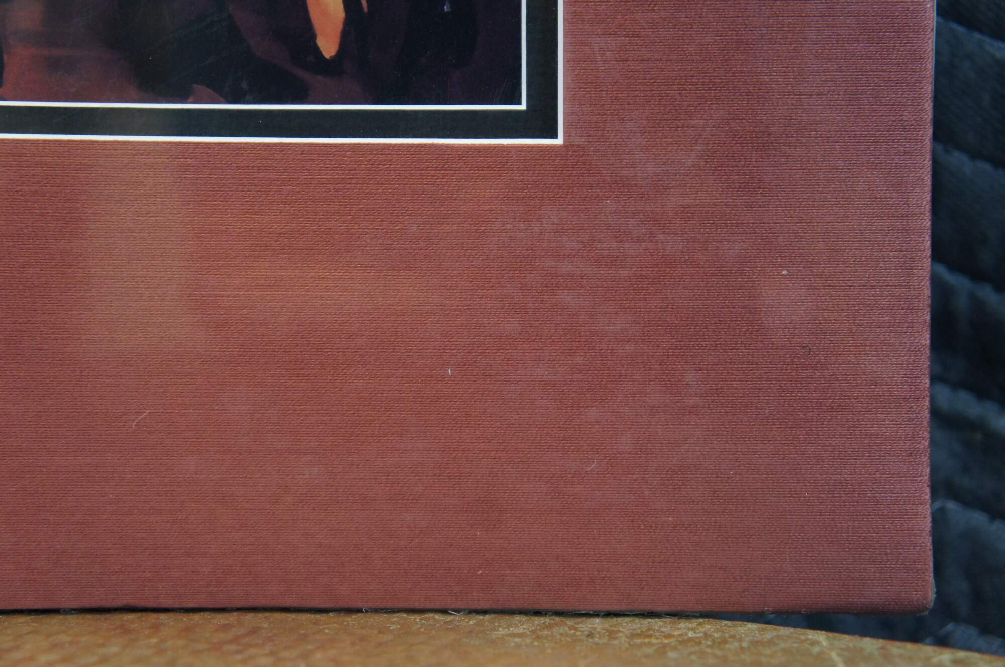 Late 20th century print of "The Gallery" by Jaurez Marchado. Depicts a crowd of party goers being served champagne by a butler. Rust clored velvet and black layered mat. Sealed.