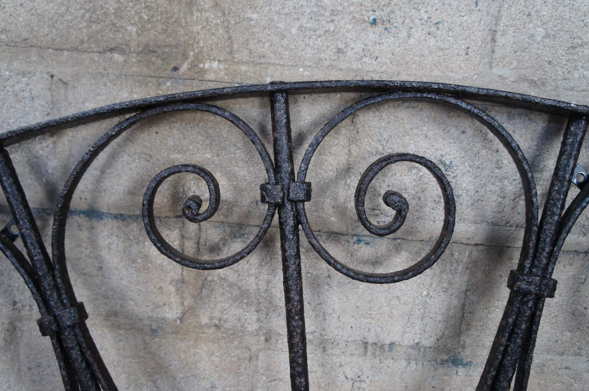 An antique architectural, demilune arched transom or grille to top a doorway or window handcrafted with wrought iron. With scroll decoration.