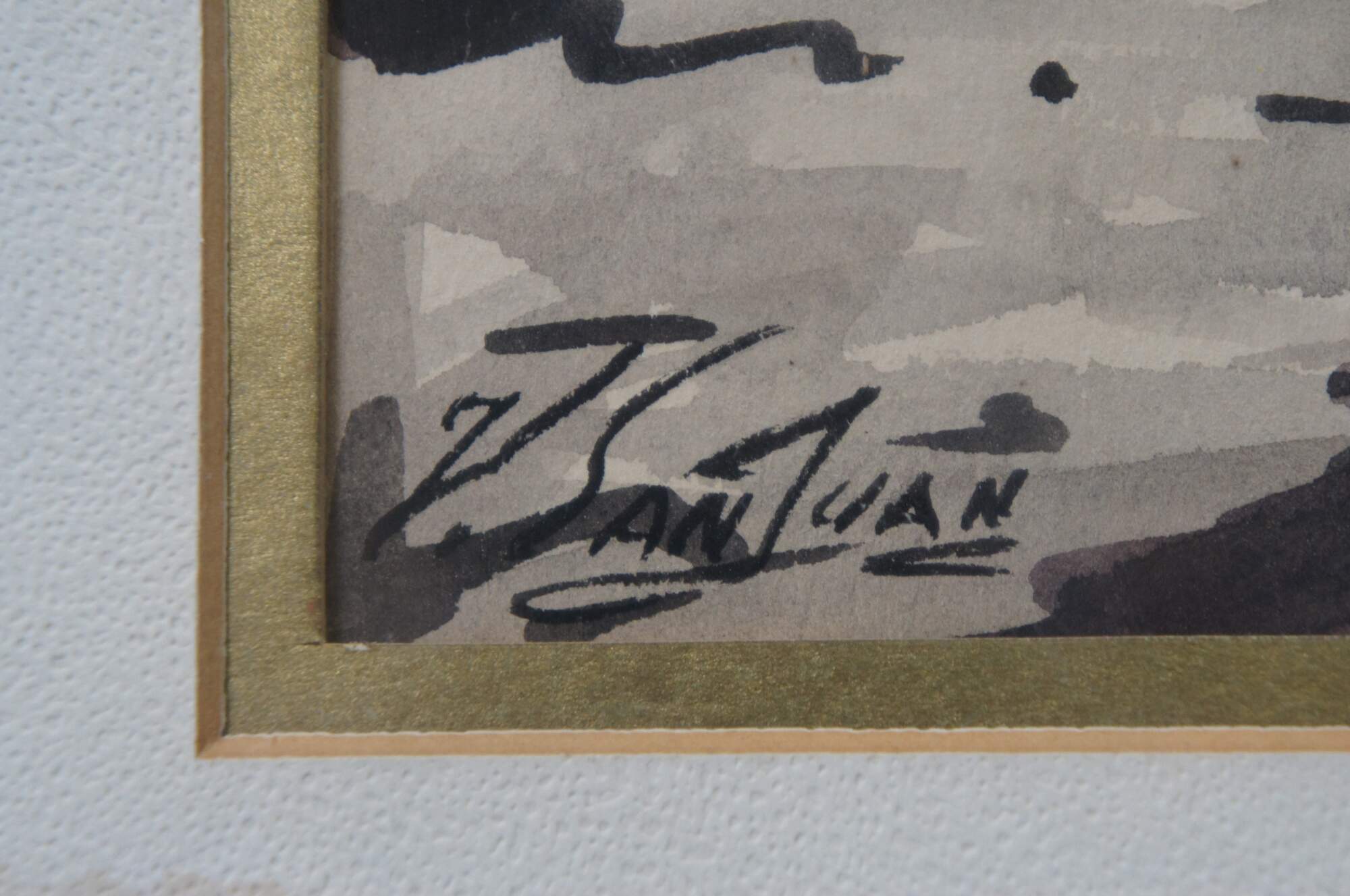 Fair condition, wear and distressing, water damage to mat