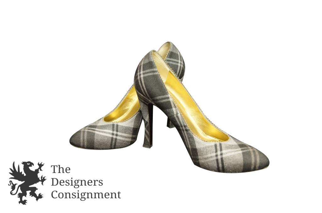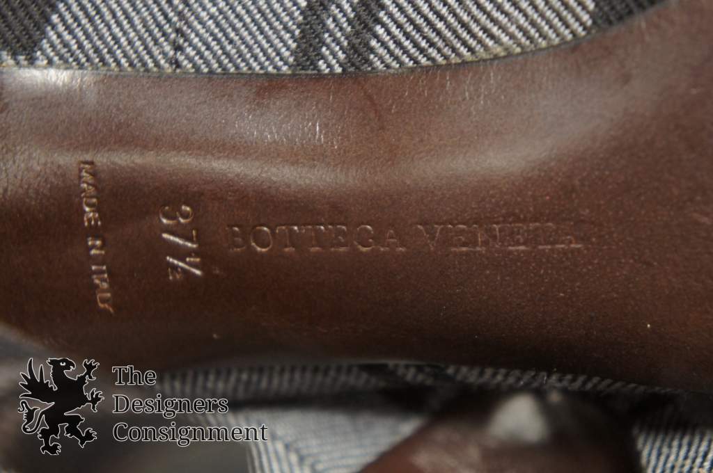 Here is a stunning pair of Bottega Veneta pumps. Features a plaid fabric and brown leather bottoms. Made in Italy Size 37 1/2 (6 1/2- 7 US). The insides are gold. A great addition to your wardrobe.