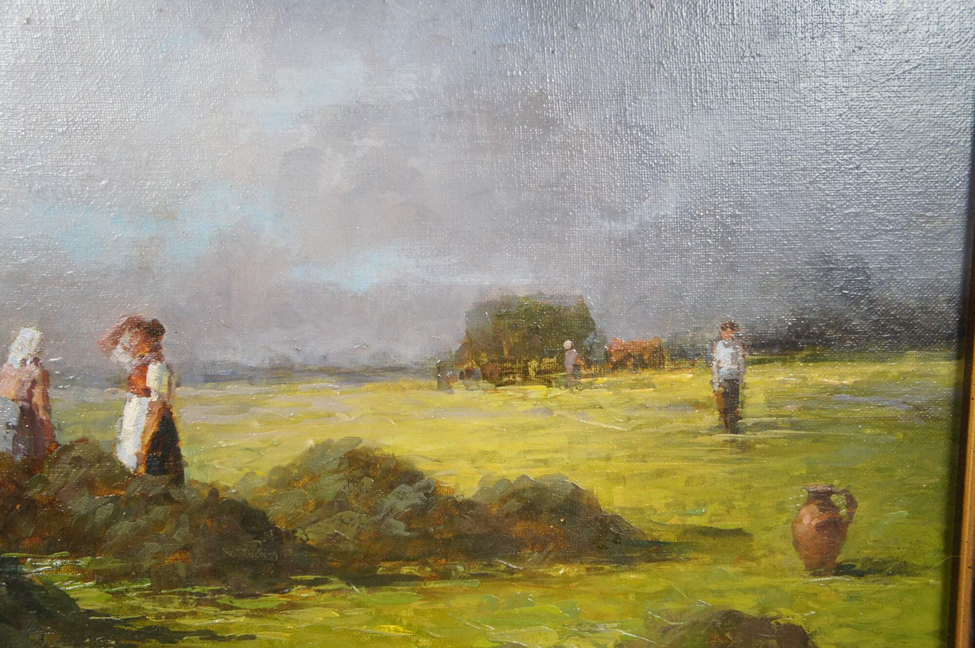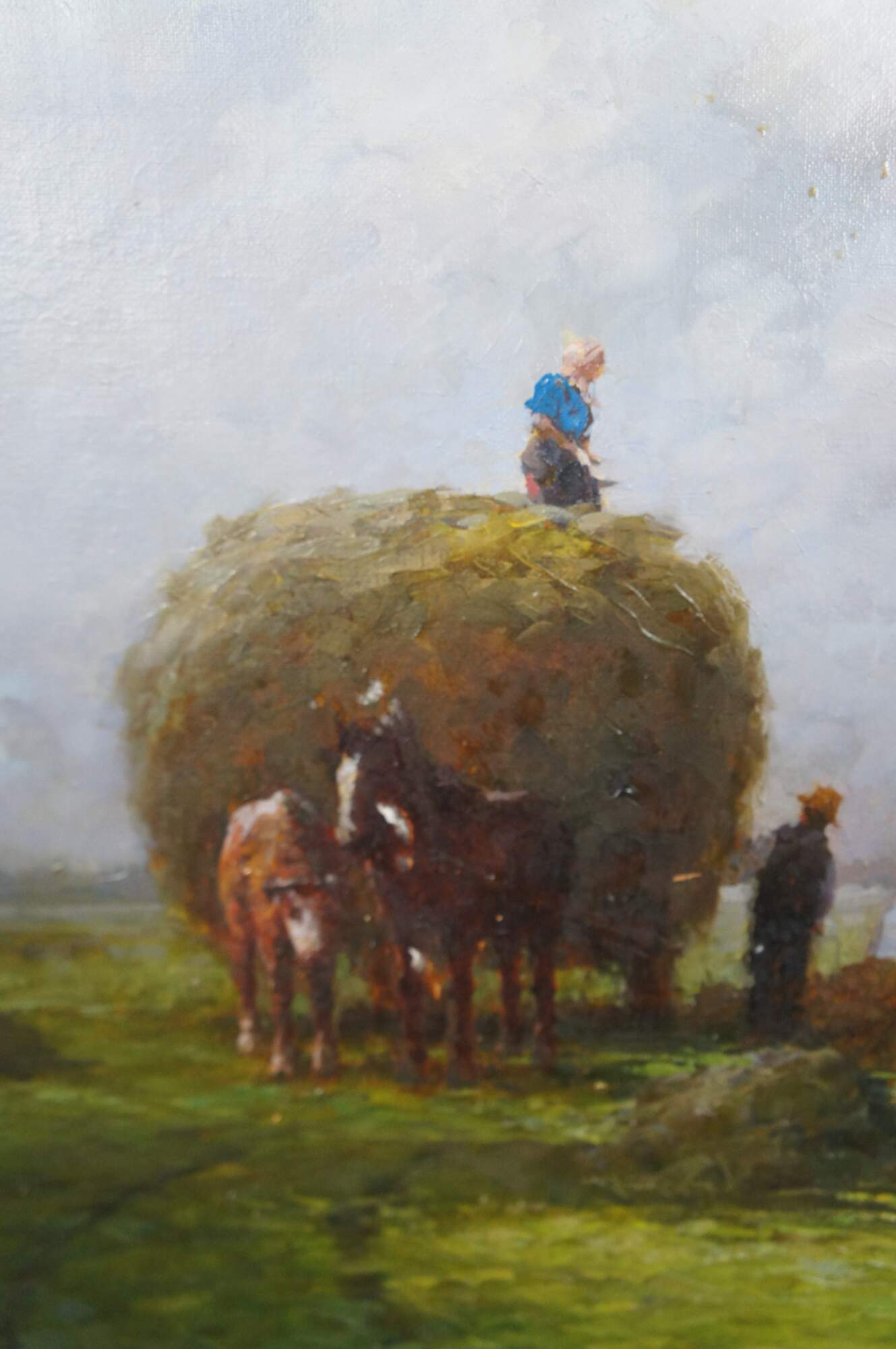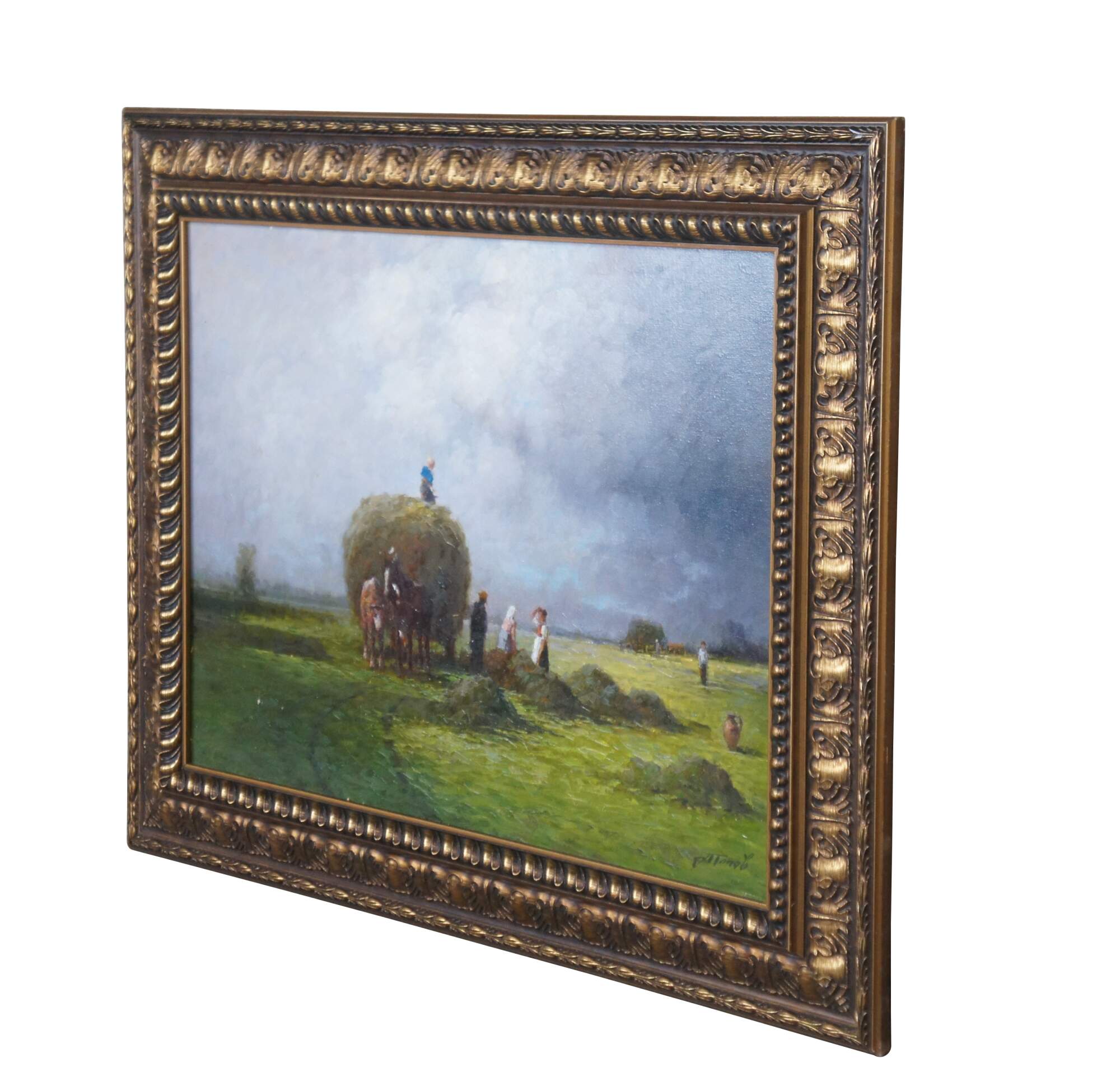 Very Good; Gently Used, small paint chip to the canvas on lower left near the carts trail in the grass