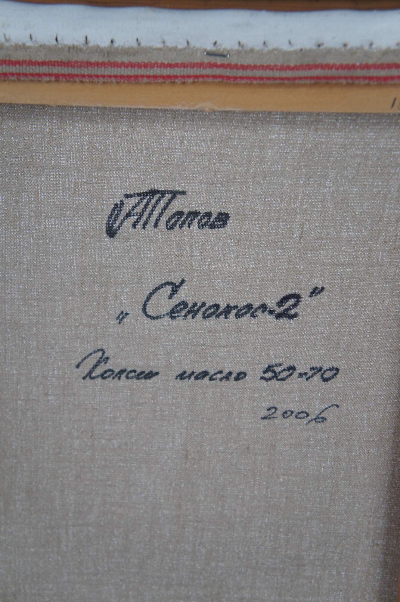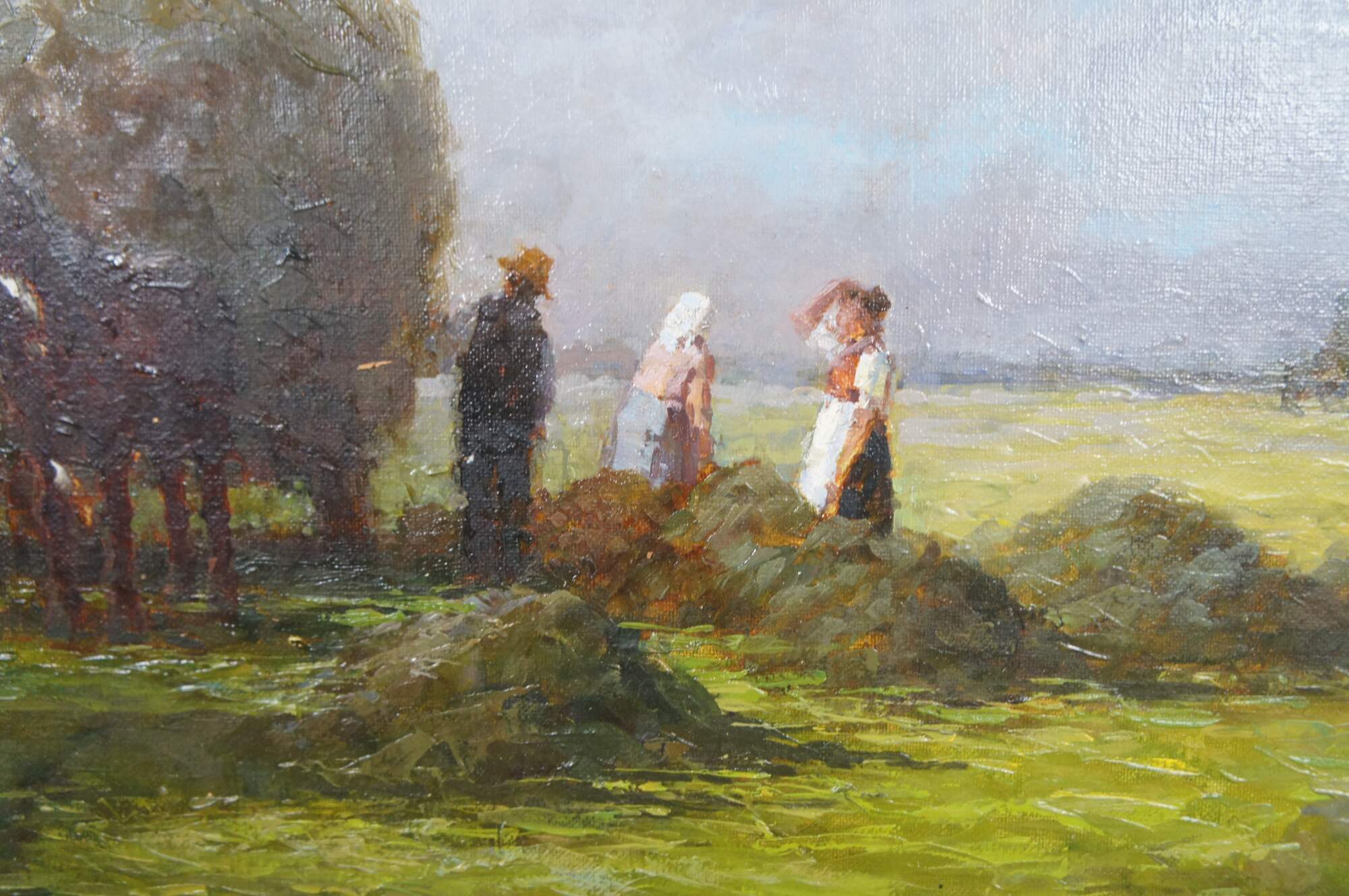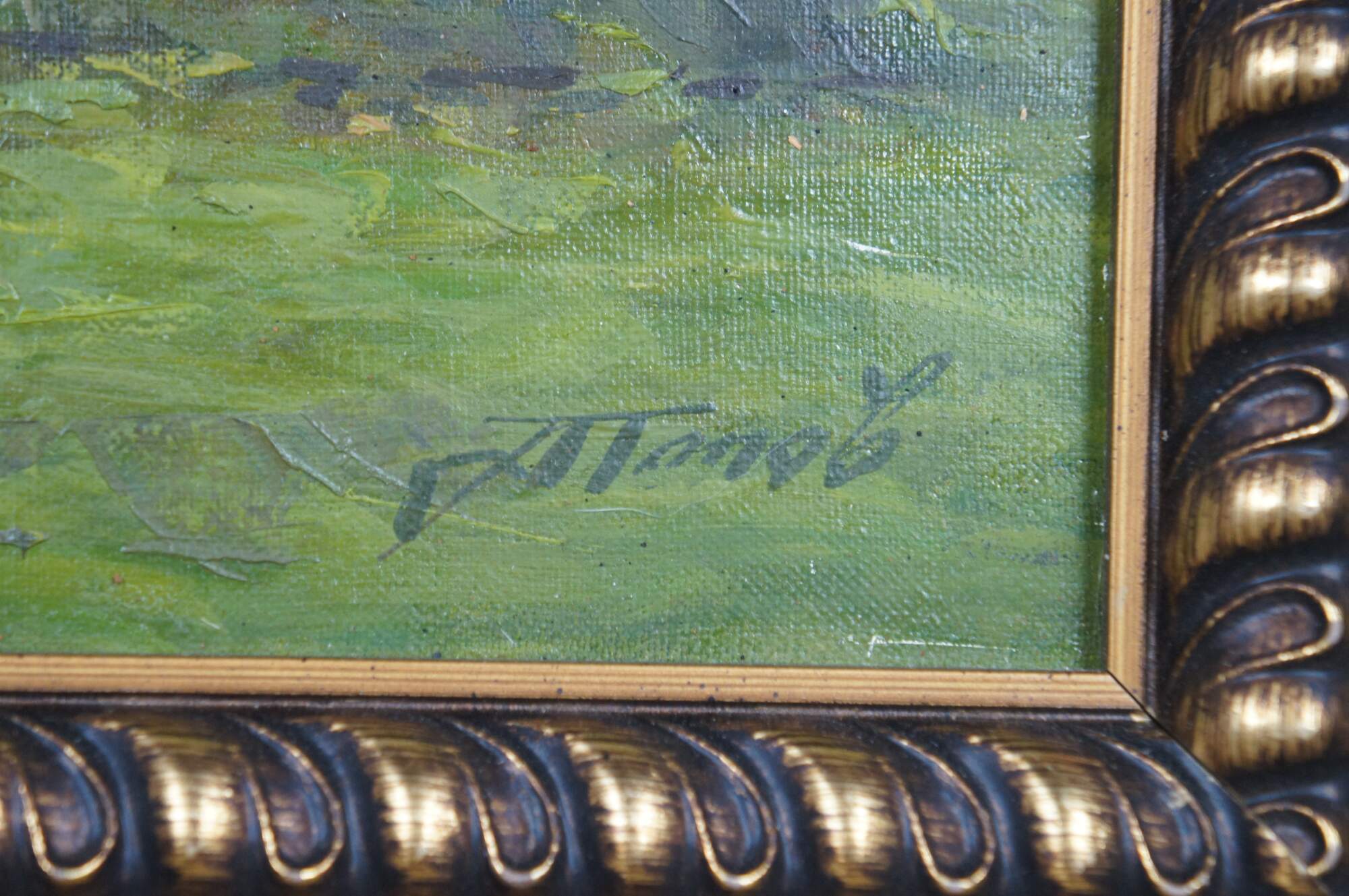 Very Good; Gently Used, small paint chip to the canvas on lower left near the carts trail in the grass