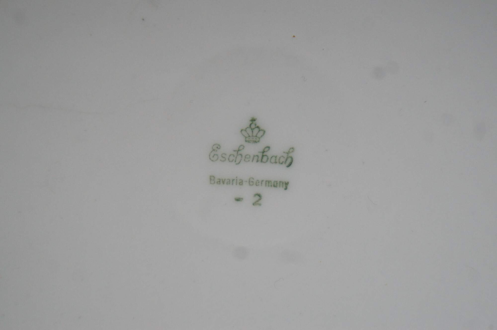 "Eschenbach is the trade name used by a German porcelain manufactory located in Windischeschenbach. Porzellanfabrik Eduard Haberländer (1913 until 1929) - The founder of the factory and councilor to the board of commerce Eduard Haberländer had been planning a porcelain factory in Windischeschenbach since 1906, however it took until 1913 before he could finally realize his plans. First production started in 1916 and was restricted to staple commodities, the product range was cheap and simple and production capacity was still very low. Porzellanfabrik Oscar Schaller & Co. Nachfolger (1929 until 1950) - During 1929 the factory was taken over by Porzellanfabrik Oscar Schaller & Co. Nachfolger located in Schwarzenbach (Saxony-Anhalt), which at that point was a branch of the Gebrüder Winterling OHG in Röslau (Upper Franconia, Bavaria). Based on a new concept, products under the Eschenbach brand were changed. Up until 1935, the status of quality porcelain had been established, resulting in a strong economic upturn. But World War II left scars even in Windischeschenbach. The reason that only a small range of china from the 1913 to 1945 period still exists is that all china design ranges as well as all brochures and leaflets and nearly all company documents and correspondence were lost during the eviction by American soldiers. To get production on the way again, the factory used molds from the defunct Porzellan-Manufaktur Allach-München GmbH and the resulting product range of course mostly included ornamental plates and tableware. For the first ten years after World War II, the factory went through an extensive expansion and modernization process with a later total of five tunnel kilns without a loss of production capacity. Porzellanfabrik Gebrüder Winterling AG (1950 until 2000) - In 1950, the Winterling company had corporation status and gave out shares, the main shareholders being the Winterling family members. All daughter companies were re-named to Gebrüder Winterling AG and most marks used up until then were changed. Next to normal household products, the factory started to specialize on hotel porcelain and around 1977 employed approximately 700 workers. Triptis Porzellan GmbH & Co. KG, Werk Windischeschenbach (2000 until 2003) - After the bankruptcy of the Winterling AG in November 2000, the assets were taken over by the Triptis Porzellan GmbH & Co. KG located in Triptis (Thuringia). The factory produced high quality household and hotel porcelain under the trademark Eschenbach Porzellan. The Triptis management seemed only to be interested in the trademarks related to the Windischeschenbach facility and closed the factory in December 2003. But a company can not survive alone with a bunch of trademarks and it soon became obvious that the Triptis management had bitten off more than they could chew. Confronted with large scaled financial problems, Triptis themselves became insolvent on October 7th 2004 and had to file for bankruptcy a month later. In June 2005, the Triptis company was re-established as Neue Porzellanfabrik Triptis GmbH and have continued business to the present day." (Source: Porcelain Marks & More)