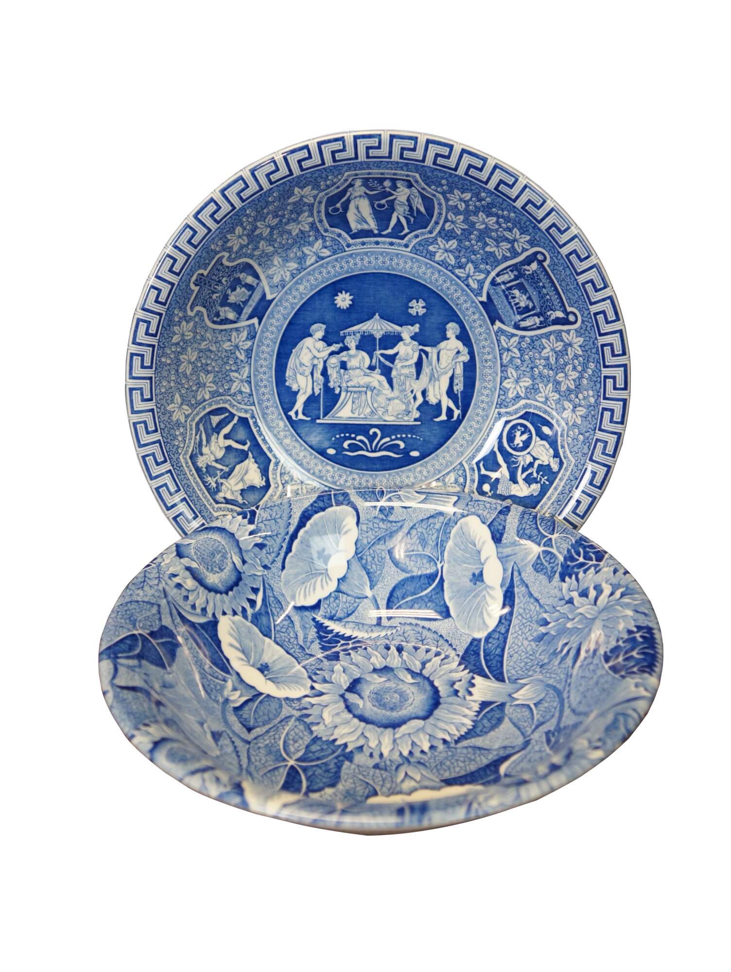 "Spode is an English brand of pottery and homewares produced in Stoke-on-Trent, England, founded by Josiah Spode (1733–1797) in 1770. In 1776 he completed the purchase of what became the Spode factory until 2008. Spode perfected the technique for transfer printing in underglaze blue on fine earthenware in 1783–1784 – a development that led to the launch in 1816 of Spode's Blue Italian range, which has remained in production ever since. The company is credited with developing, around 1790, the formula for fine bone china that was generally adopted by the industry. Josiah Spode's son, Josiah Spode II, successfully marketed English bone china. The business was carried on through his sons at Stoke until April 1833. Messrs Spode were succeeded in the same business in c. 1833 by Copeland and Garrett, who often used the name Spode in their marks. In particular these are called 'Late Spode' and include productions of the so-called 'Felspar porcelain'. They also produced other kinds of bone china, earthenware, parian, etc. The partnership continued in this form until 1847. After 1847 the business continued until 1970 as W.T. Copeland and sons, and again the term 'Spode' or 'Late Spode' continued in use alongside the name of Copeland. Under the name 'Spode Ltd' the same factories and business were continued after 1970. In 2006, the business merged with Royal Worcester. In 2008, the Copeland Spode company went through some financial troubles. It was taken over in 2009 by Portmeirion Group, a pottery and homewares company based in Stoke-on-Trent. The purchase did not include Royal Worcester or Spode manufacturing facilities. Many items in Spode's Blue Italian and Woodland ranges are made at Portmeirion Group's factory in Stoke-on-Trent." (Source: Wikipedia)