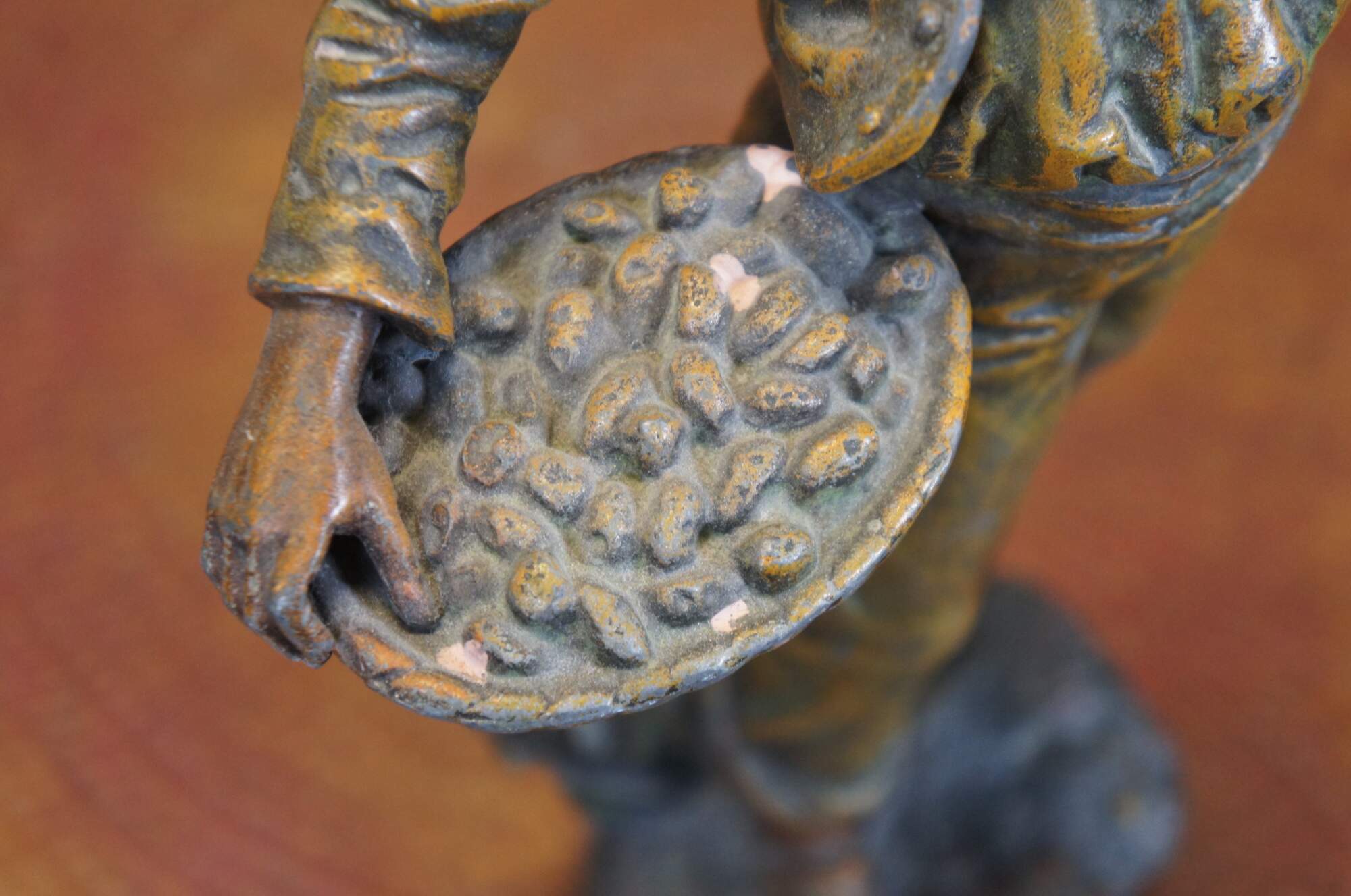 Good Overall - Gentle wear; no base; missing object from hand, holes in back for lighting.