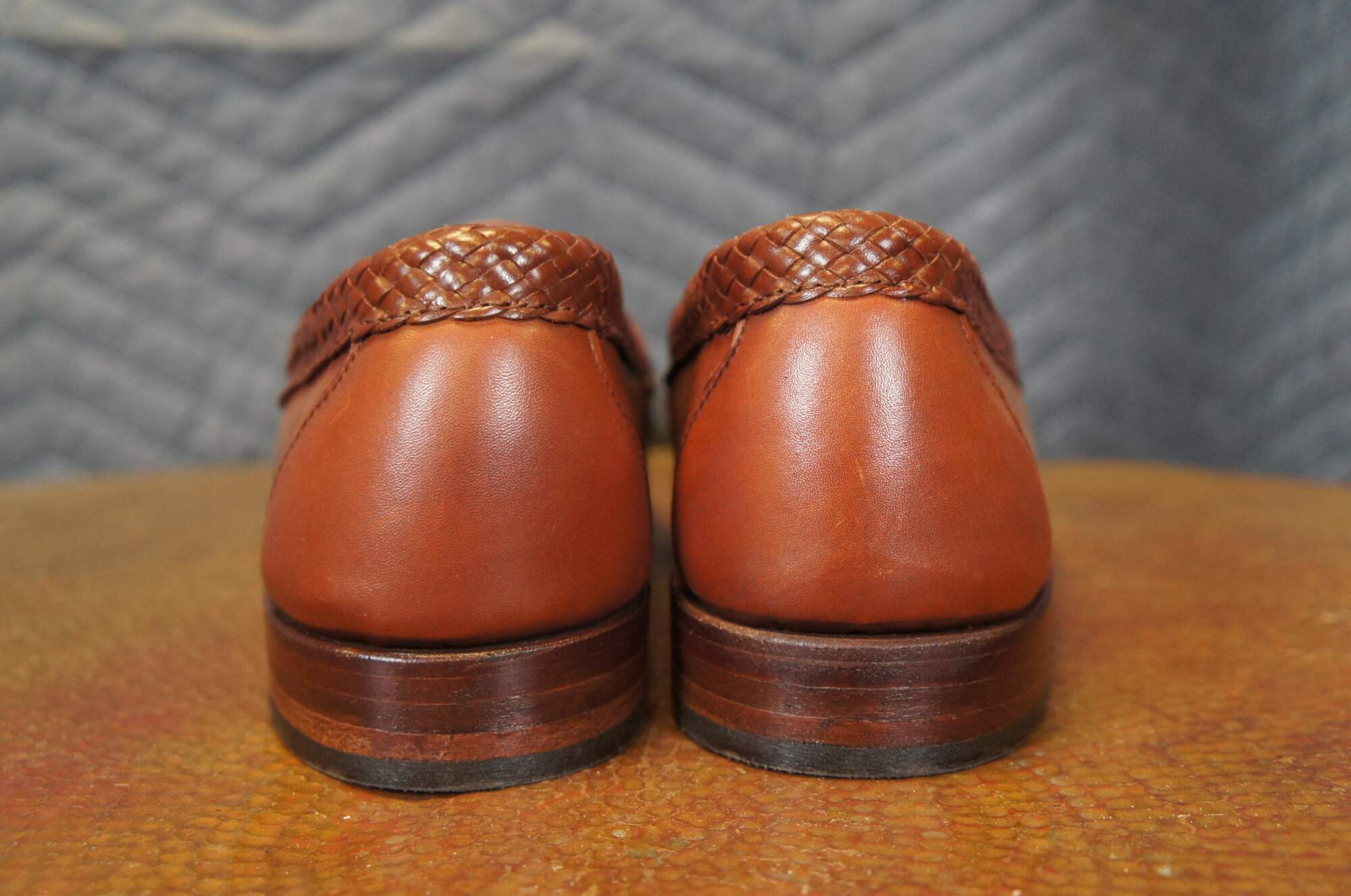 Vintage Allen Edmonds Maxfield Chili brown leather driving loafers / shoes with woven trime and double tassels. Slip on. 12 - 2A - 47716 - 24306. Made in USA of Imported Materials.