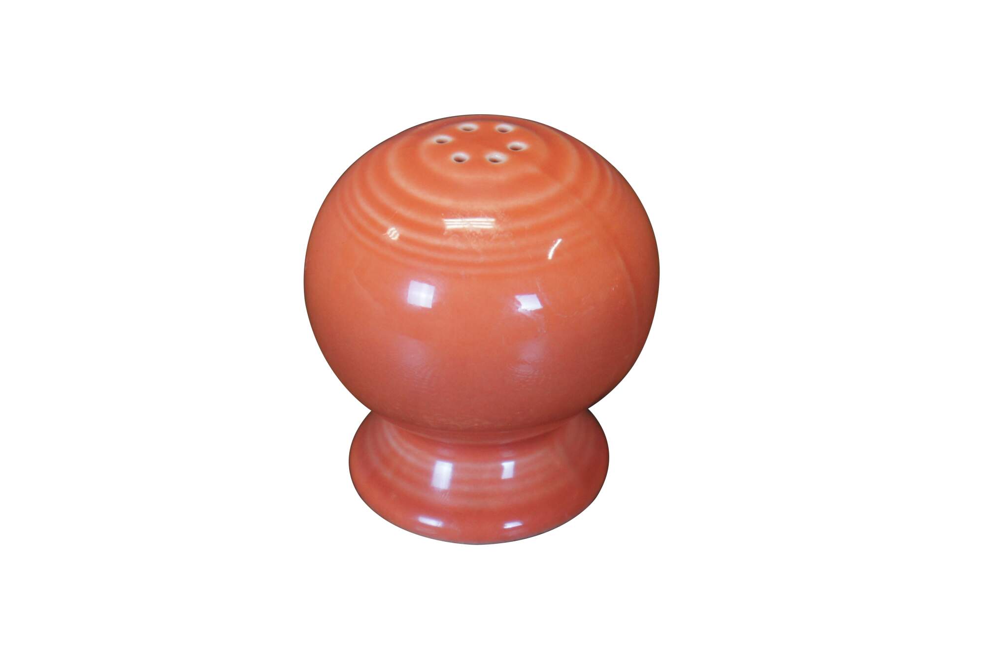 Pair of vintage Fiesta Ware salt and papper shakers - round body with flared base in orange-pink (Persimmon).