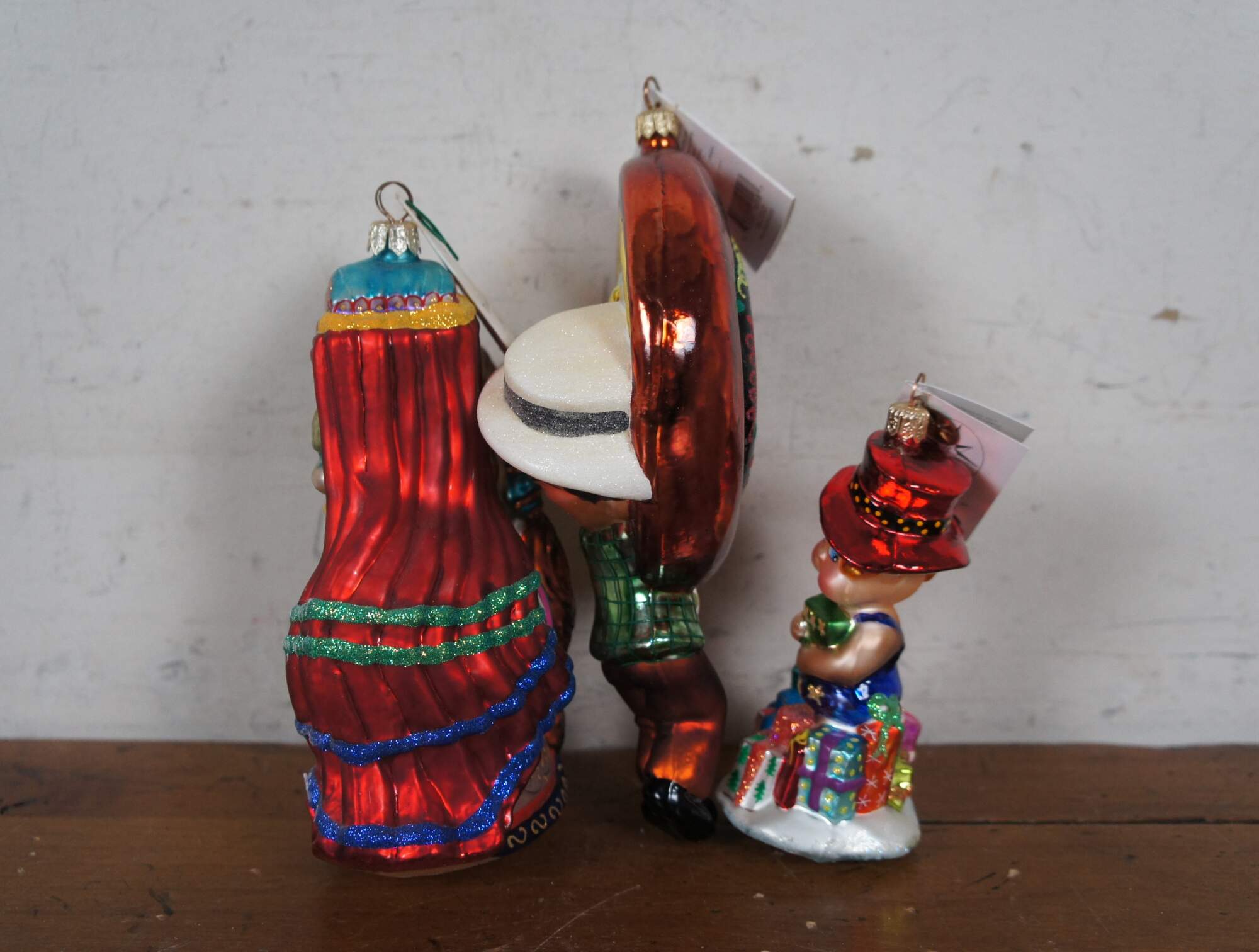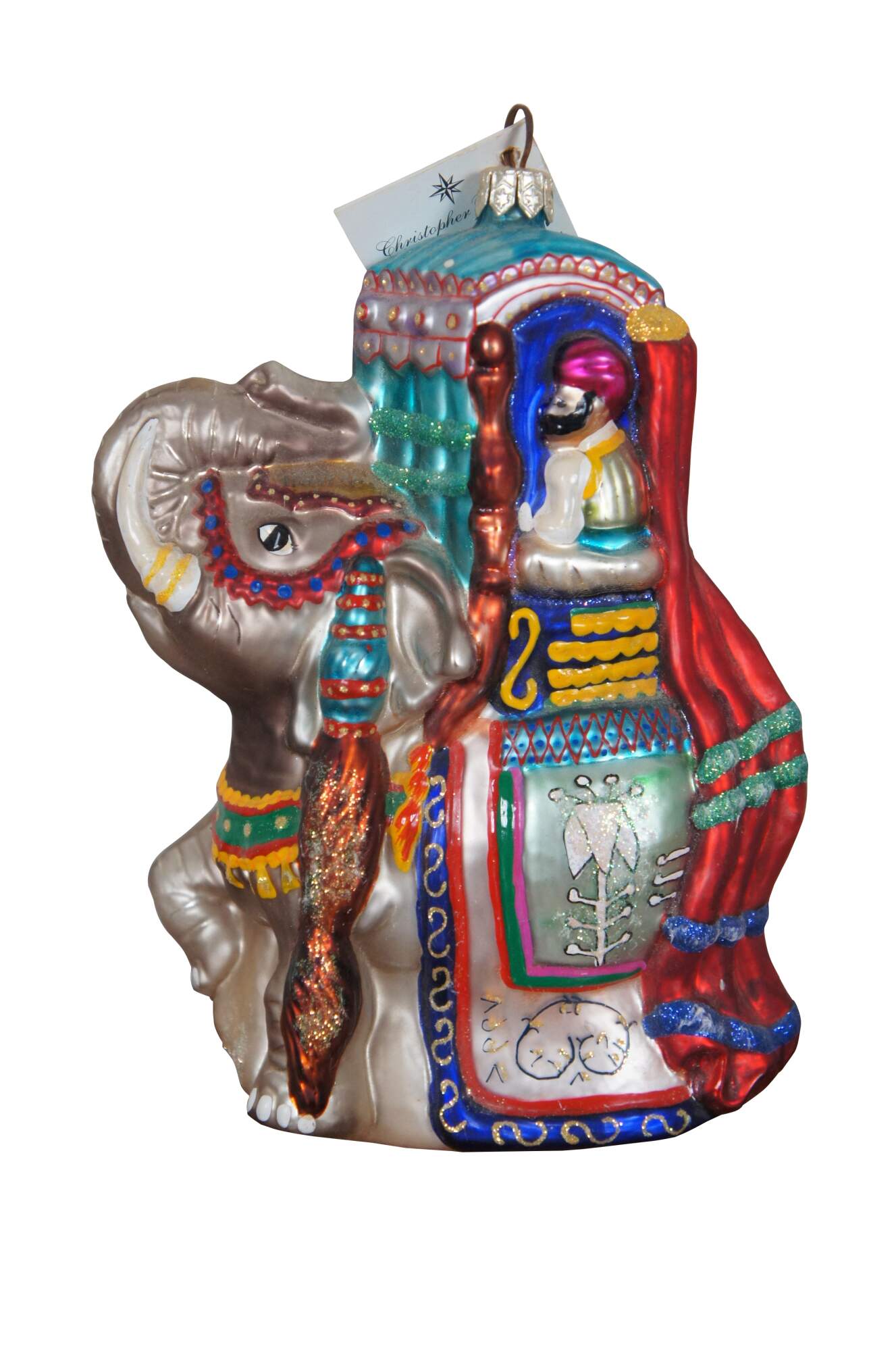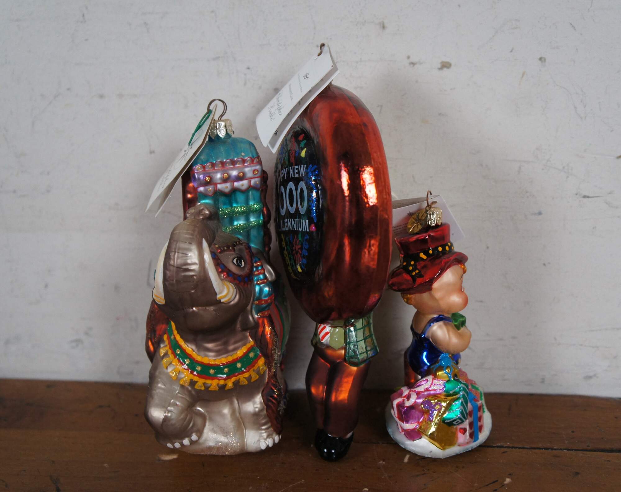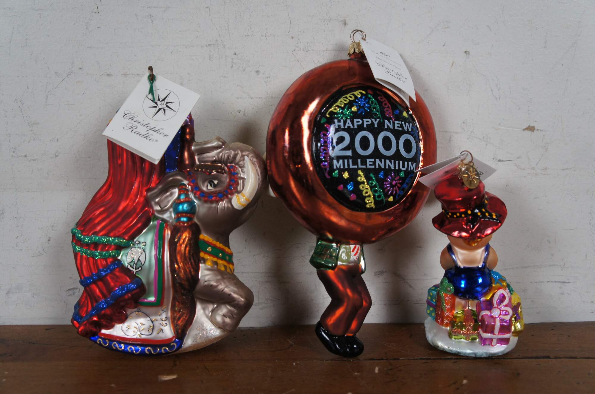 3 Christopher Radko Blown Glass Ornaments Sultan Elephant Millenium Clock Gift