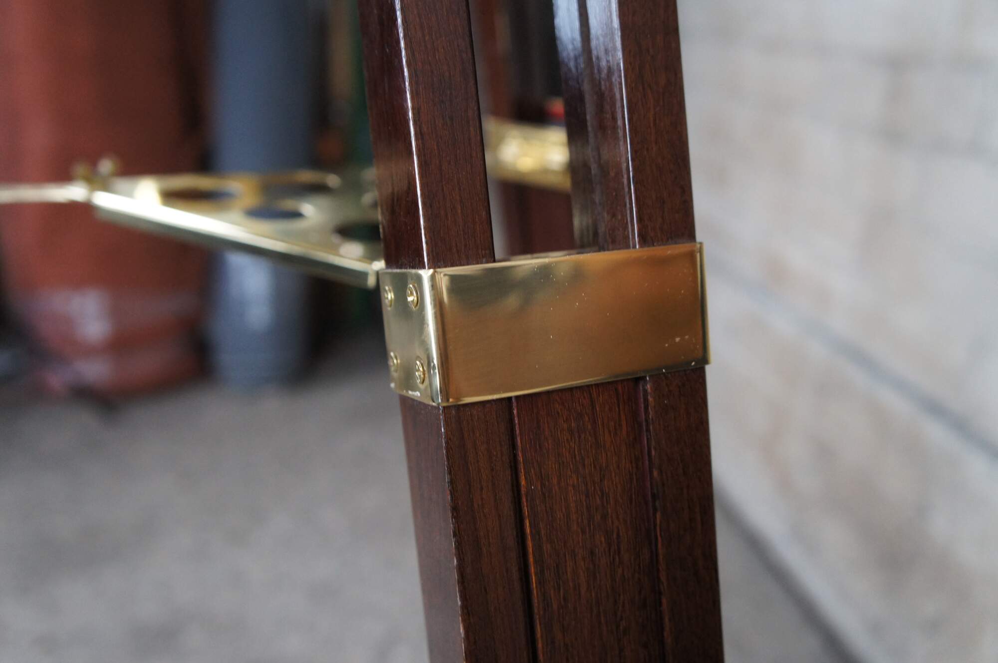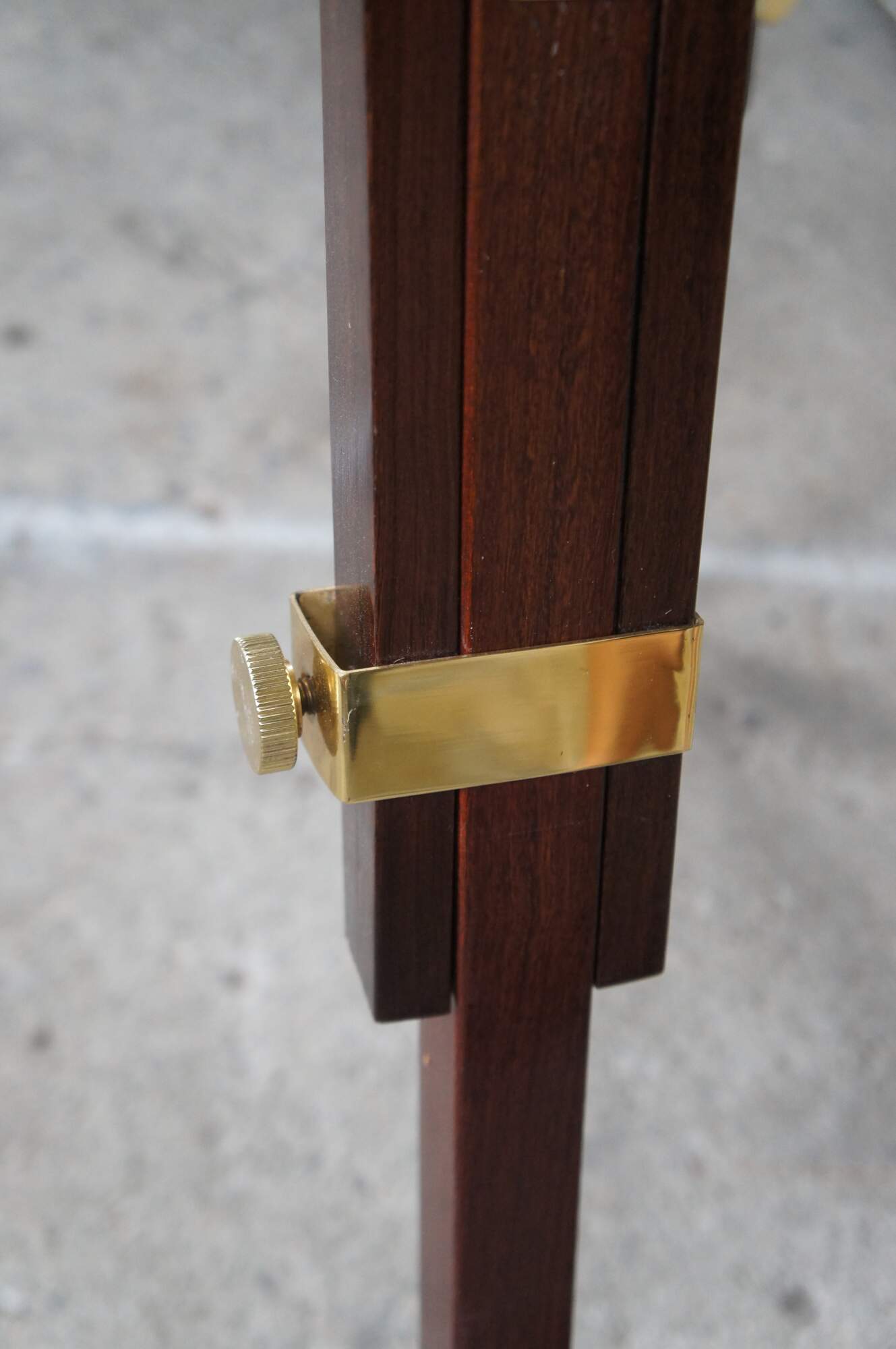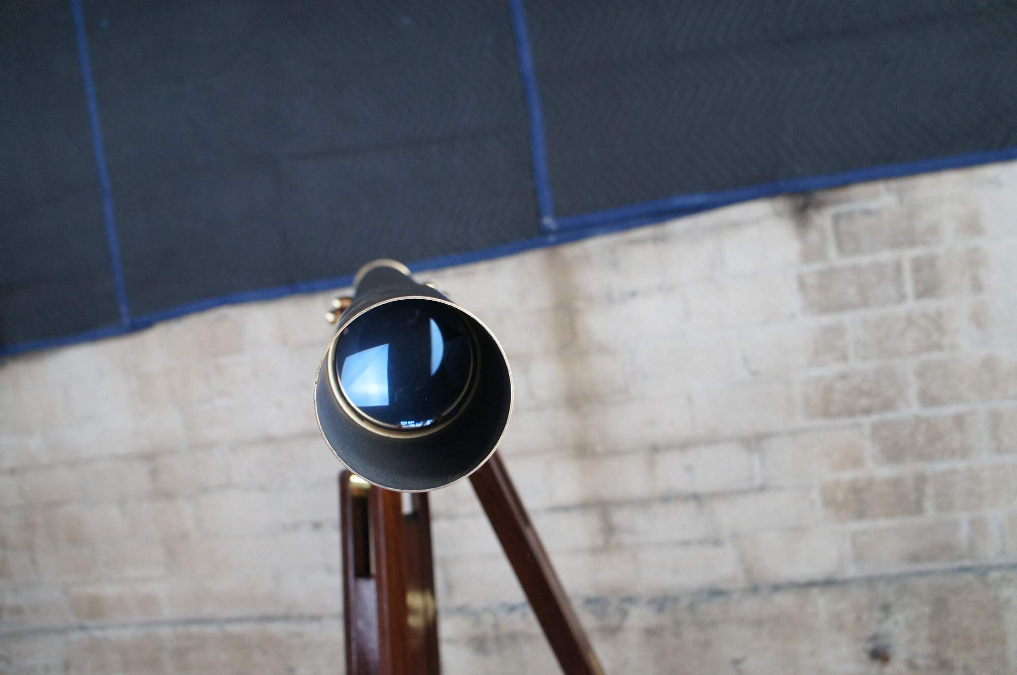 An exquisite brass spyglass telescope by Zhumell. Features a large scope mounted to a copper swing over a mahogany brass accented articulating base. Circa last quarter 20th Century.